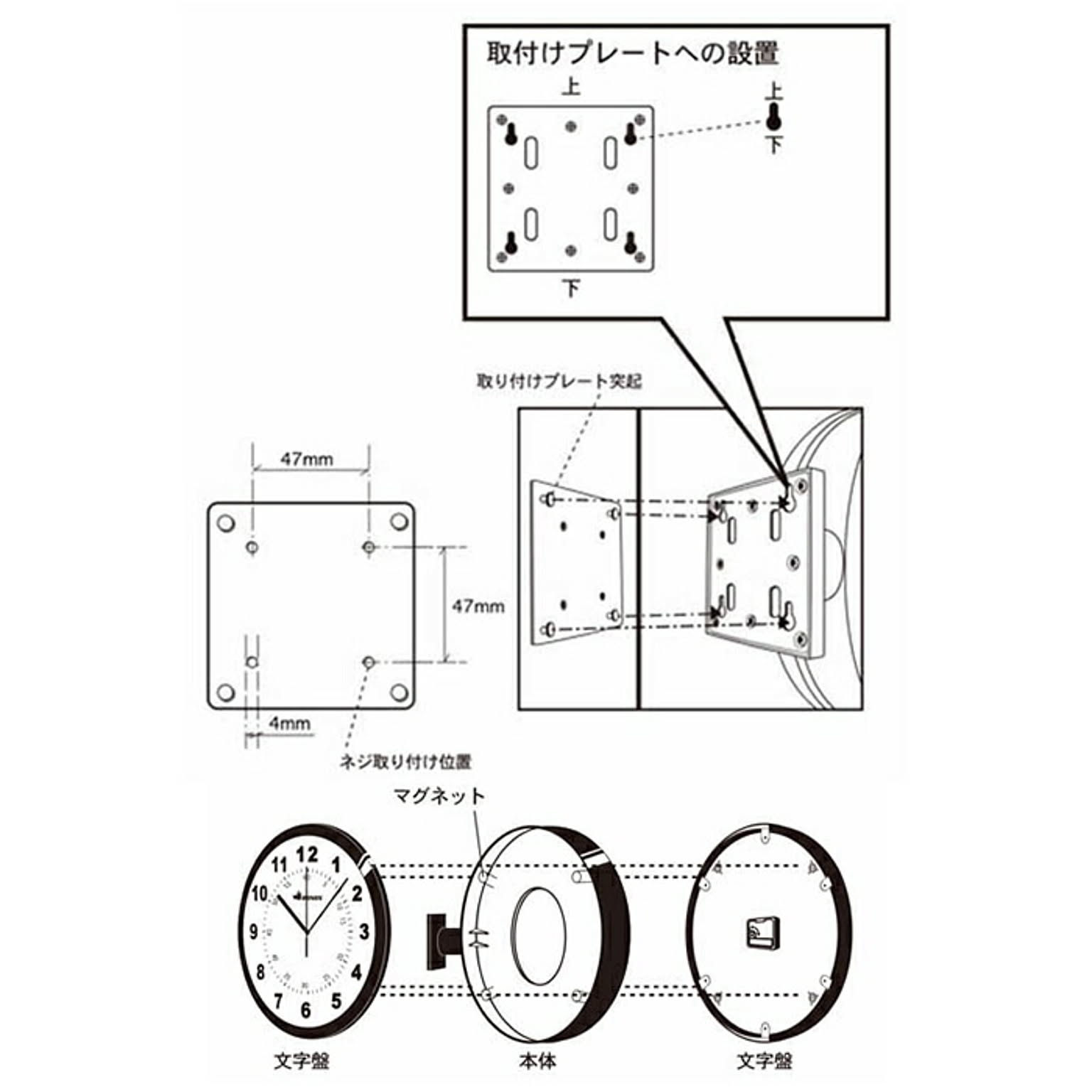 取り付けプレート突起用の穴は、必ず細い方が上側になるように固定してください。