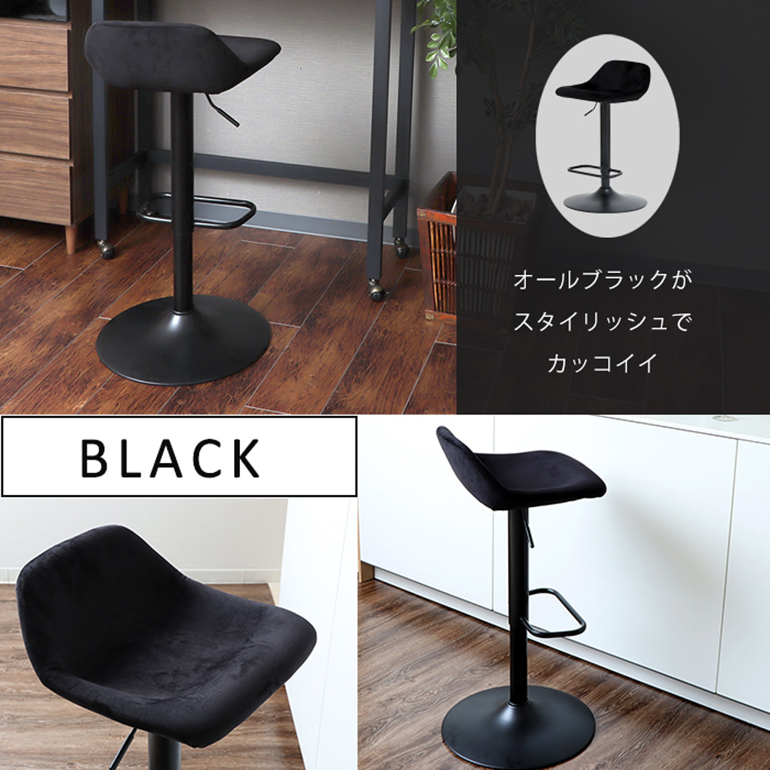 肌触りの良いベロア調の生地を使用したシンプルデザインのバーチェアです。