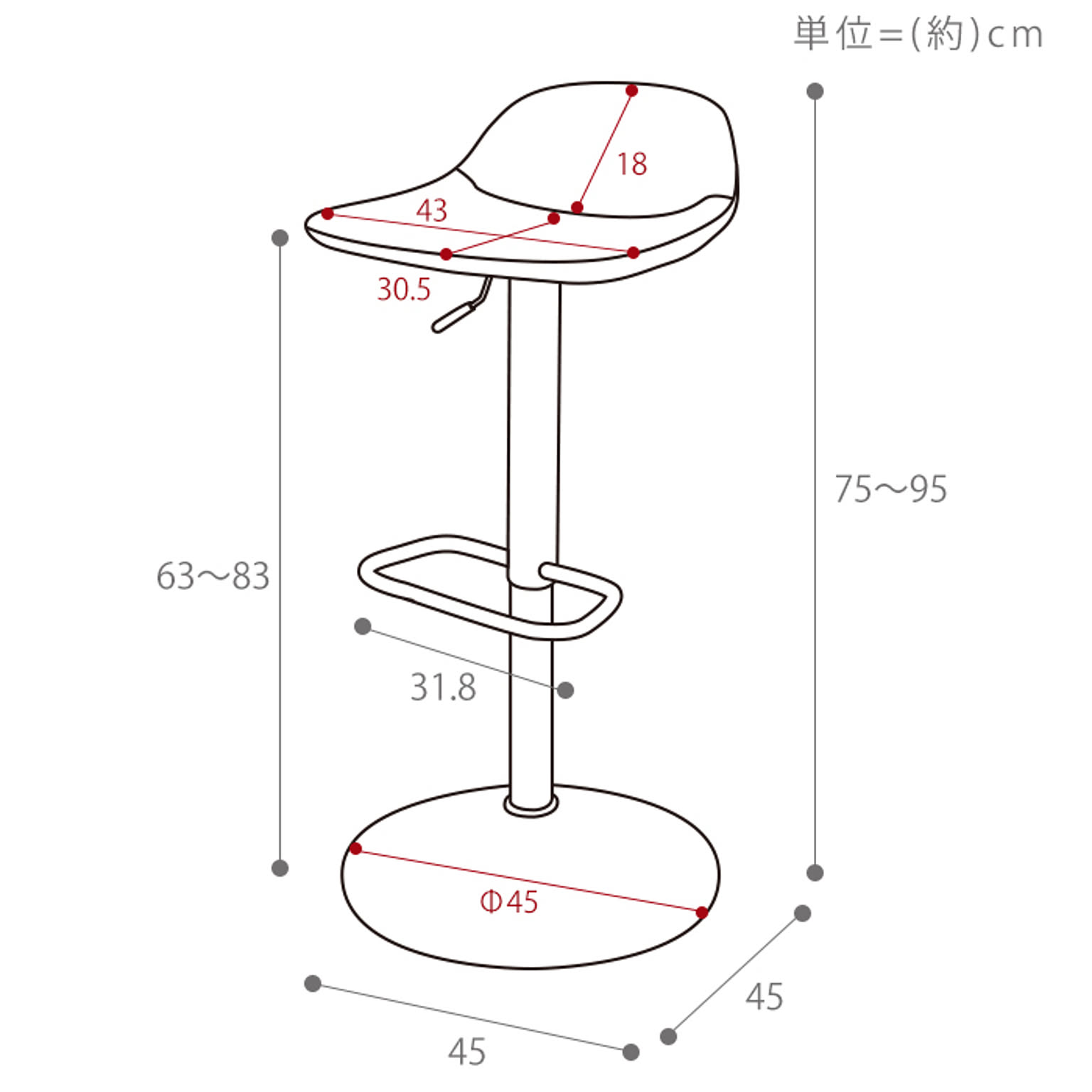 (約)幅45×奥行45×高さ75〜95cm