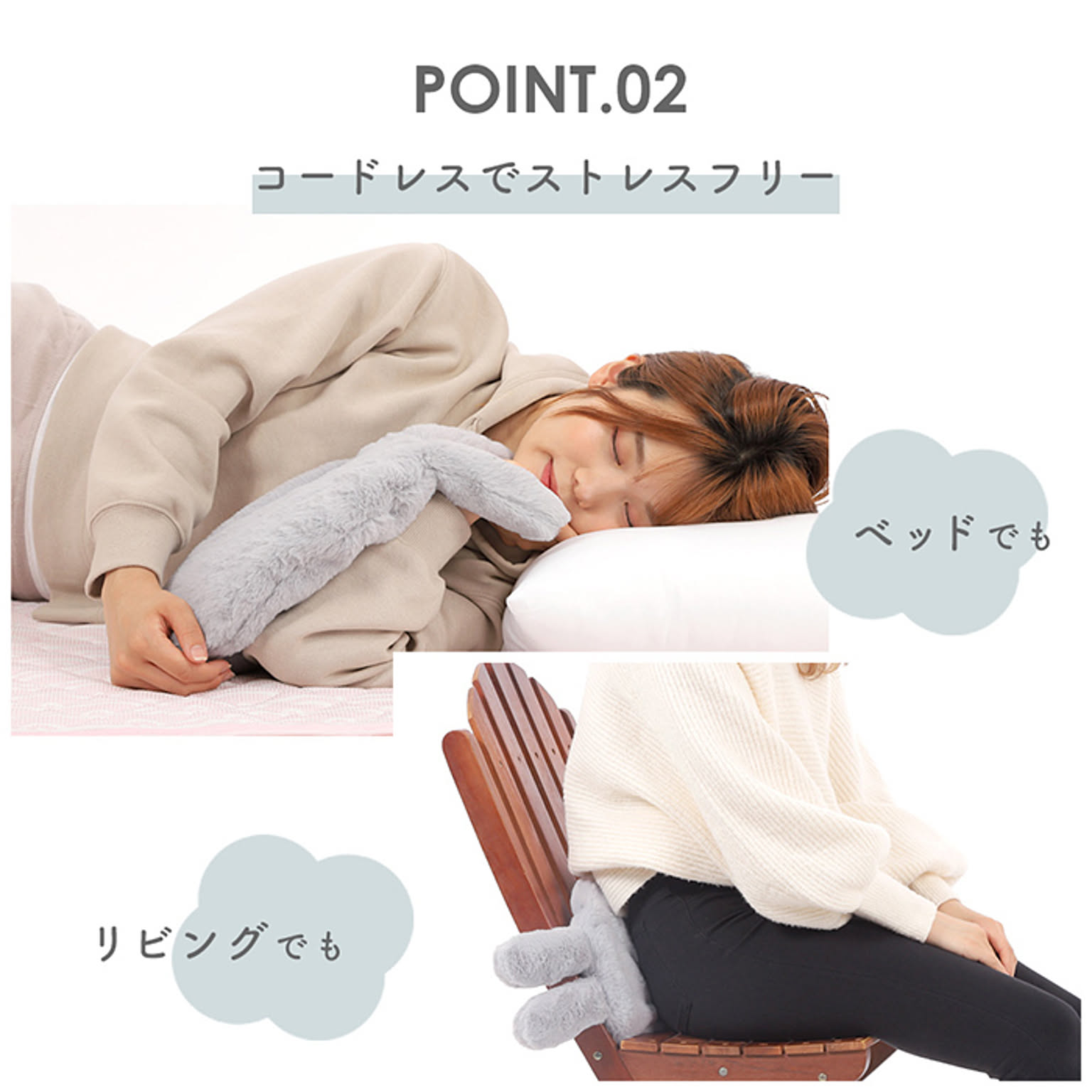 コードレスなのでストレスフリーにベッドでもリビングでもお使いいただけます。