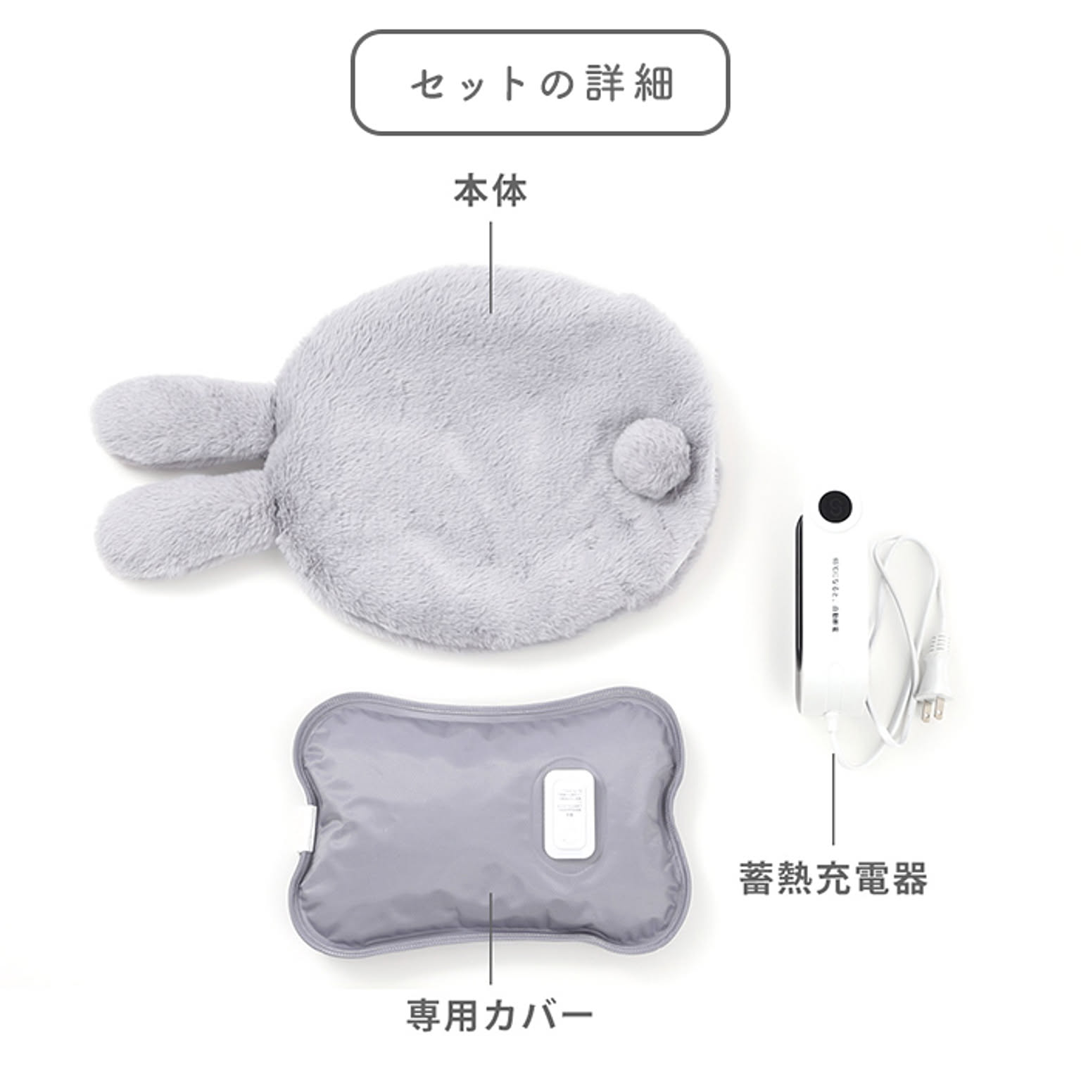 本体、専用カバー、蓄熱充電器、取扱説明書(保証書付き)