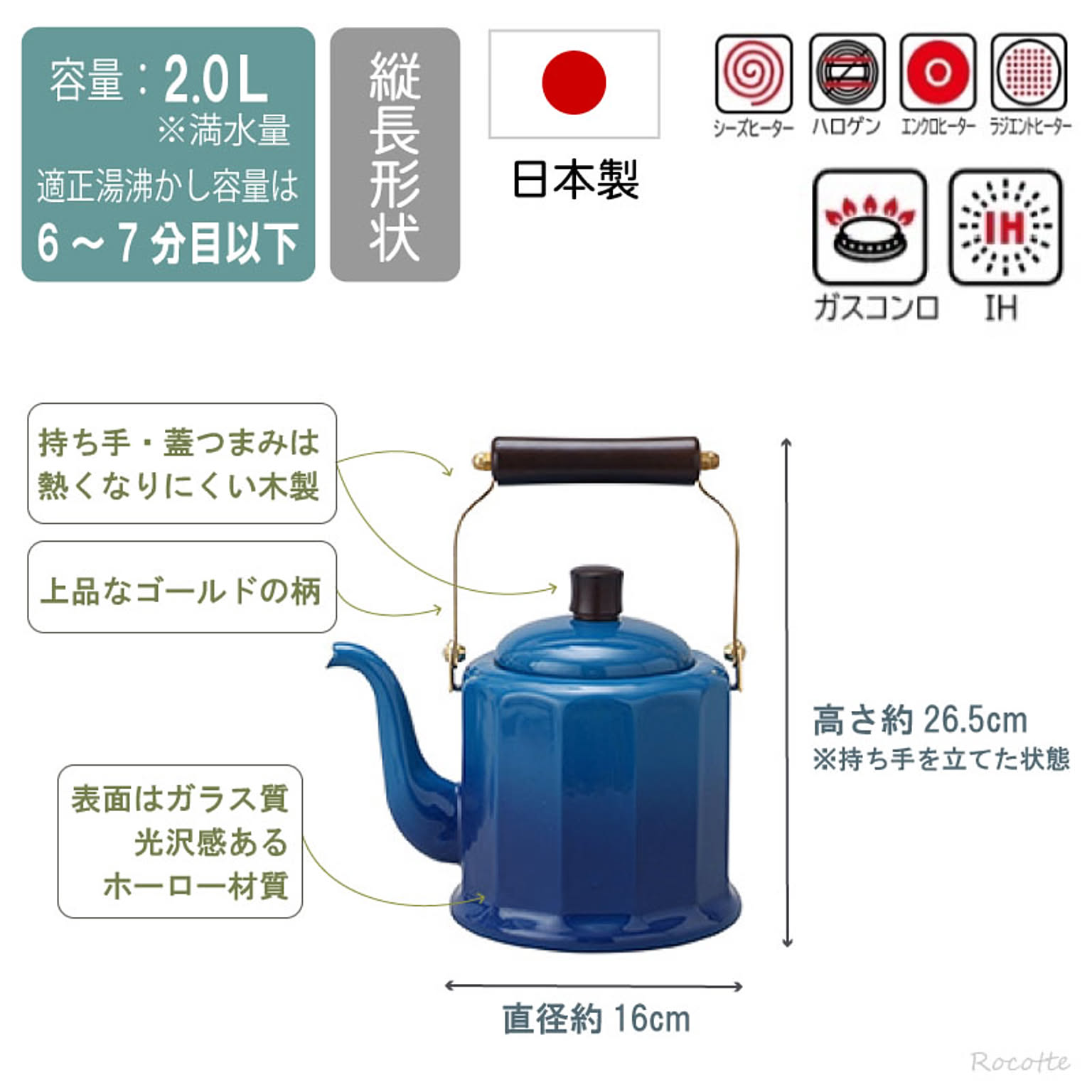 満水容量2L(適正湯沸かし容量は1.4L以下)。
