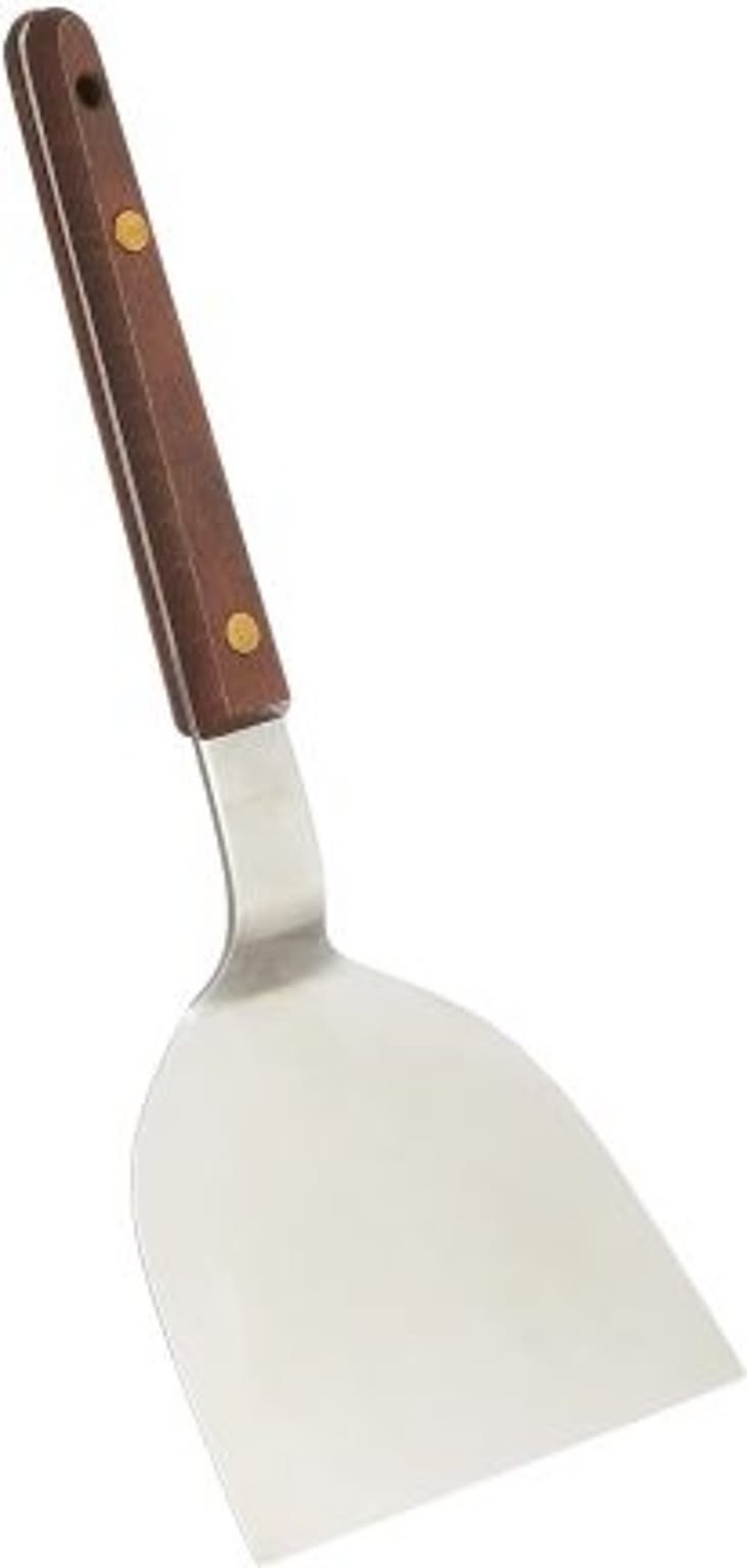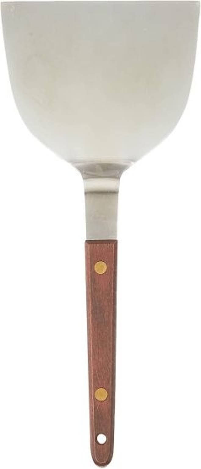 サイズ:105×19×250mm重 量:125g材 質:(本体)ステンレス鋼、 (ハンドル)自然木(ローズ)質と使いやすさにこだわった厨房用調理用具プロの方のご利用はもちろん、一般のご家庭でも活躍する逸品です。お好み焼を焼く時等に欠かせません。鉄板の上でお好み焼をひっくり返したり、切り分けたり、様々に活躍します。持ちやすい木柄ハンドル。お好み焼き・鉄板焼きの必需品。ハンドル部分は天然木で、熱くなりにくく扱いやすい。ひっくり返したり、切り分けたりに便利です。