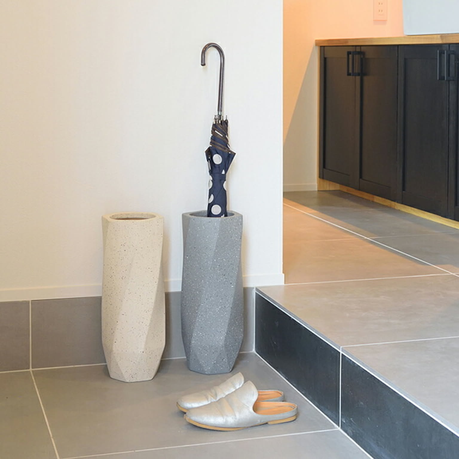 やわらかな色合いとしなやかなシルエットが美しい傘立て。やさしいラインと影のグラデーションがまるで陶芸作品のような仕上がりで、ワンランク上の空間を演出します。