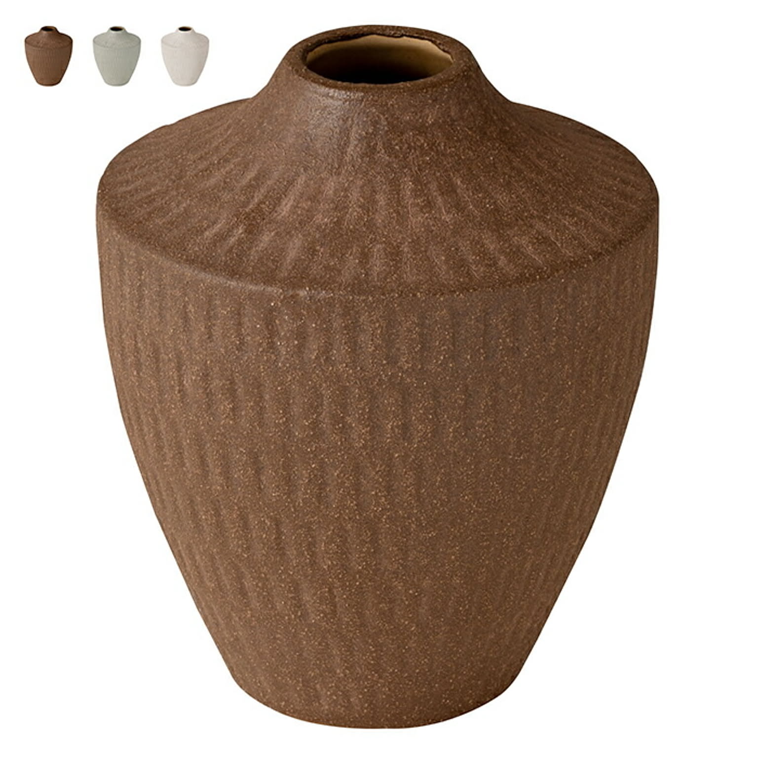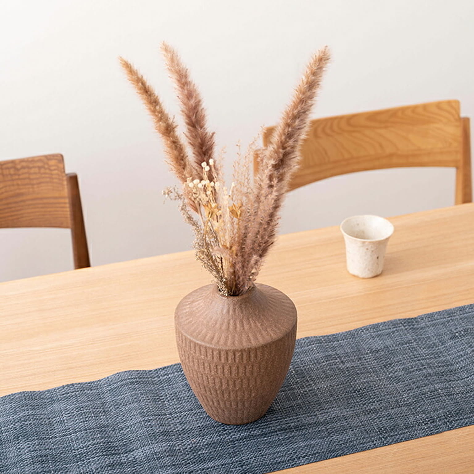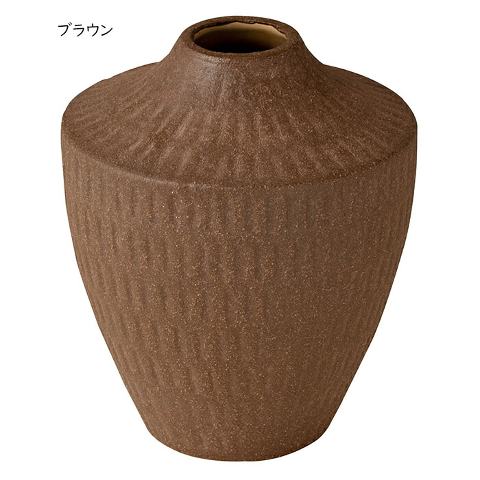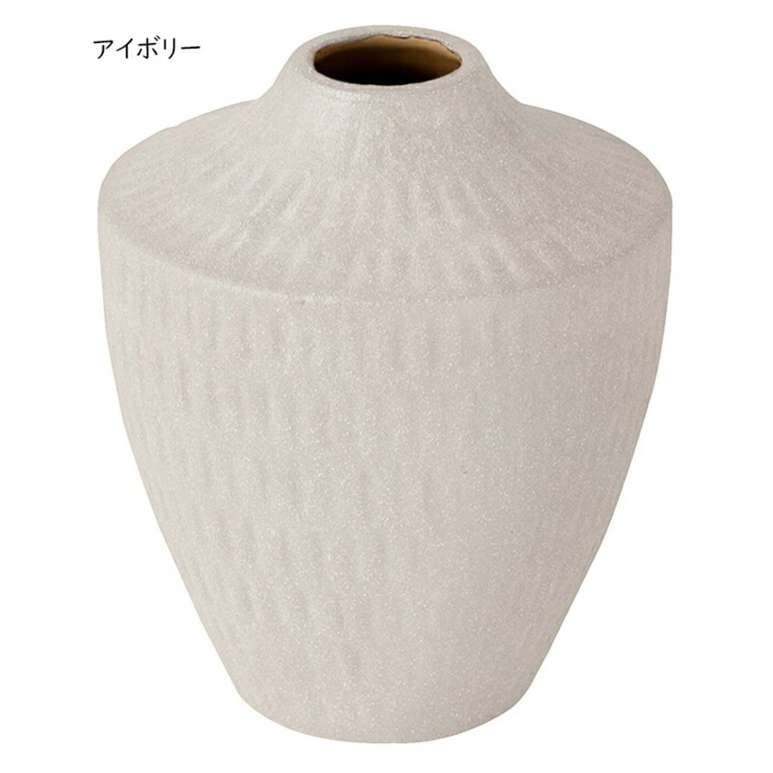 様々な空間に溶け込み、色々な表情を見せてくれる素材をいかした質感の花瓶。シンプルで洗練されたフォルムは、和モダン・ガーリー・ナチュラル・ミッドセンチュリーと様々なシーンに違和感なく馴染みます。植物を引き立てるシンプルなデザイン。単色で、大きな装飾のないシンプルなデザインなので、植物がより魅力的に引き立てられます。素焼き風のマットな質感。表面は、素焼き風で砂の様な質感を表現。ザラザラとした触感で、素朴な雰囲気を醸し出します。花瓶の内側には釉薬(ゆうやく)が塗られているので、水を入れてもOK。生花もドライも楽しむことが出来ます。