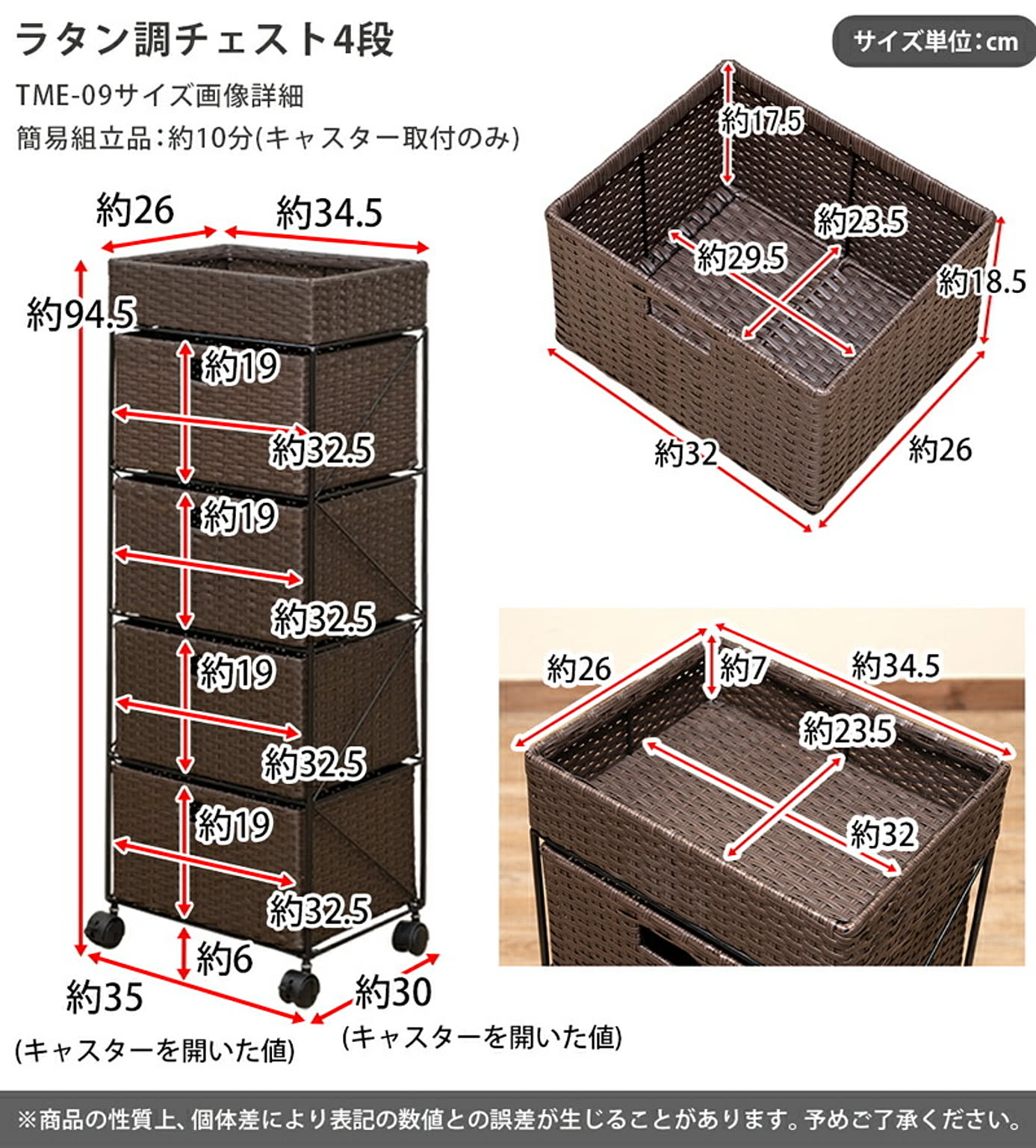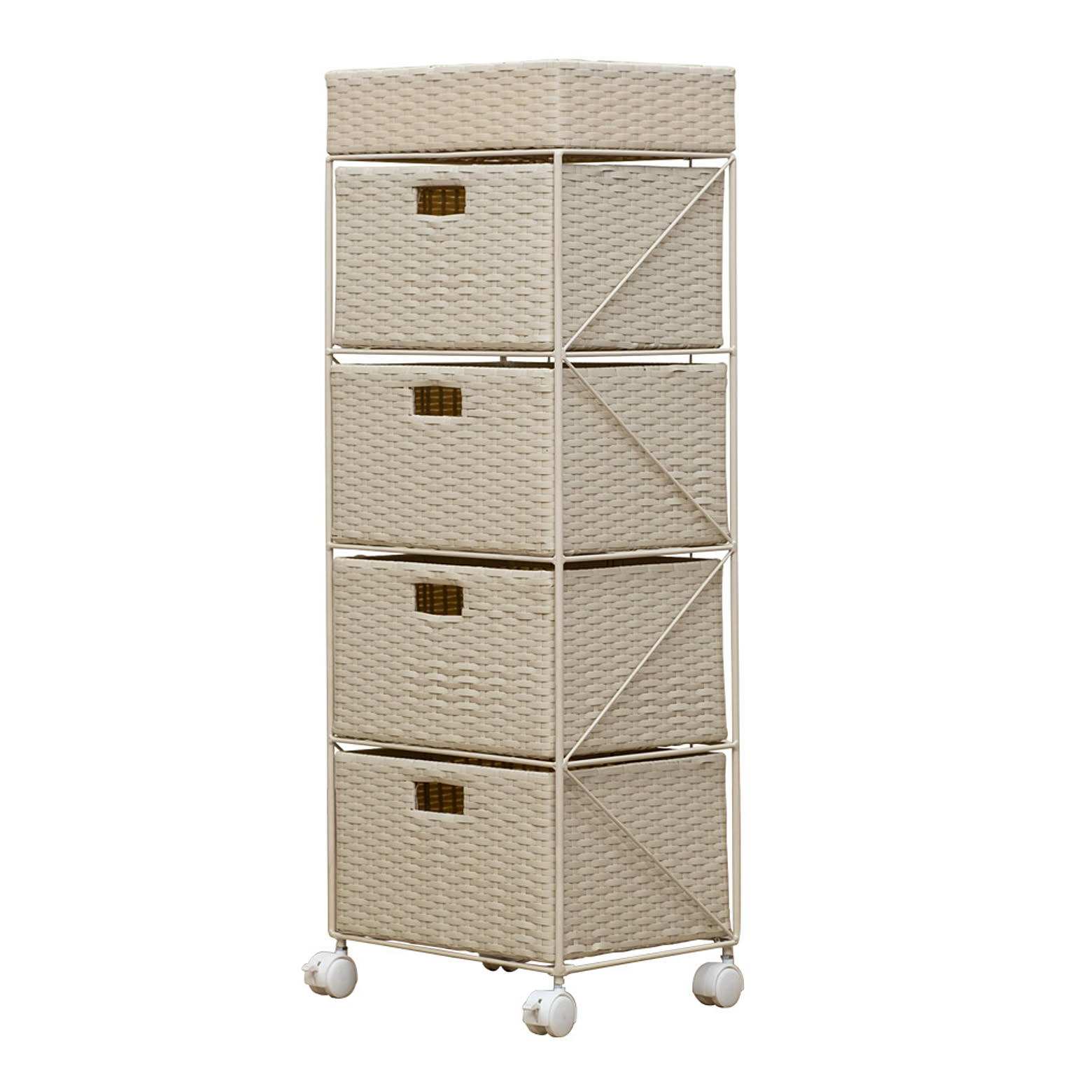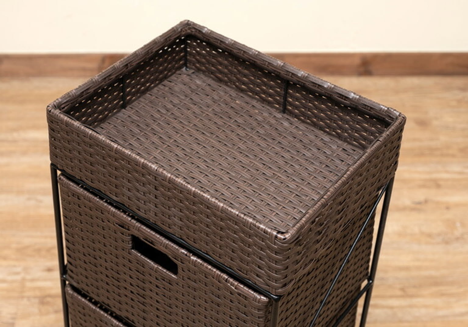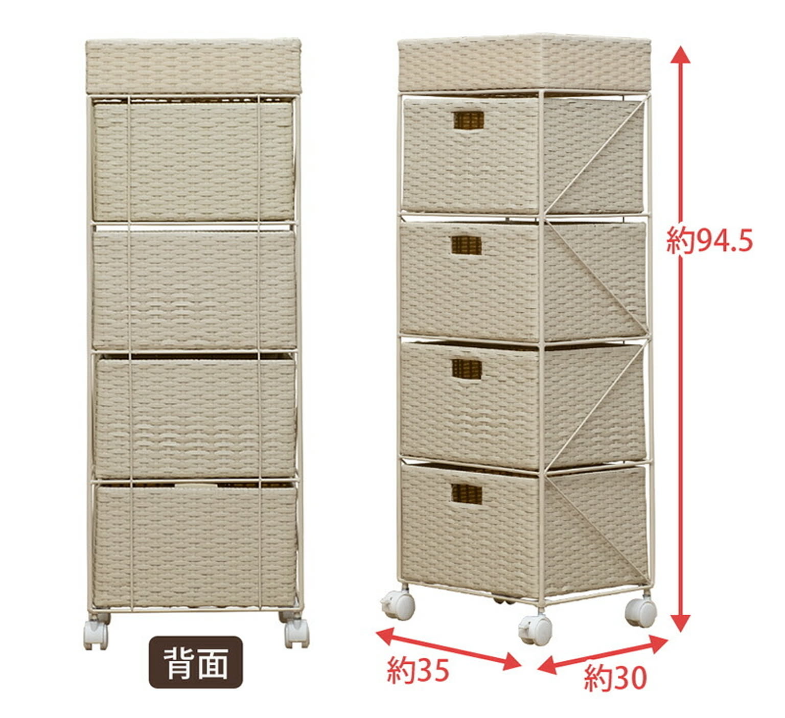 かごは深底で大容量!丈夫な人工ラタン(PE/ポリエチレン)を使用した4段収納チェスト。
