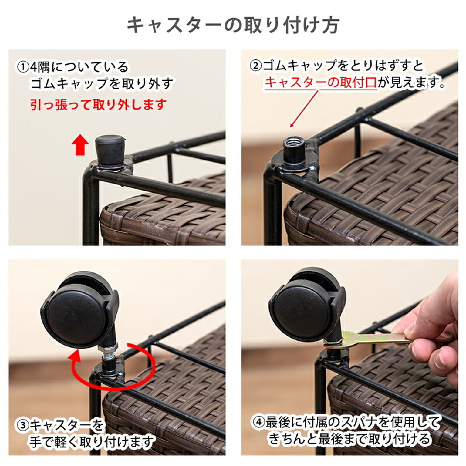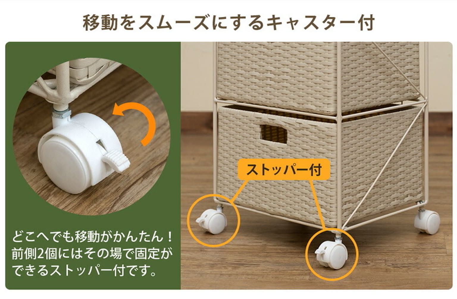 かご:人工ラタン(PE、ポリエチレン) キャスター4個(内2個はストッパー付)