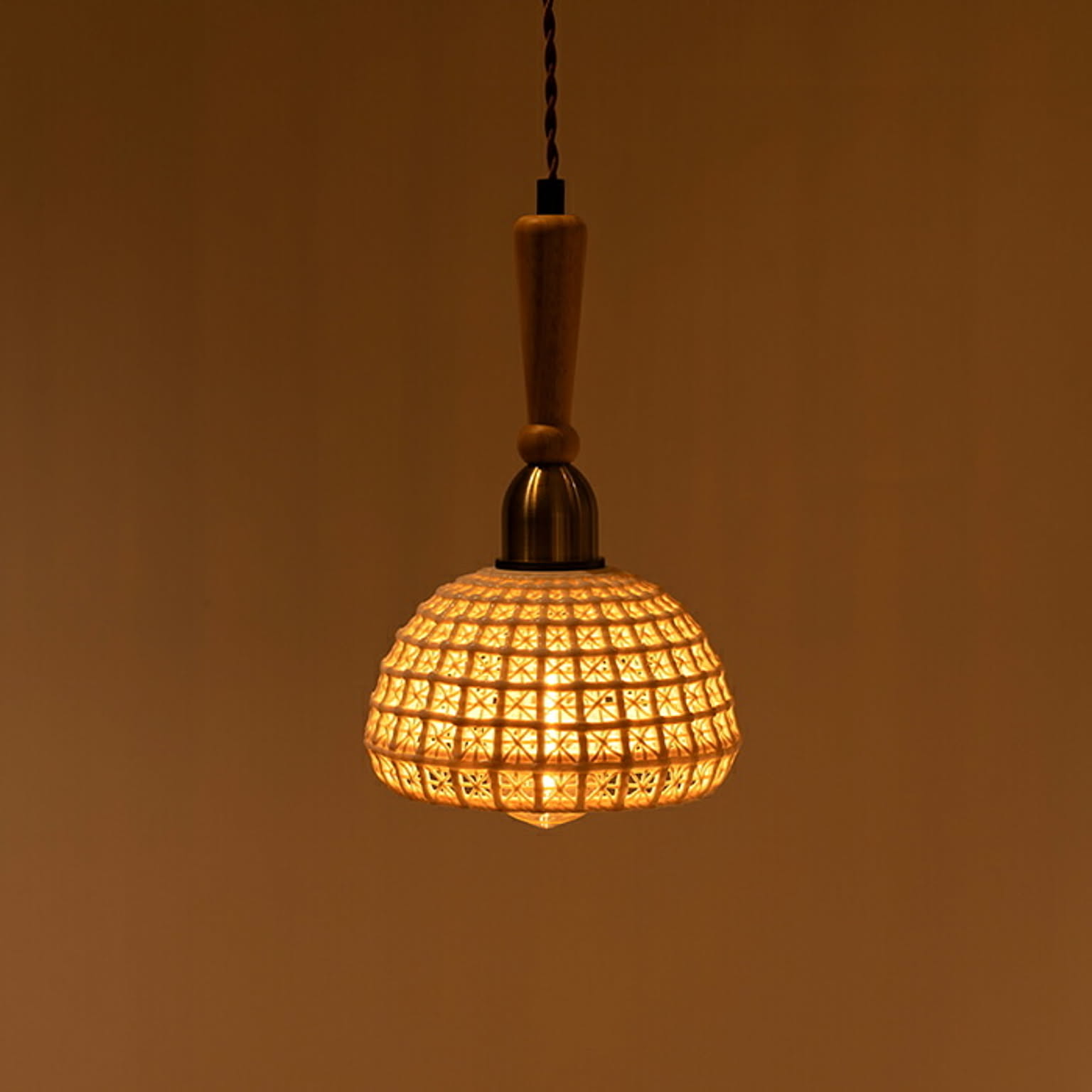 消灯時にはなめらかな陶器のデザインを楽しめ、点灯時は優しい光でぬくもりのある空間を演出します。エジソン球が1個付いているので、届いたその日から使えます。コードの長さは約1m。長さ調整用のプレートが付いているので、お好みの高さに調整可能。