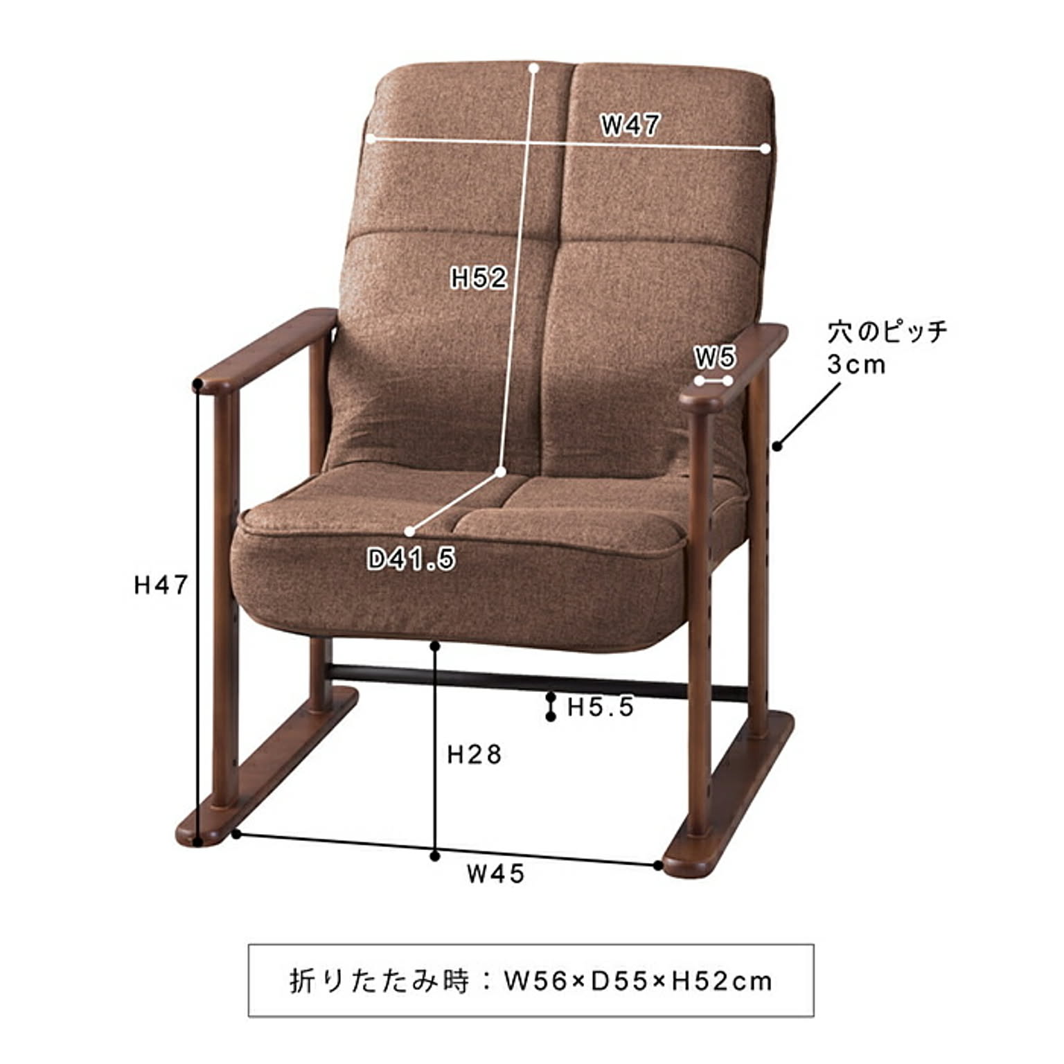 サイズ:W56×D56.5〜74.5×H67.5〜85×SH29/32/35/38cm