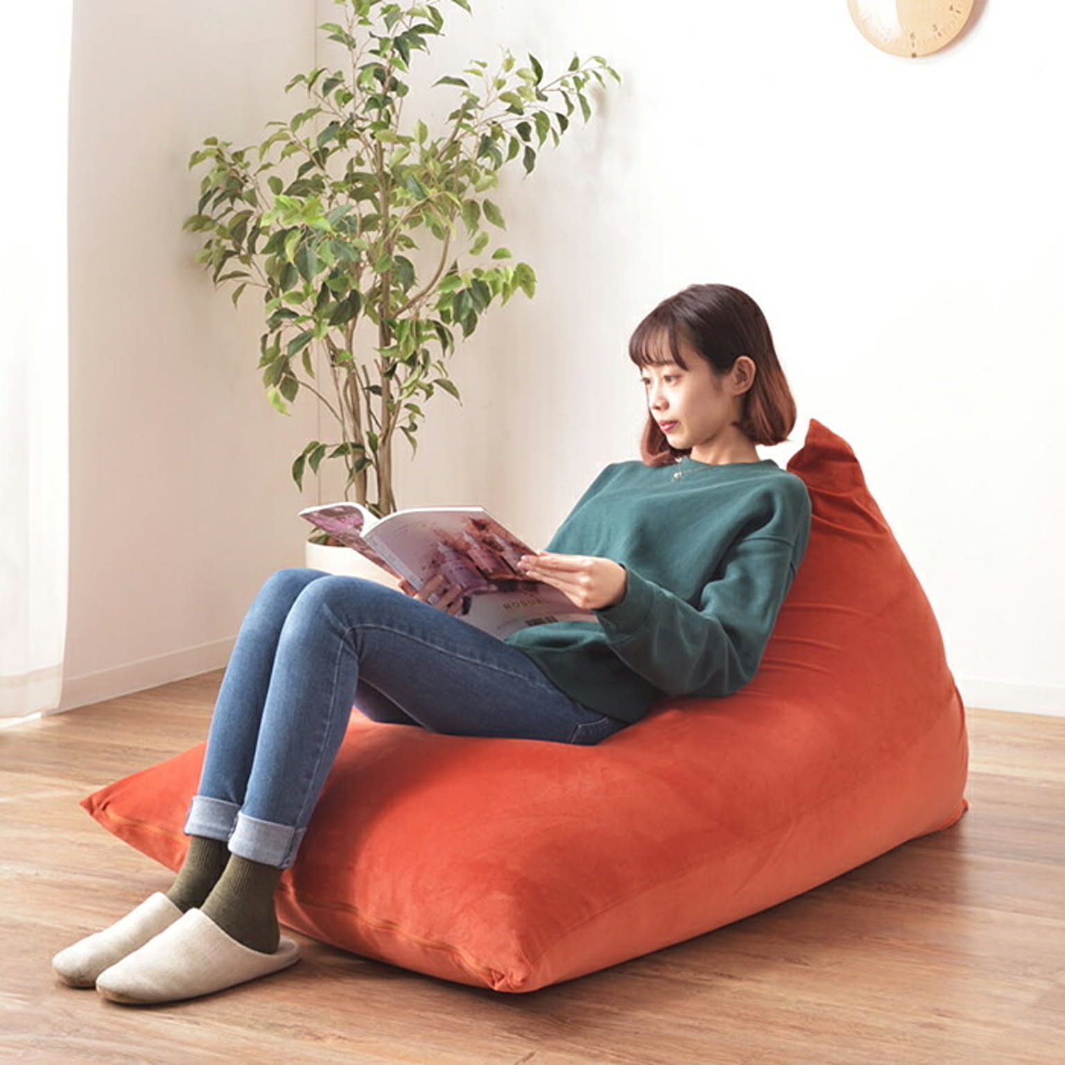 matteaさんは、用途の広いこちらのビーズクッションを愛用されていました。座椅子のように座って使うこともできますが、このように伸ばして使えば、オットマン代わりにもなるんだそうです。気分に合わせて、好きな形でリラックス時間を過ごすことができるので、一度使ったら手放せなくなりそうですね。