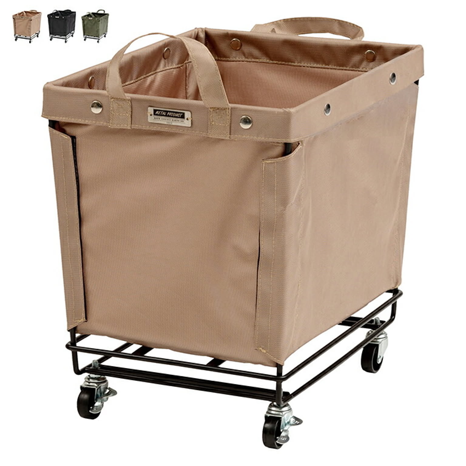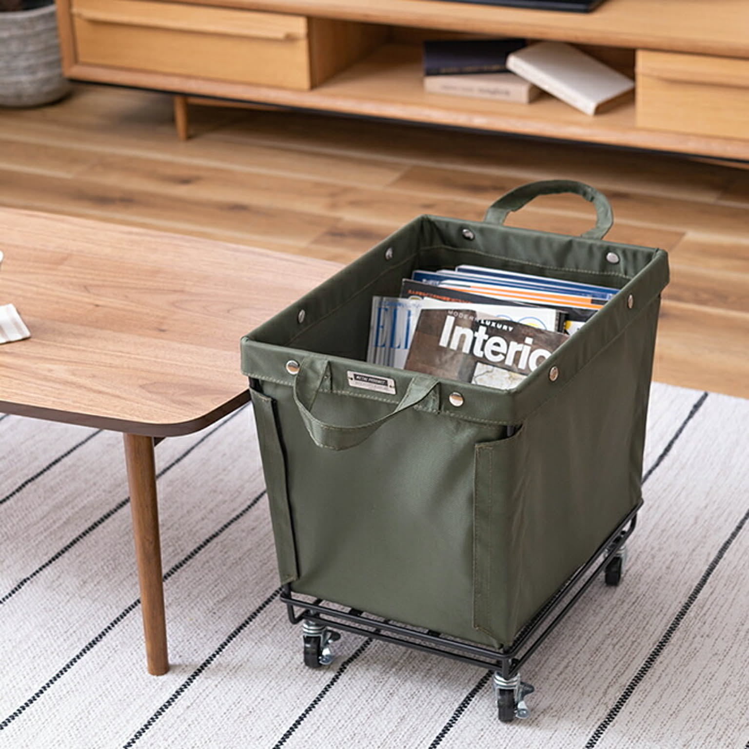 使いたいときに手軽に使えるバスケットワゴン。キャスター付きなので手軽に移動ができ、たっぷり収納出来るバスケットワゴン。リビング等でのインテリア収納はもちろん、お店のディスプレイワゴンとして、飲食店のテーブル下収納としてもおすすめです。キャスターにはストッパーが付いているので、固定させておくこともできて安心。取っ手が付いているので、移動や持ち運び便利。正面上部にワンポイントデザインとして小さなプレートが付いたヴィンテージスタイル。バスケットの底面にMDF板が入っているので、しっかりと収納することができます。