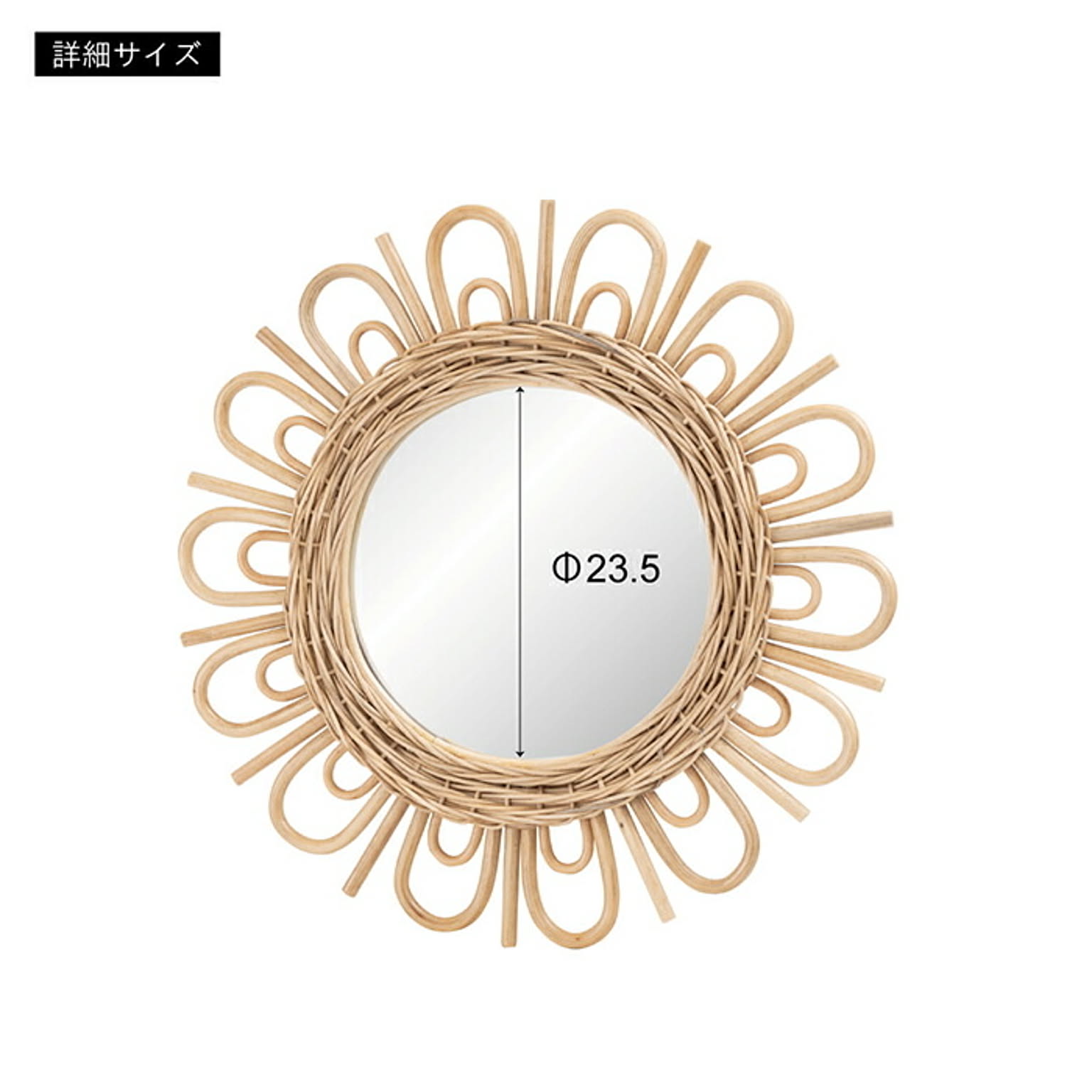 スペック:ラタン ラッカー塗装 ミラー ※ミラー部サイズ:Φ23.5cm