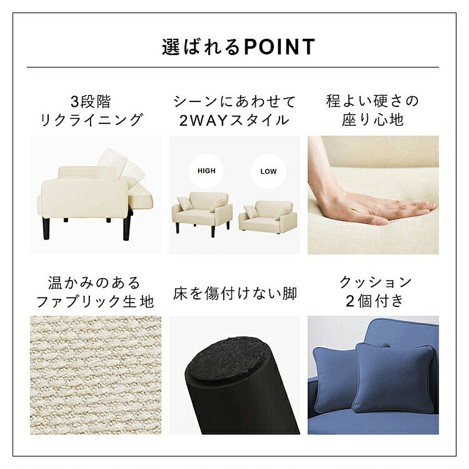 ハイスタイル、ローソファの2Way。テイストを選ばず合わせやすい、温かみのあるナチュラルなファブリック生地。