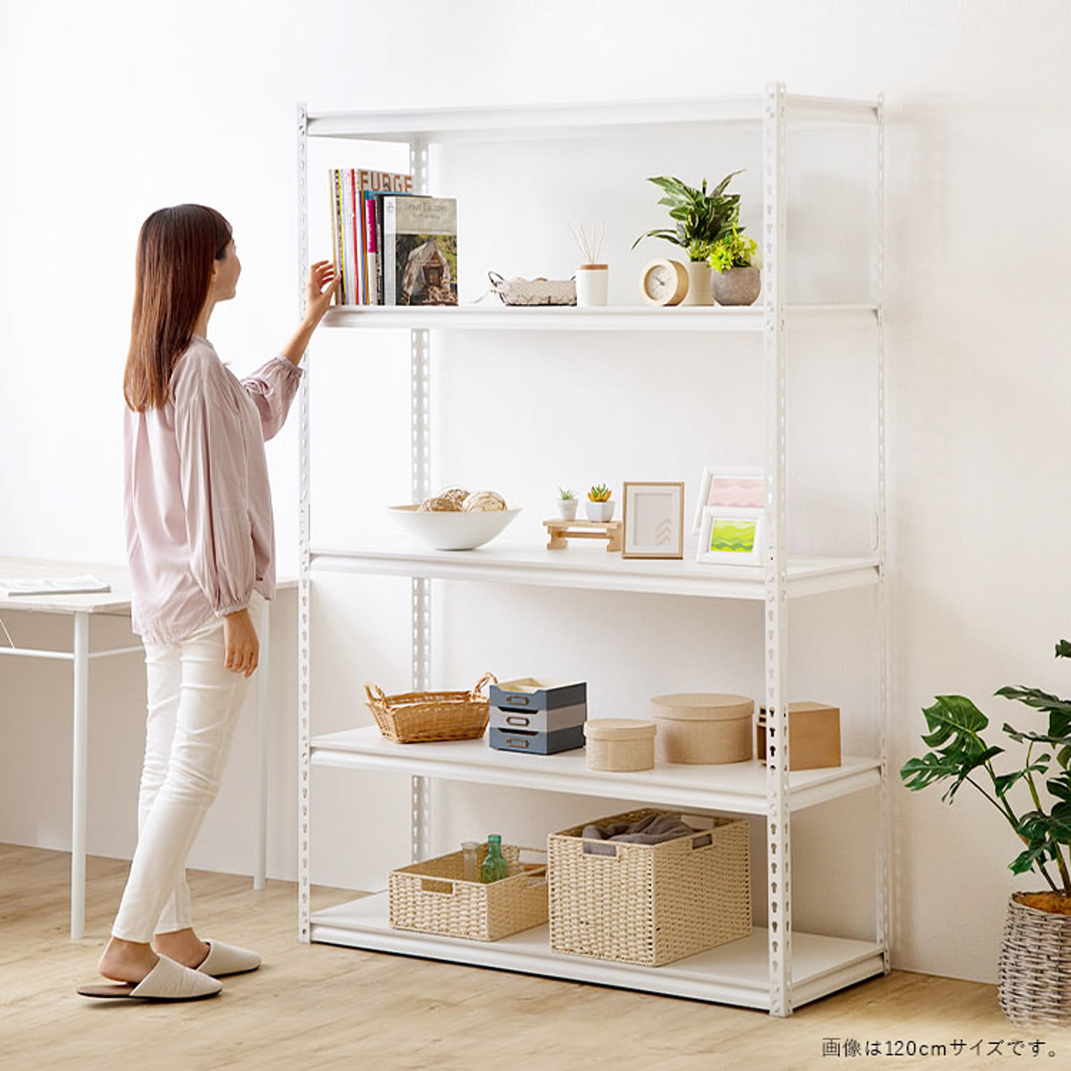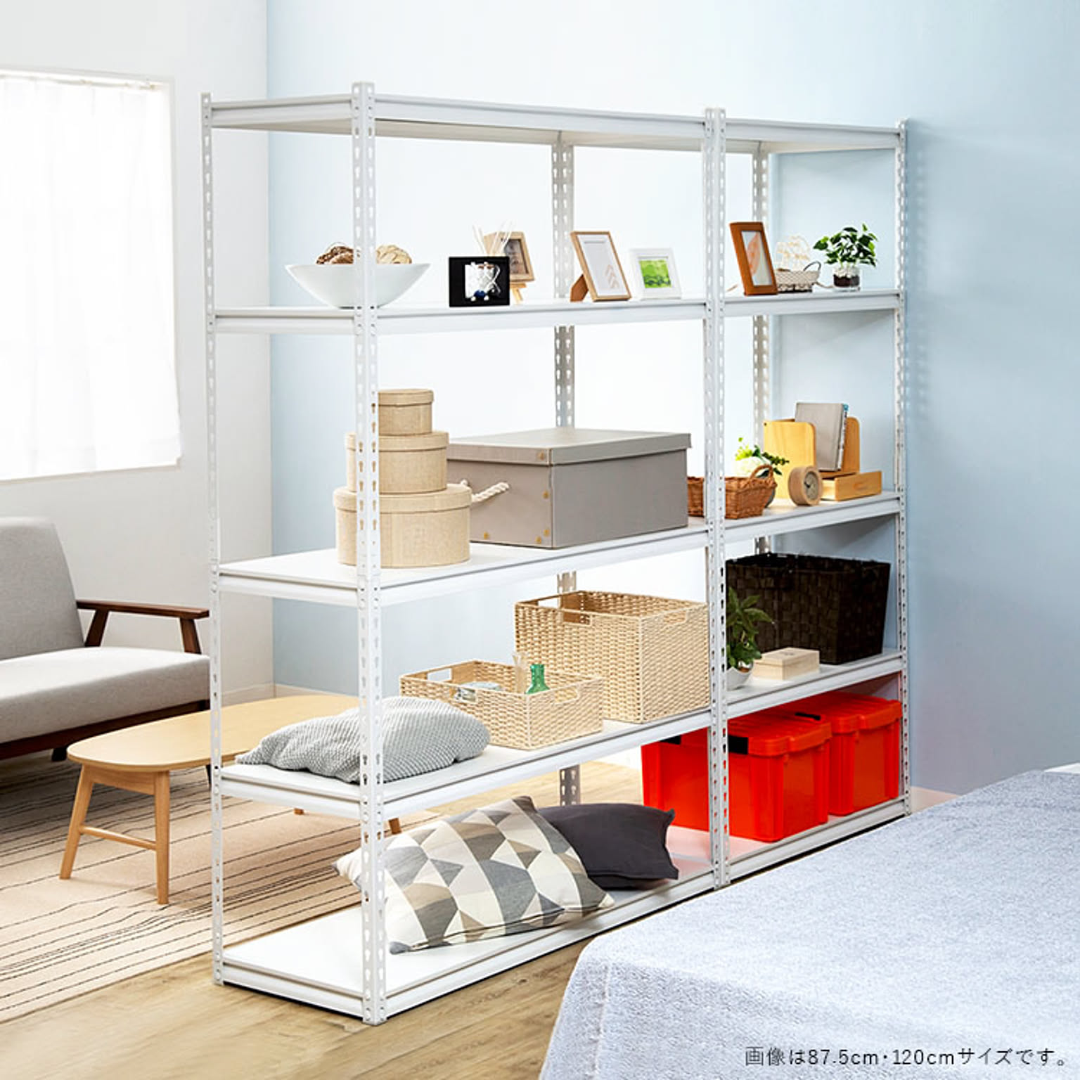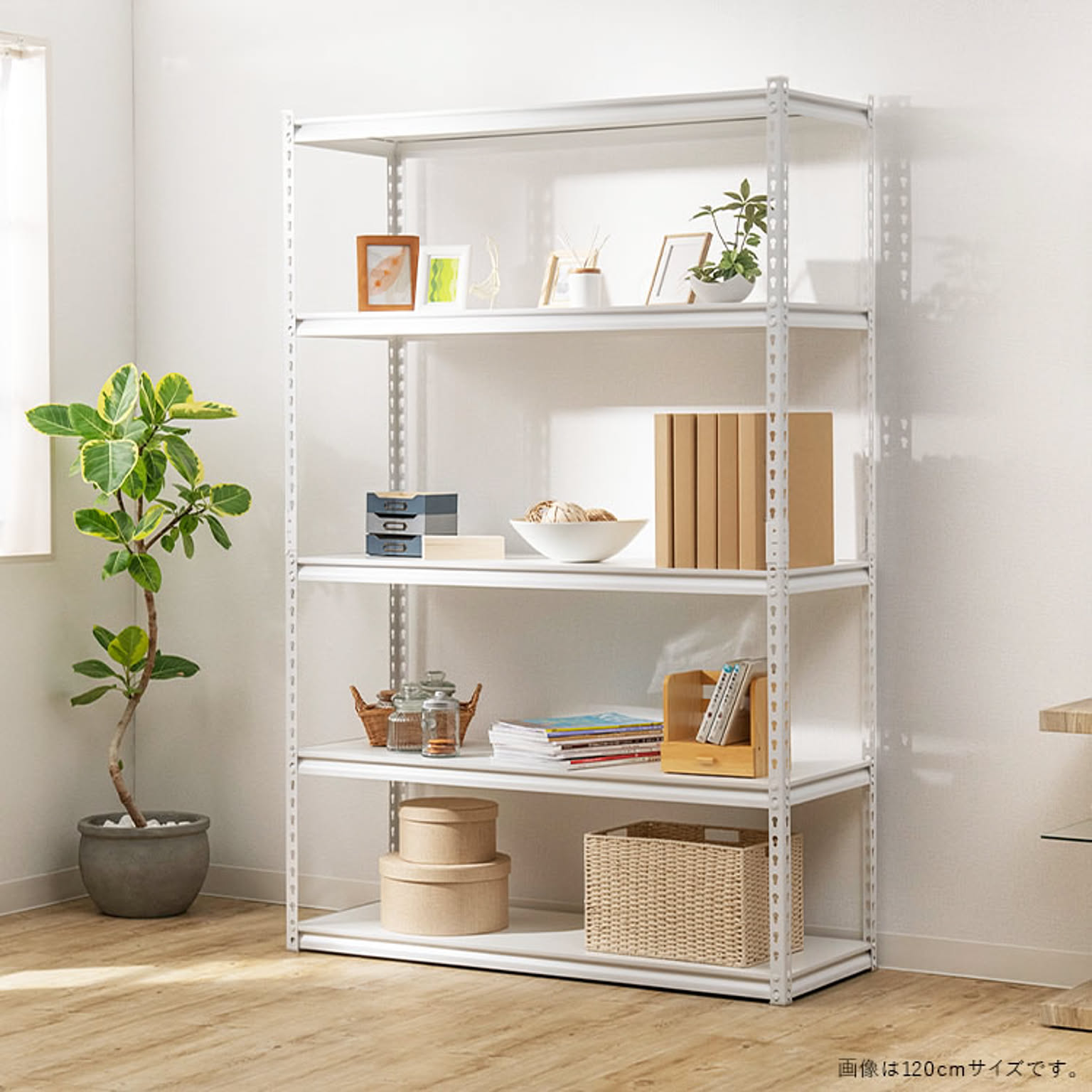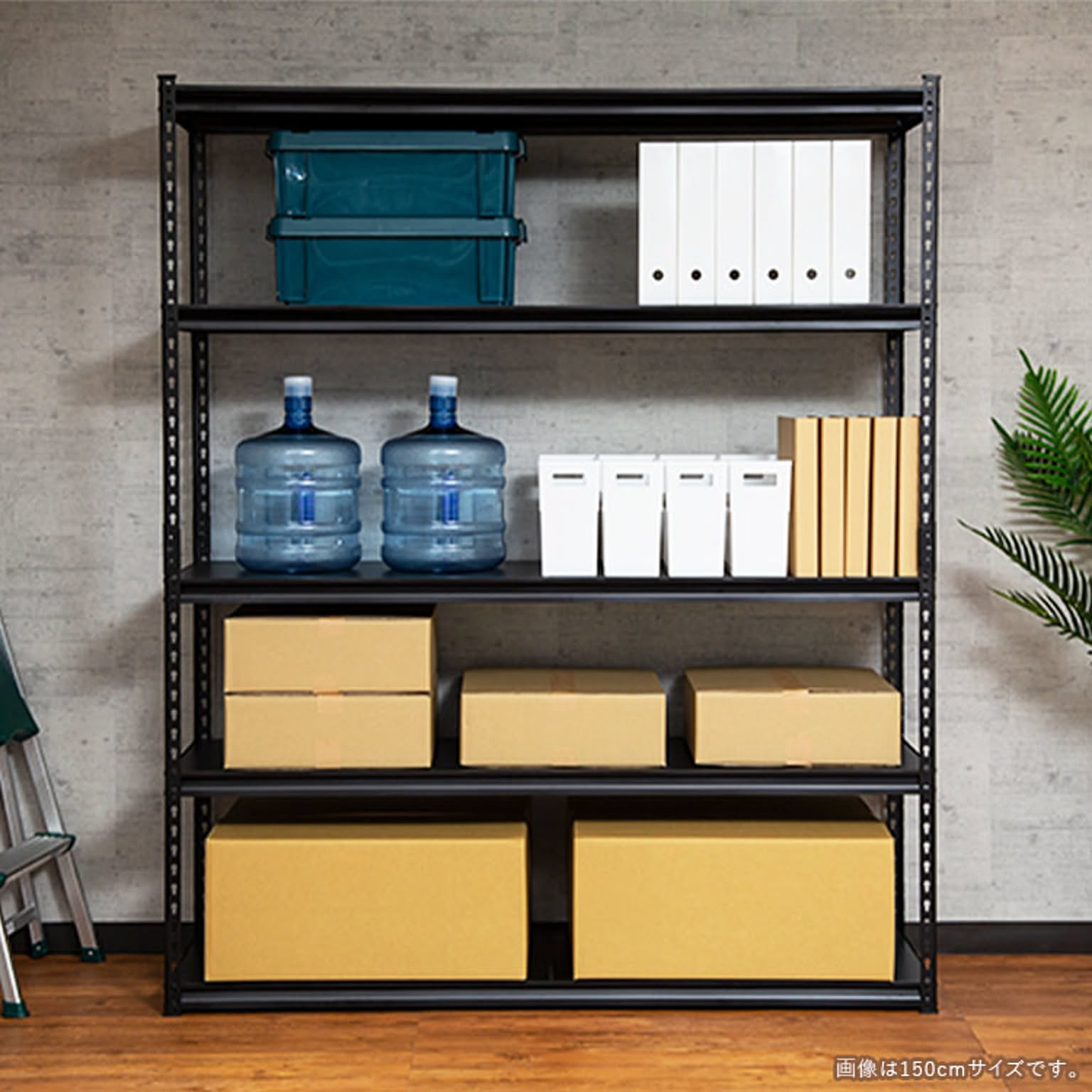 お好みの位置に設置できる5枚の可動棚が付いたスチールラック。 デスクサイドに置けばファイルや書類、プリンターなどオフィス周りに必要なものをまとめて収納できます。 カラーはブラック、ホワイトの2カラーからお選びいただけます。 ●商品サイズ(cm) 幅約87.5×奥行約45×高さ約183 ●商品重量 約21.28kg ●耐荷重 棚1段あたり100kg ※耐荷重は測定値であり保証値ではありません。 ●材質 フレーム:スチール(粉体塗装) 棚板:パーティクルボード(メラミン加工) ●組み立て式