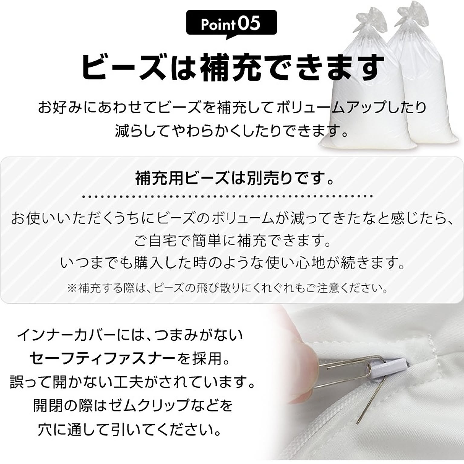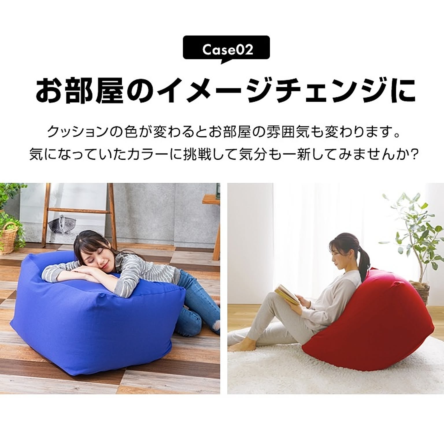 日本製・2WAYスクエア型のビーズクッション専用の洗い替えカバーです。丸洗いが可能なので、こまめに洗っていつも清潔に使用できます。●商品サイズ(cm)幅約65×奥行約65×高さ約43●商品重量約500g●材質ニット部分:ポリエステル87%・ポリウレタン13%布帛部分:ポリエステル100%●原産国日本製★関連商品はこちら★★ビーンズMAXシリーズ スクエアMAX