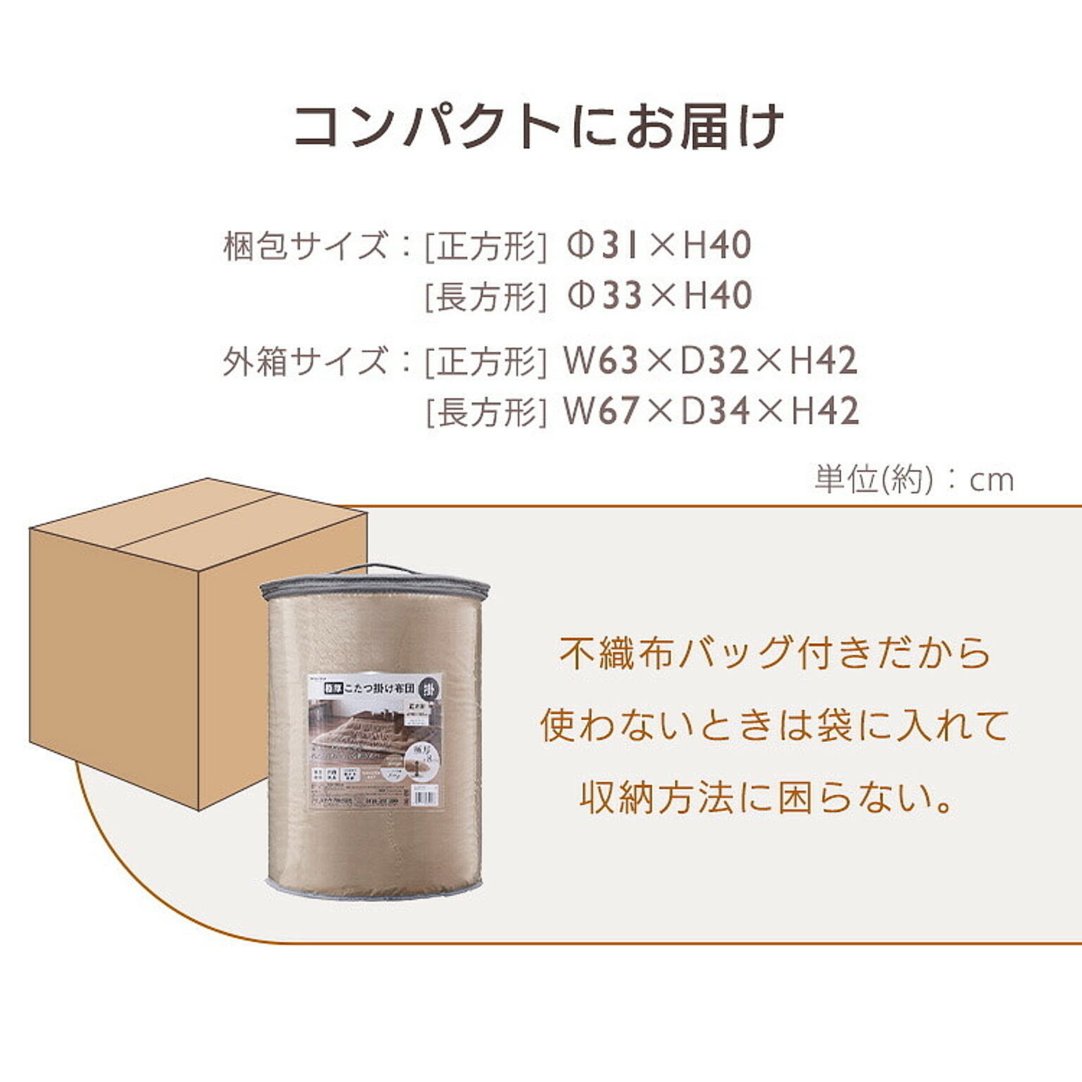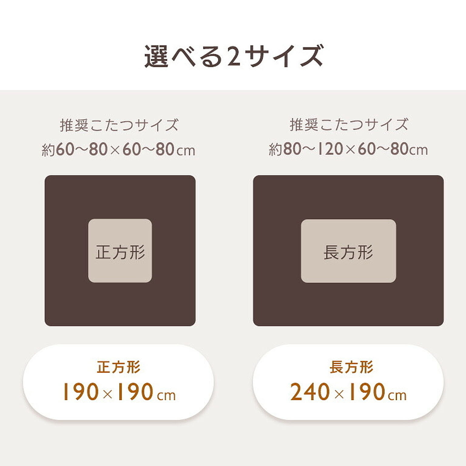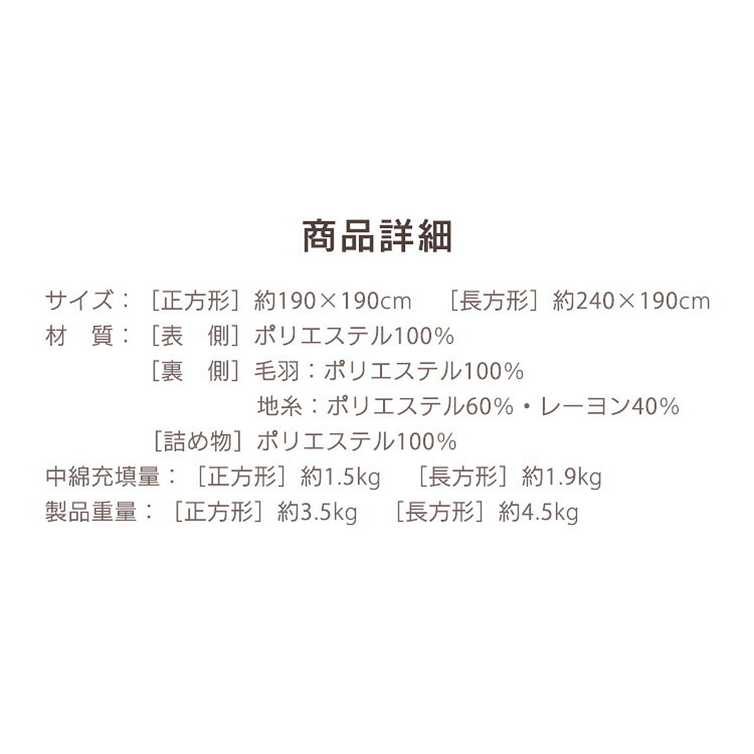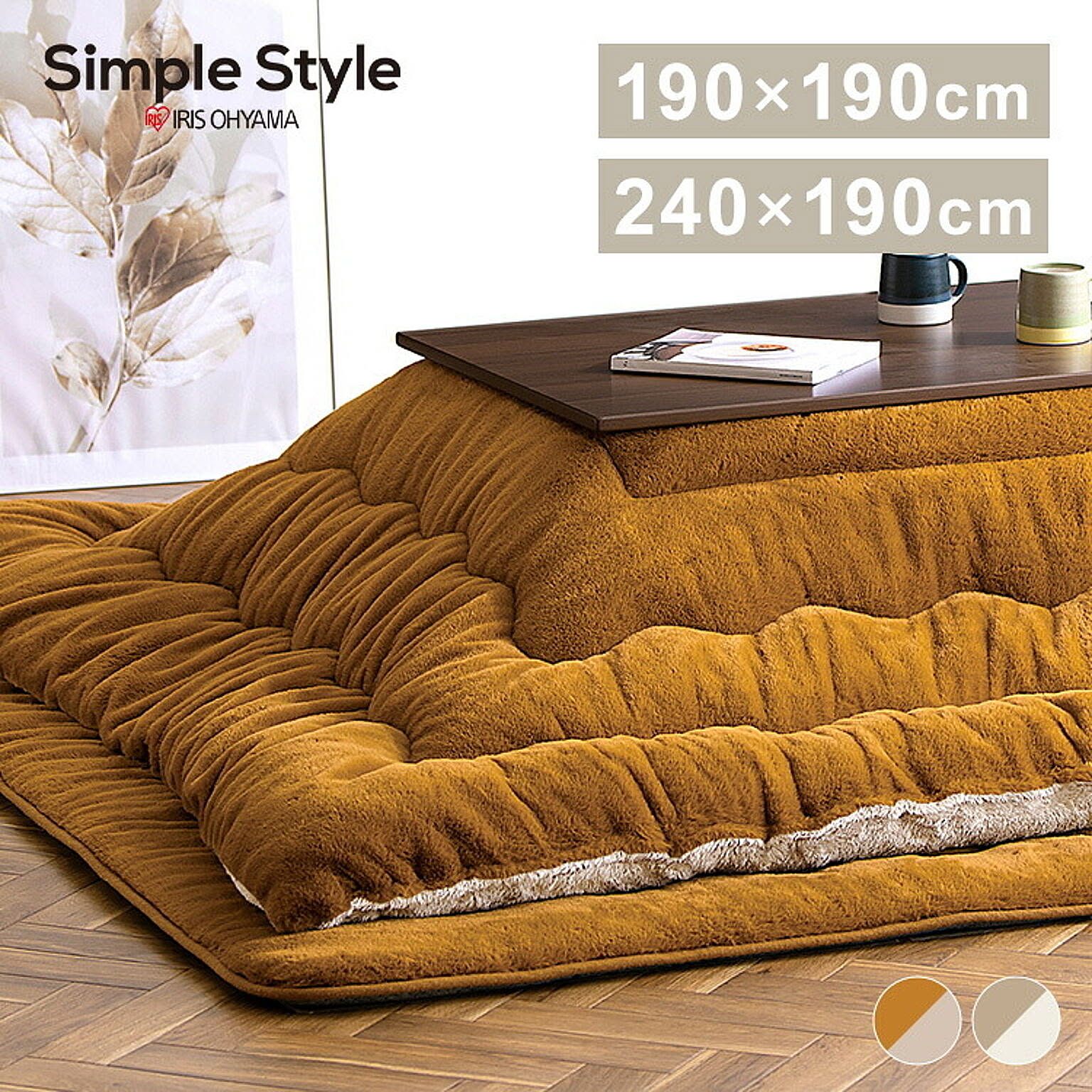 ボリュームたっぷりで、包み込まれるような肌ざわり。極厚こたつ掛け布団。◆驚きのボリューム感極厚!厚さ約8cm。◆リバーシブルタイプ質感とカラーのリバーシブルで、2倍楽しめる。☆マスタード(ラビットファー調)/ライトブラウン(シープボア調)☆グレージュ(ラビットファー調)/アイボリー(シープボア調)【ラビットファー調】ウサギの毛並みのような、きめ細かくふんわり柔らかなさわり心地。【シープボア調】羊の毛のようにモコモコでふわふわ。見た目も肌ざわりも温もりを感じる。◆あたたかさに包まれる吸湿発熱生地と蓄熱綿使用で暖かさ持続。◆いつでも清潔に使える抗菌防臭加工済み。ご家庭での手洗いが可能です。※こちらのページはこたつ掛け布団のみの販売です。●商品サイズ(cm)幅約190×奥行約190(正方形)●対応こたつサイズ(cm)約60〜80×60〜80●材質<表側>ポリエステル100%<裏側>毛羽:ポリエステル100% 地糸:ポリエステル60%、レーヨン40%<詰め物>ポリエステル100%●充填量約1.5kg●お手入れ方法手洗い可能※洗濯機や乾燥機は使用しないでください