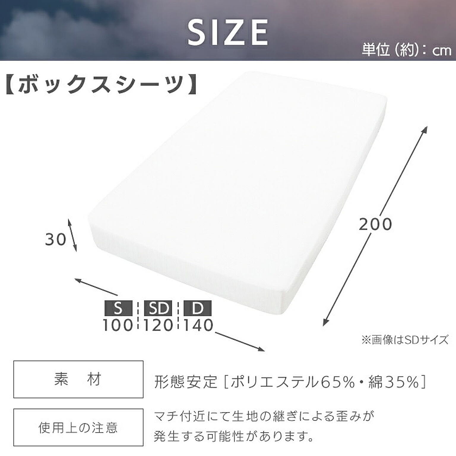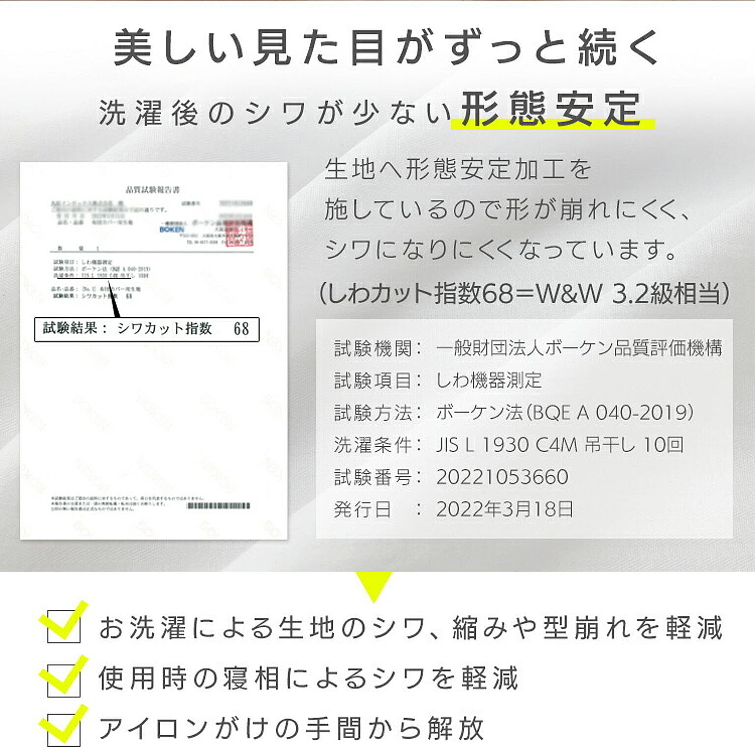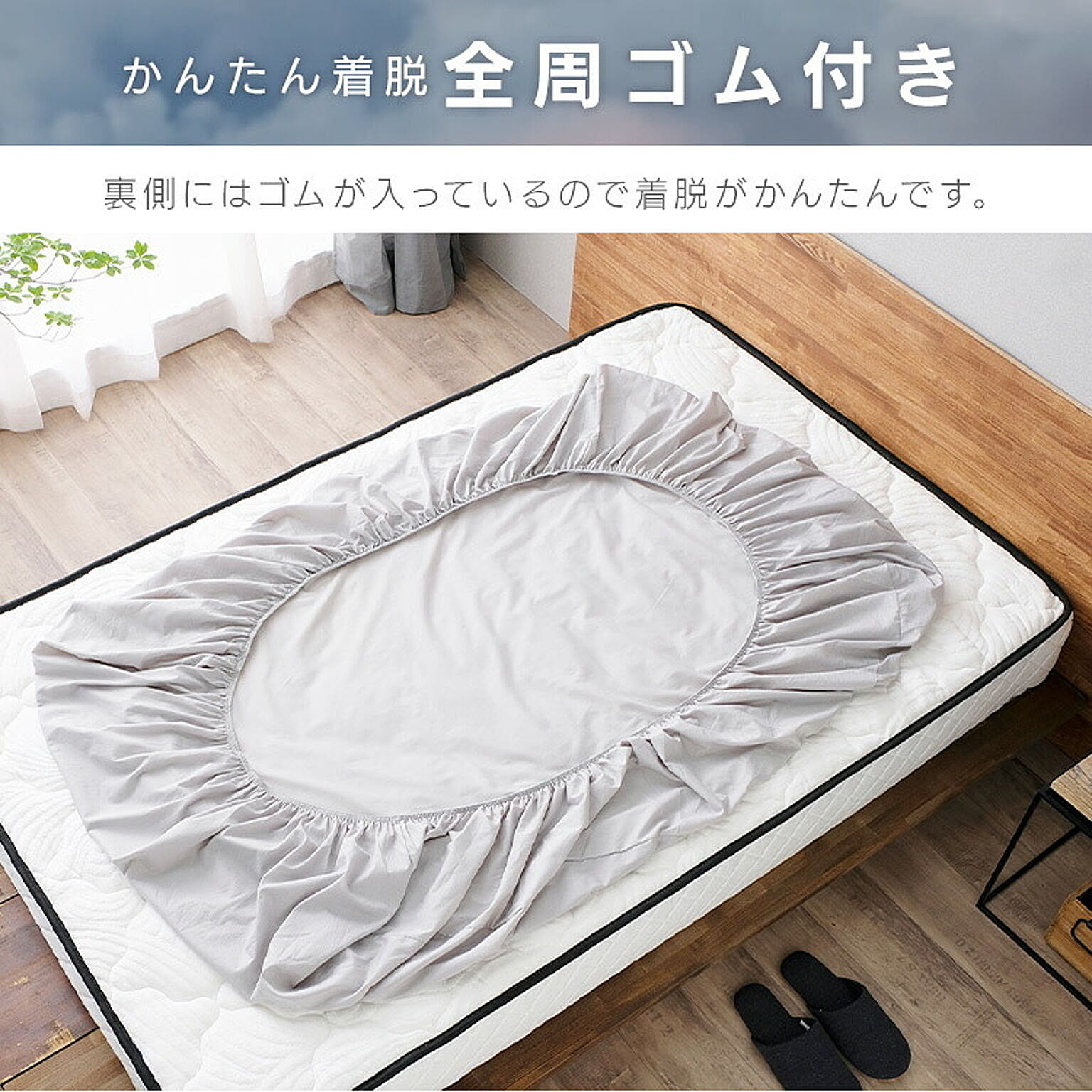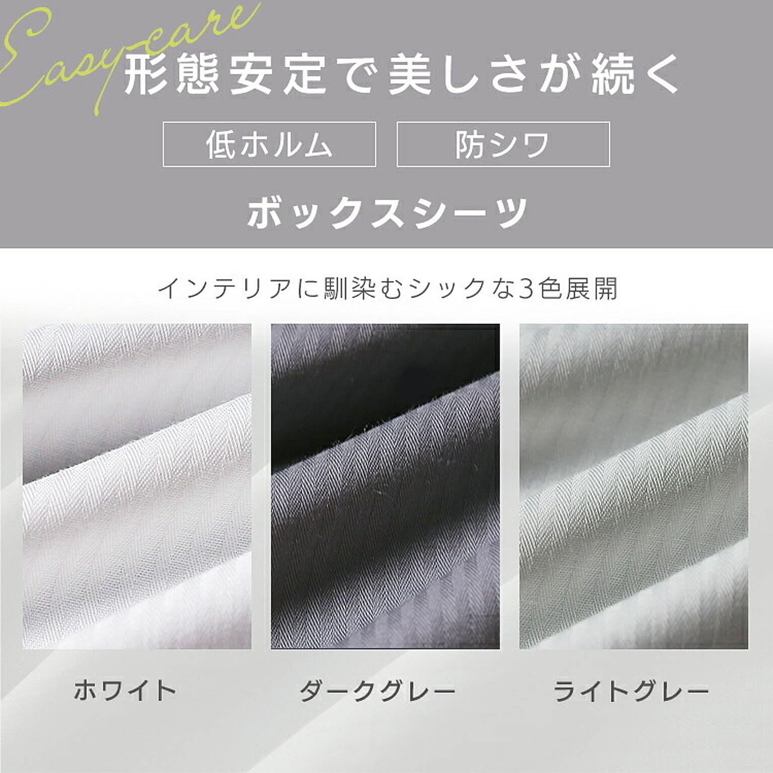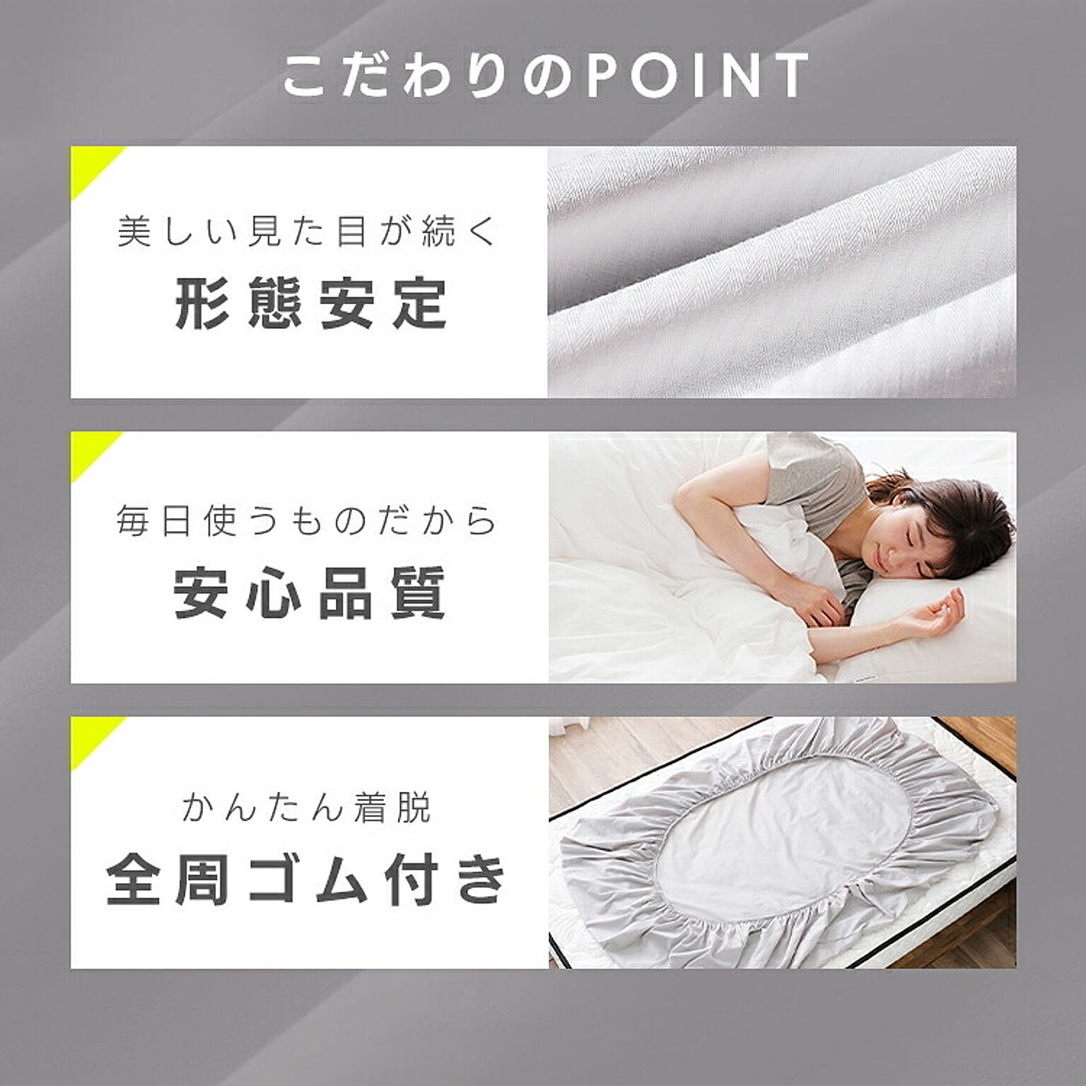 形状安定で美しさが続く、イージーケア生地。上品さが漂う光沢のあるエンボス加工で、寝室をホテルライクな空間に演出します。滑らかで心地よい肌ざわりで快適な寝心地をお届けします。裏面にはゴムが入っているので着脱がかんたんです。●商品サイズ(cm)約120×約200×約30(セミダブルサイズ)●材質ポリエステル65%、綿35%●お手入れ方法家庭用洗濯機で丸洗い可能です。●カラーホワイト、ライトグレー、ダークグレー