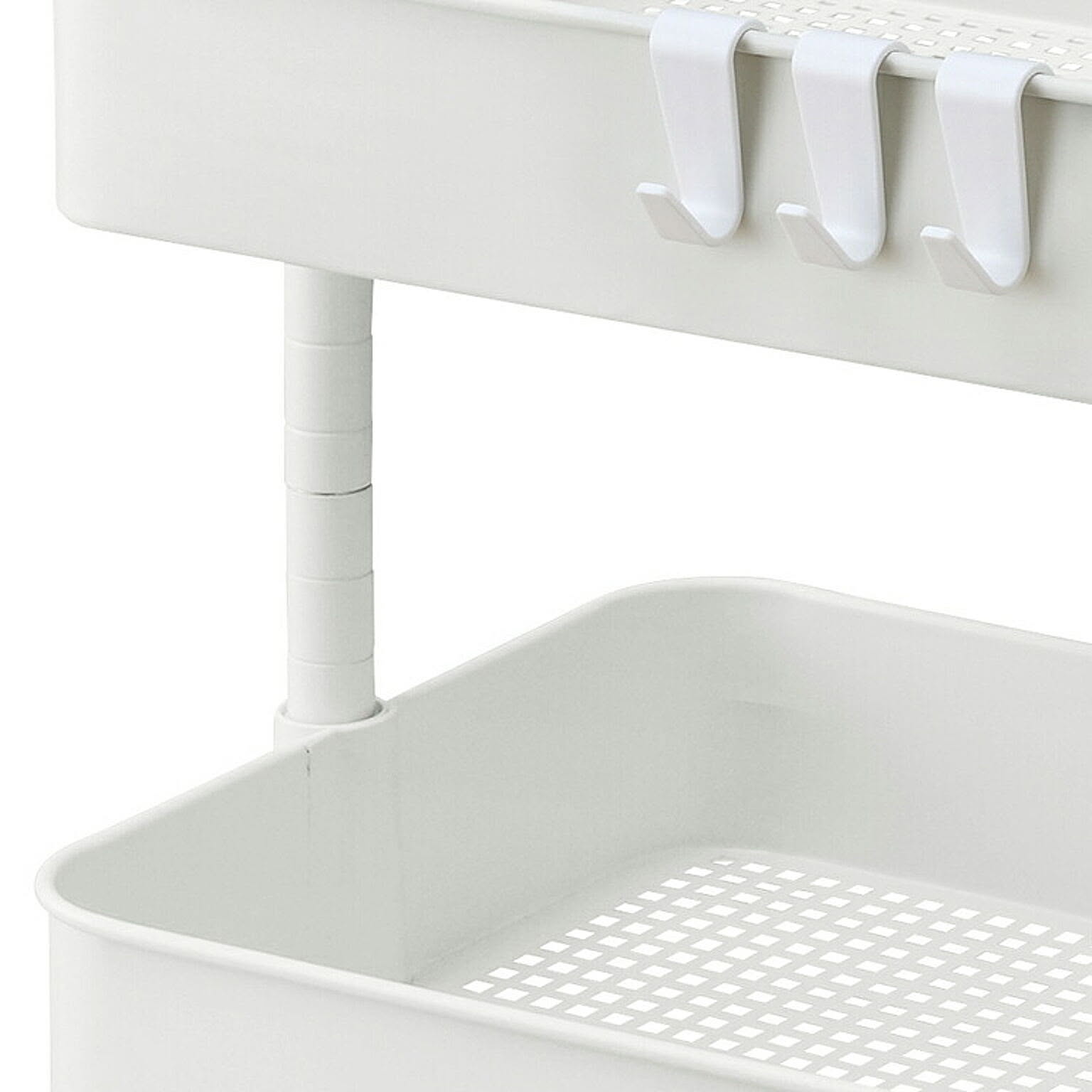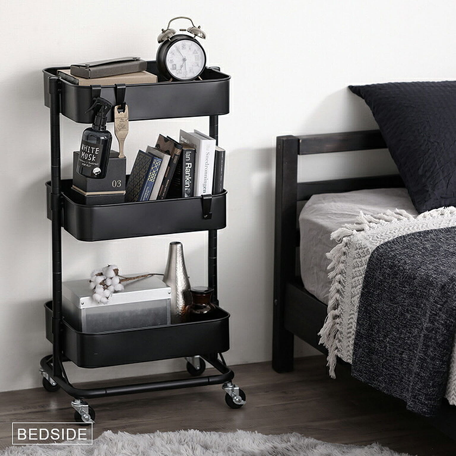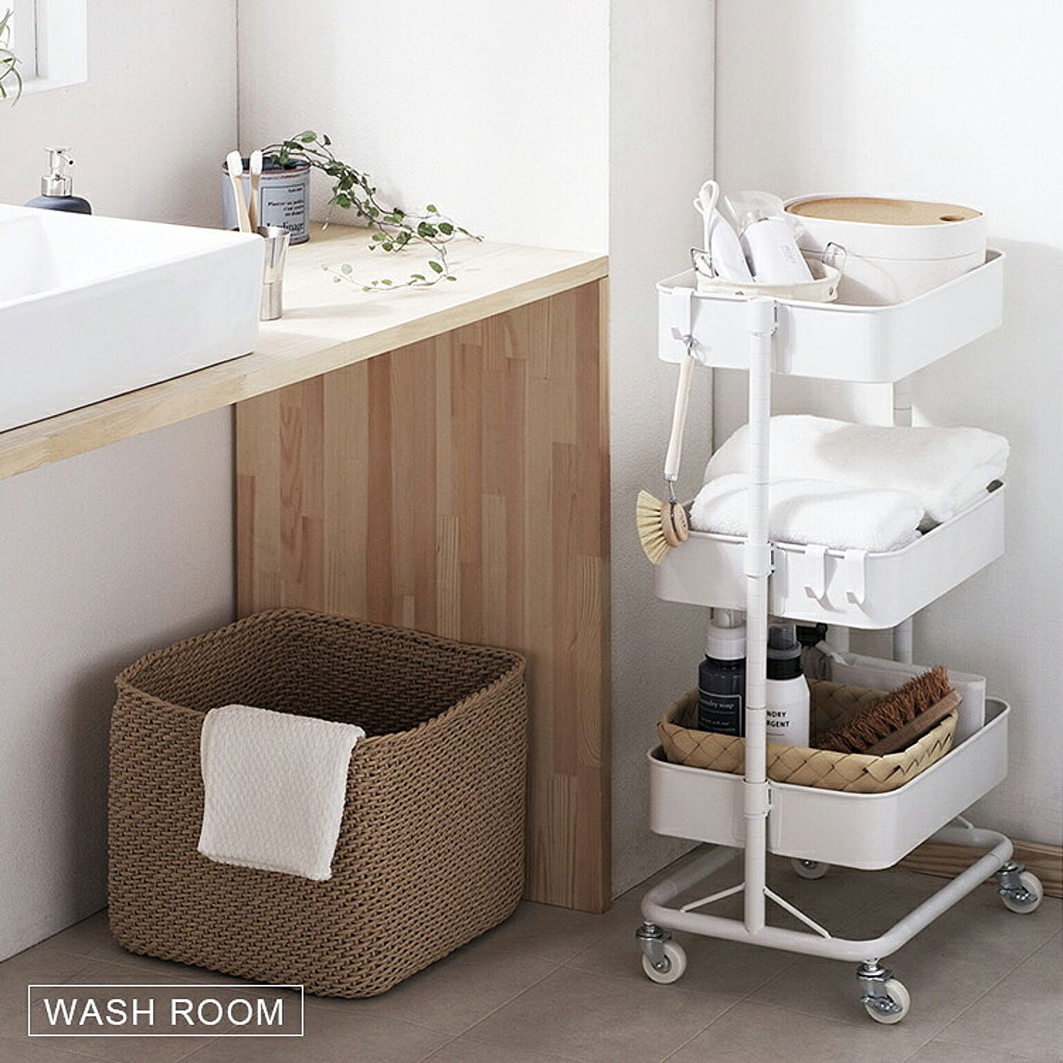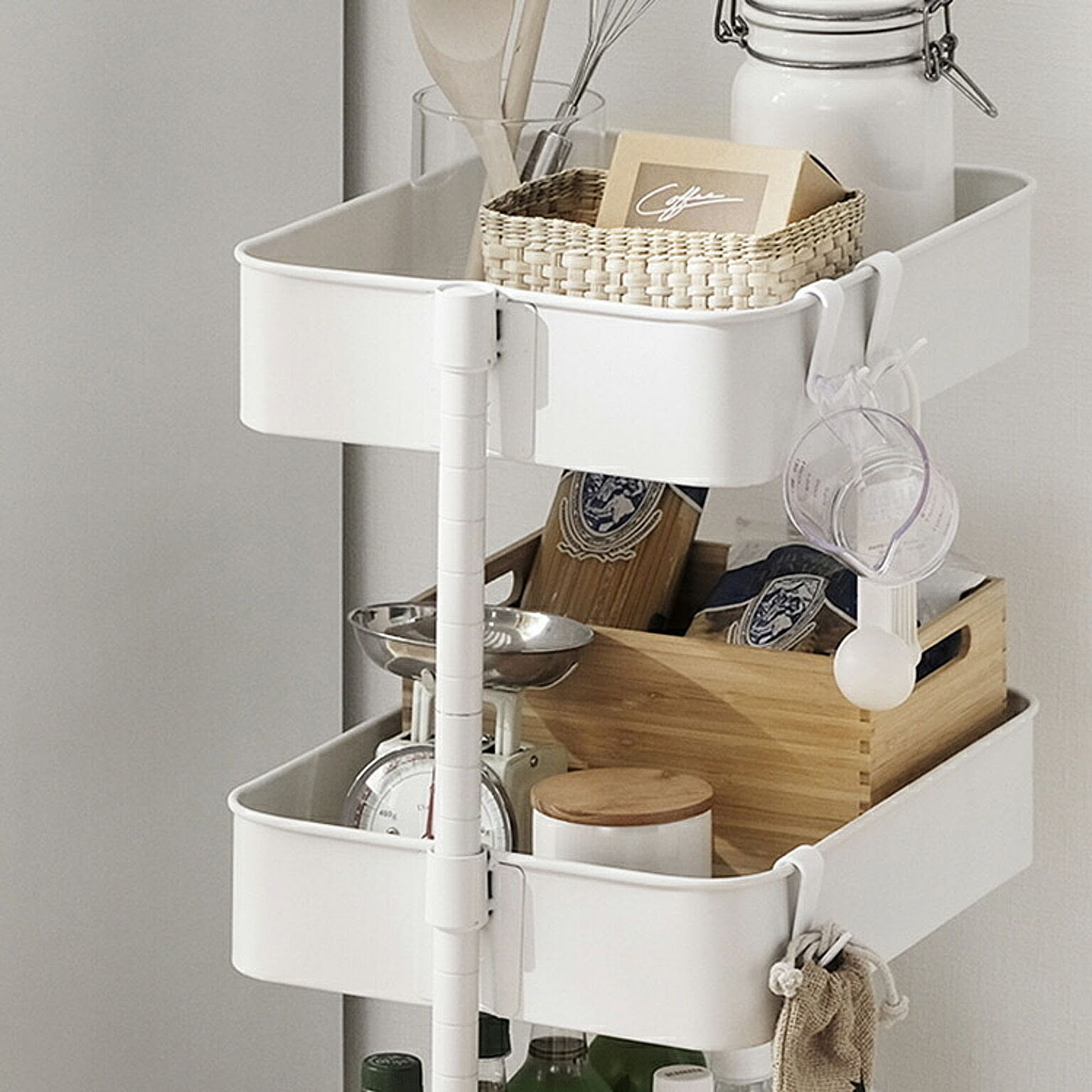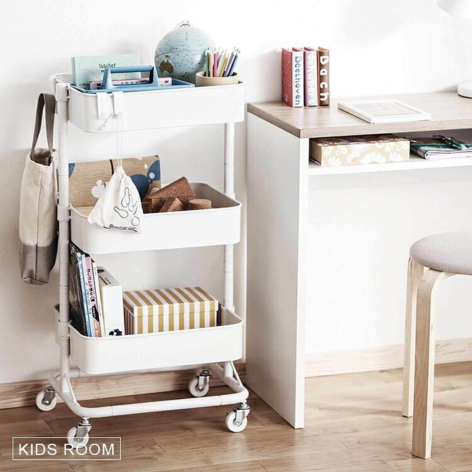様々なシーンで大活躍!アイデア次第で使い道が広がります。頑丈なスチール製で変形しにくく、しっかり支えるので安心。奥行31cmのスリムタイプ。キッチンのすき間スペースなども有効的に活用できます。移動もスムーズなキャスター付き。また収納スペースを24段階調節できるので、小物から高さのあるものまで幅広く収納できます。1段当たりの耐荷重は約20kgあるので、ボトルなどの重たい物もOKです。★お客様組立★●商品サイズ(cm)幅約42×奥行約31×高さ約80●商品重量約5.95kg●材質本体/スチール(粉体塗装)フック/ABS樹脂キャスター/ポリプロピレン、ポリ塩化ビニル、鉄●耐荷重全体/60kg、カゴ1段あたり/20kg、フック1個あたり/2kg●カラーブラック、ホワイト