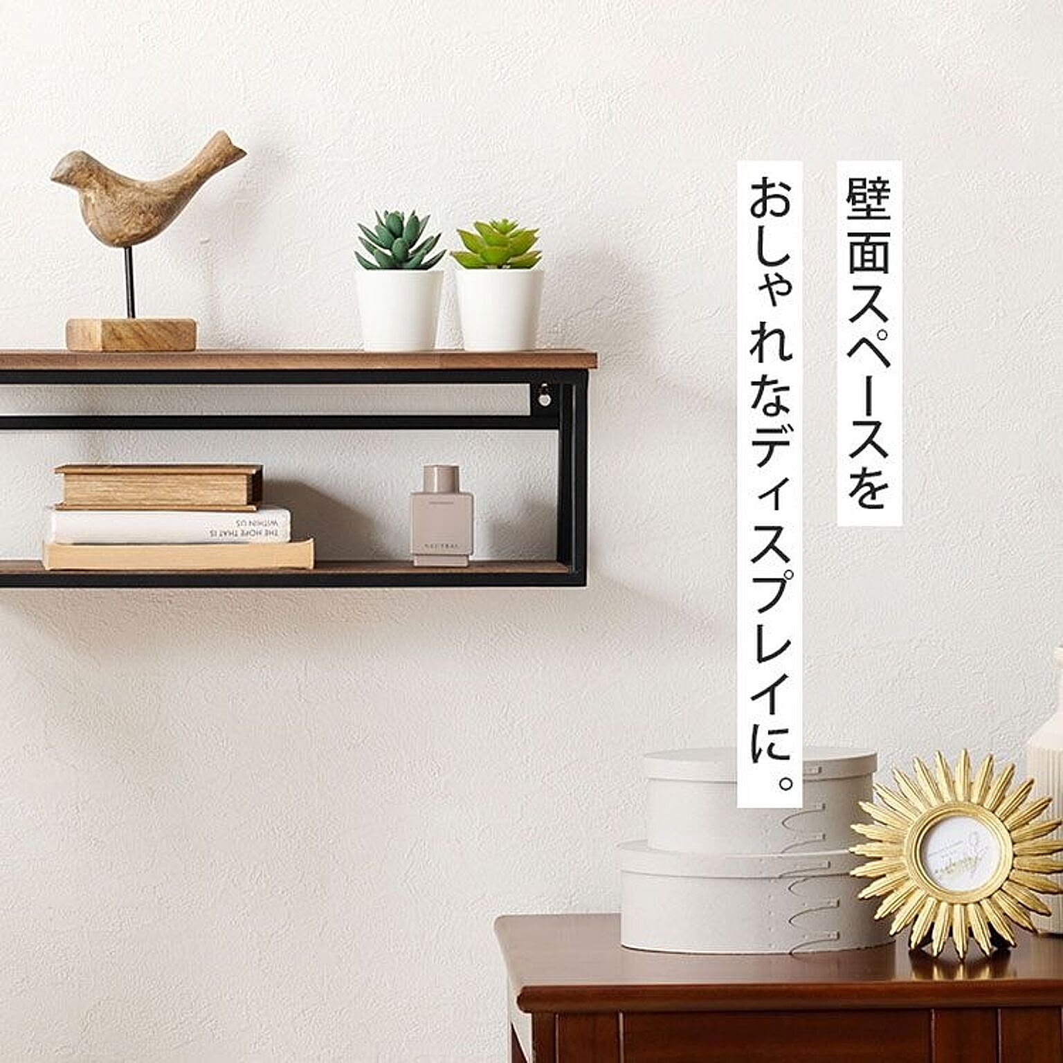 壁面スペースをオシャレなディスプレイに。天然木とアイアンフレームのウォールシェルフ。※こちらの商品はお取り寄せ商品のため、初期不良以外の返品・交換は承れませんので、あらかじめご了承ください。★完成品★●商品サイズ(cm)幅約45×奥行約15.5×高さ約16.5●商品重量約1kg●主な材質スチール・パイン集成材 ※配送不可地域:北海道・沖縄県・離島・一部山岳地帯 ※特殊地域、配送不能区域など、発送方法に関してはメーカーより確認のご連絡をさせていただきます。予めご了承ください。