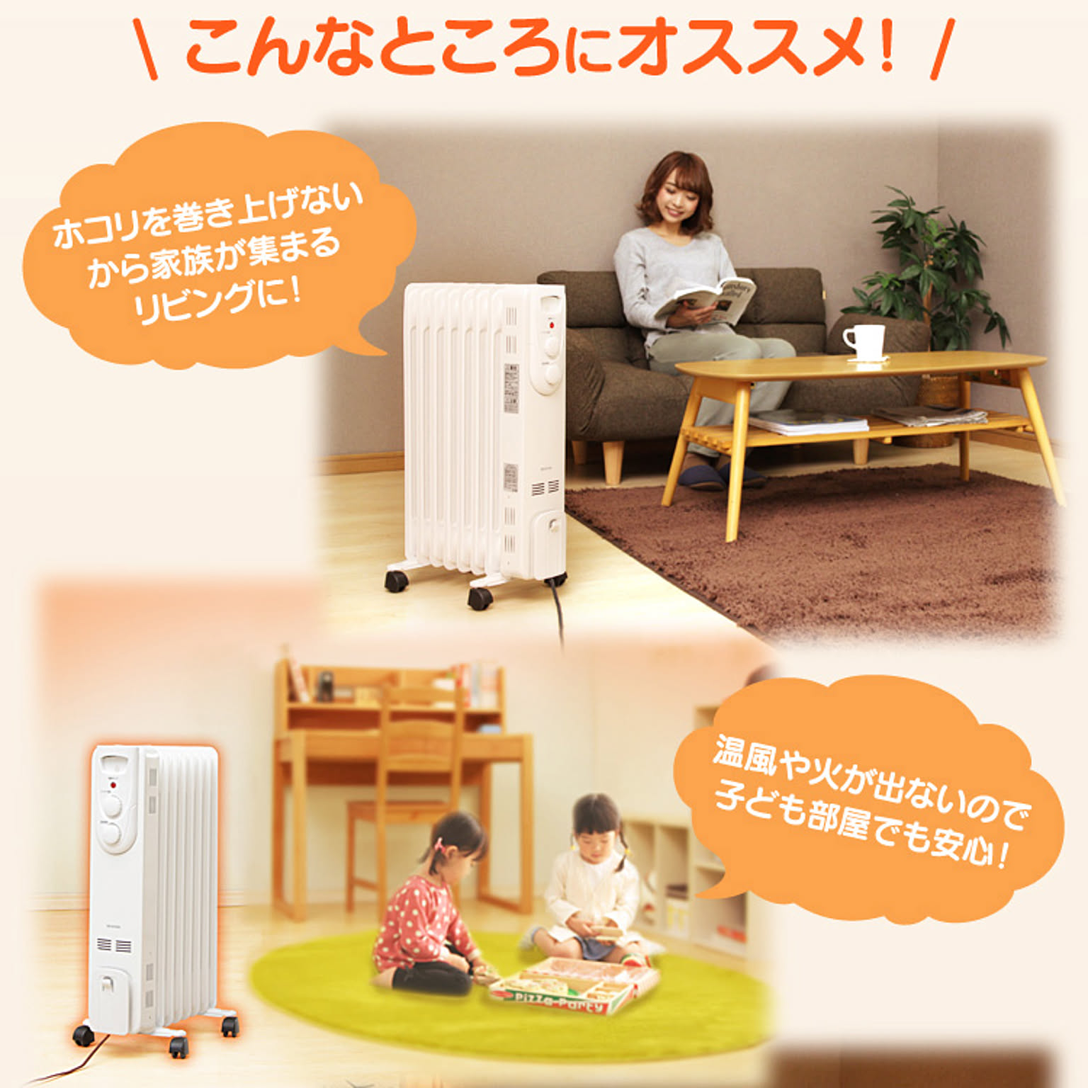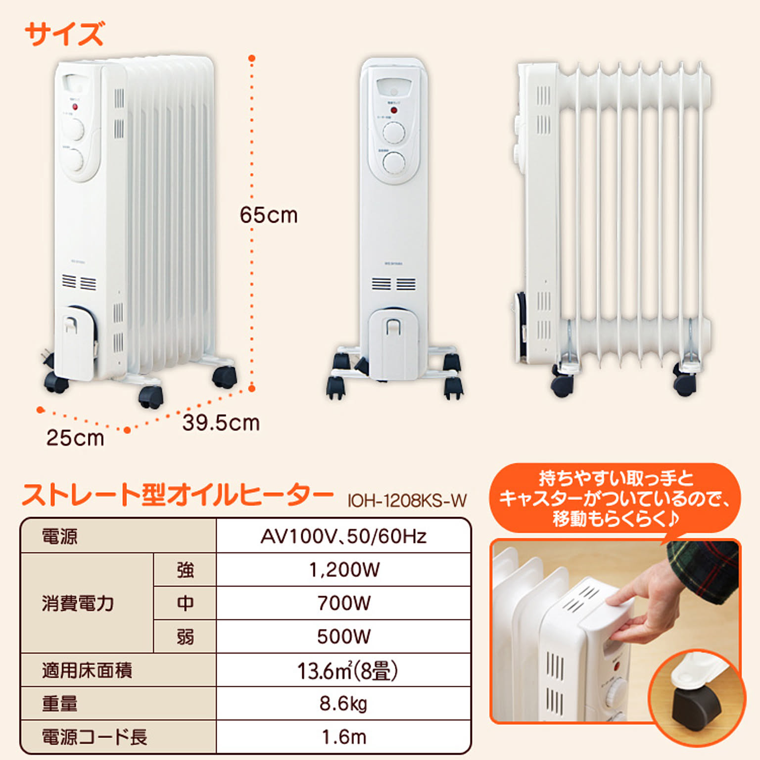 オイルヒーター ストレートフィン ホワイト IOH-1208KS-W