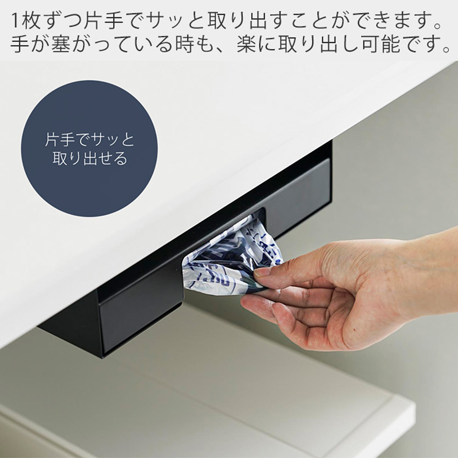 手が塞がっている時も、1枚ずつ片手でサッと取り出すことができます。