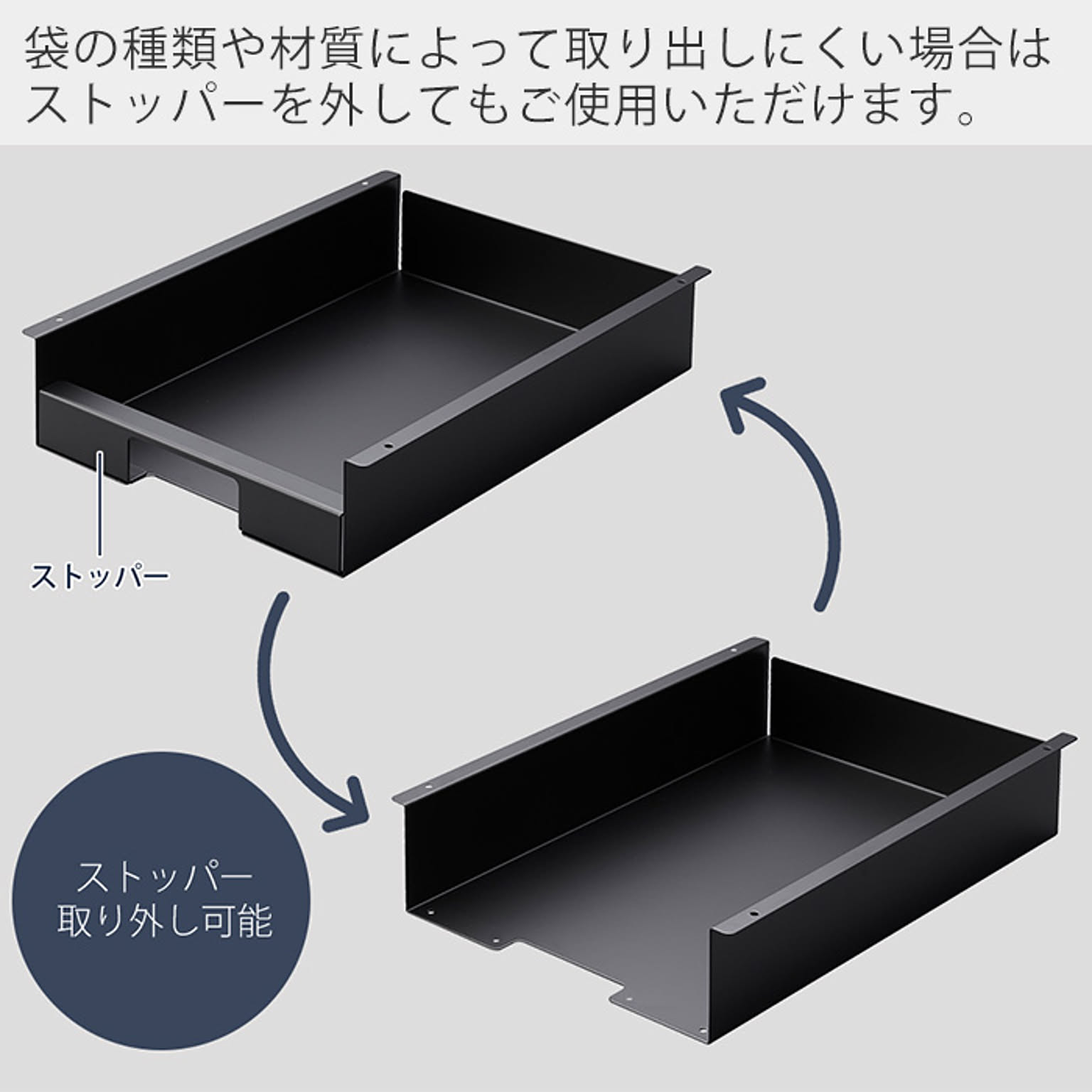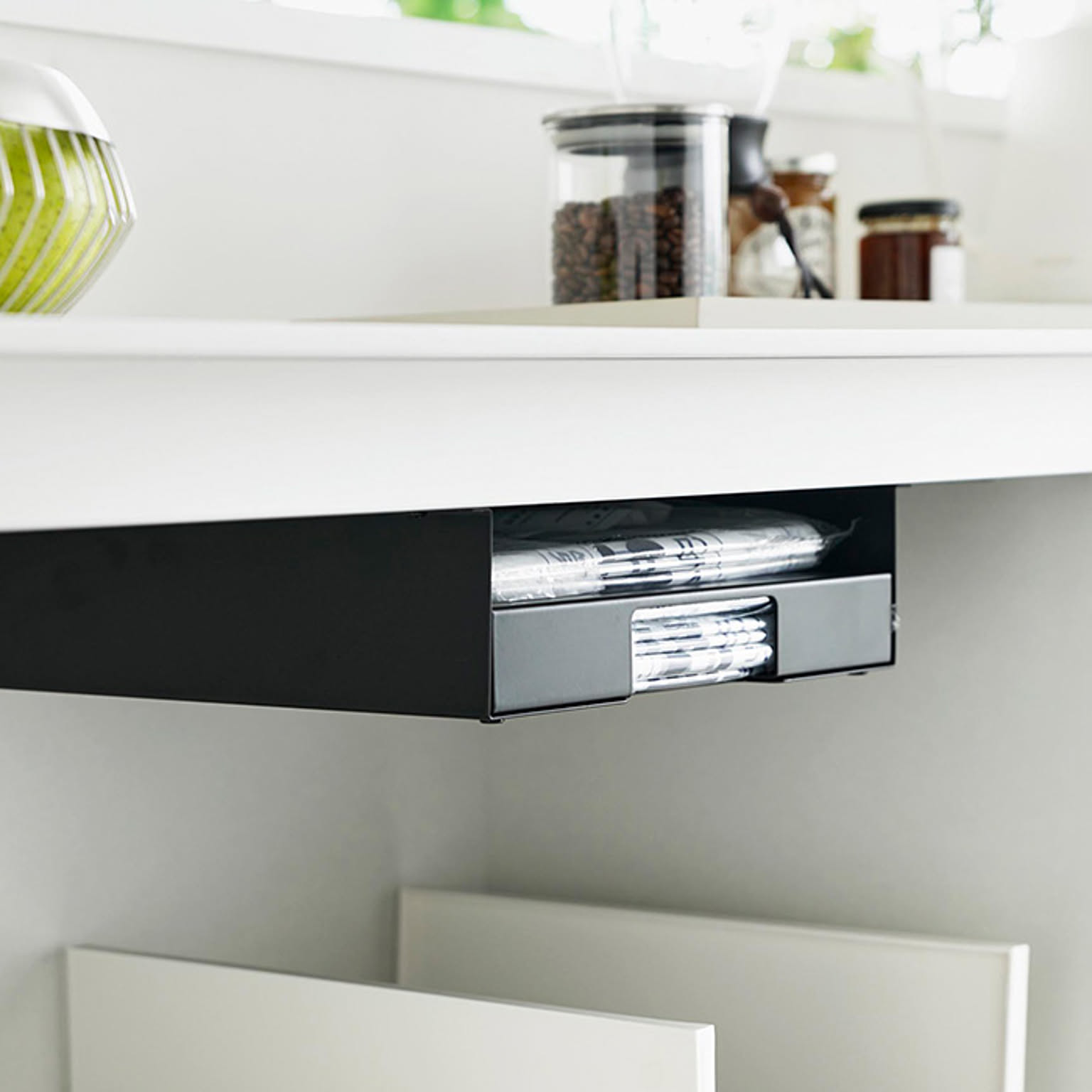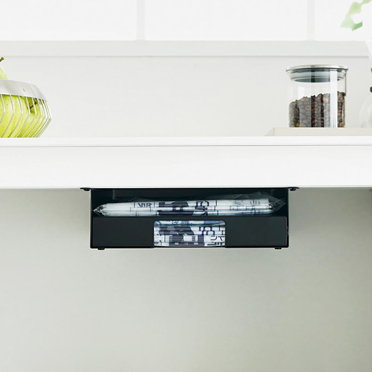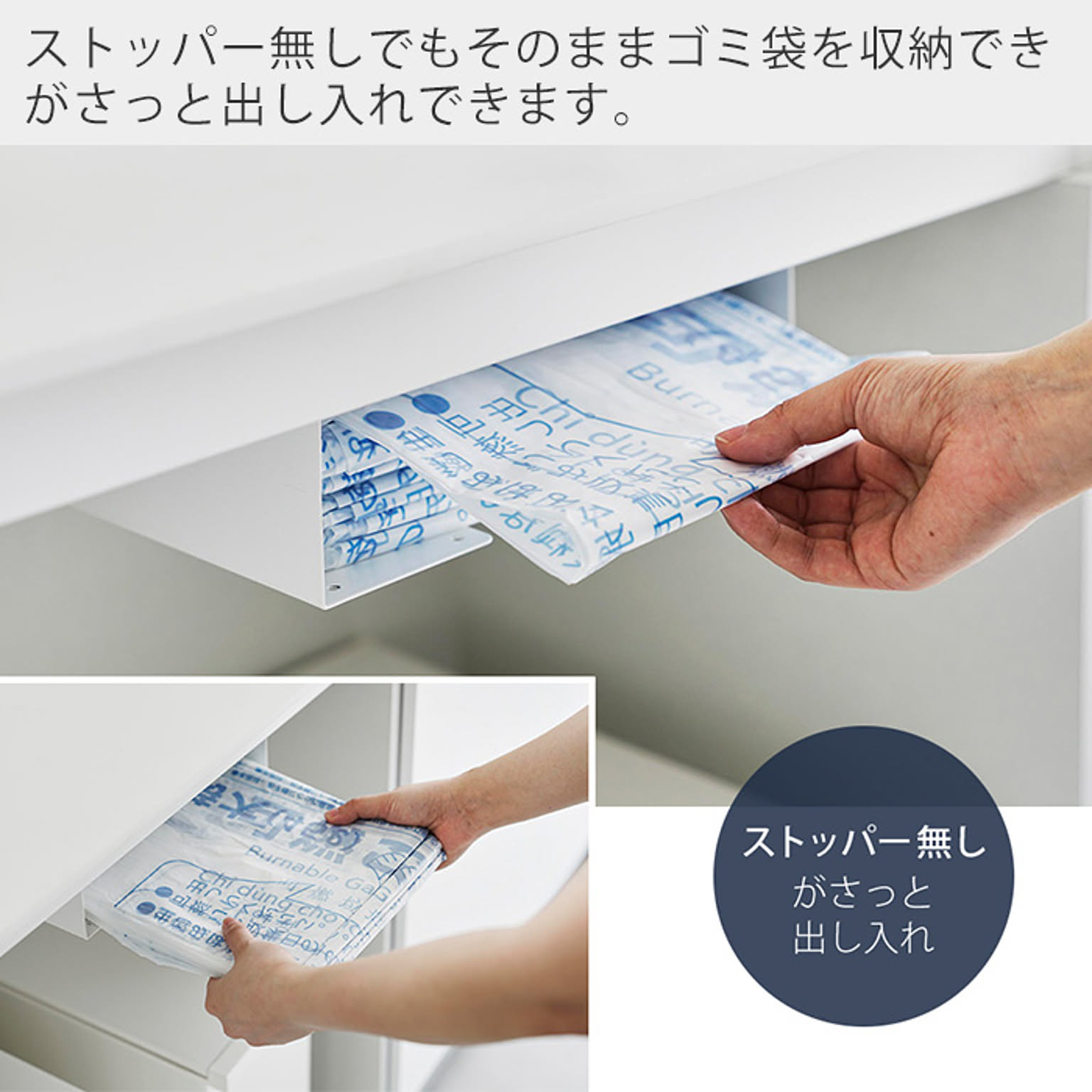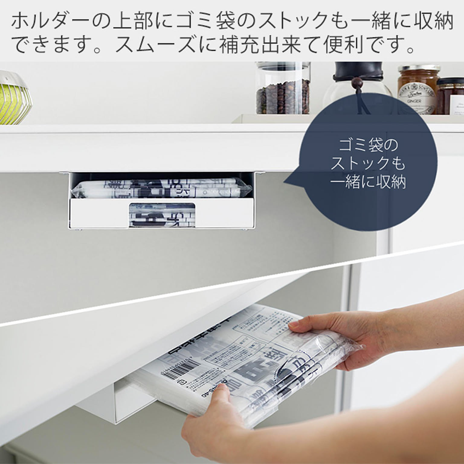 キッチン棚下 シンク下 省スペース 整理 キッチン小物 ゴミ袋ケース レジ袋 保管 ストッパー キッチン整理 コンパクト スリム 時短 白 黒 シンプル おしゃれ モノトーン 整理整頓