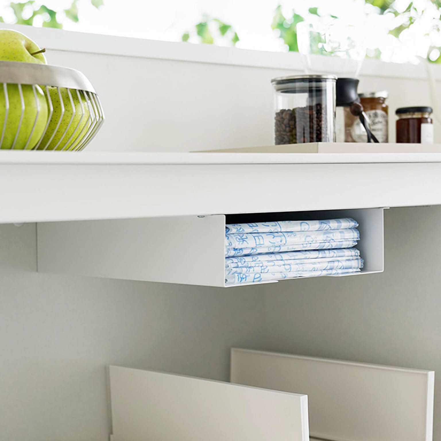 ※天板裏に幕板(脚と脚をつないでいる板)がある場合、あらかじめ袋の出し入れの際に干渉しない位置をご確認ください。