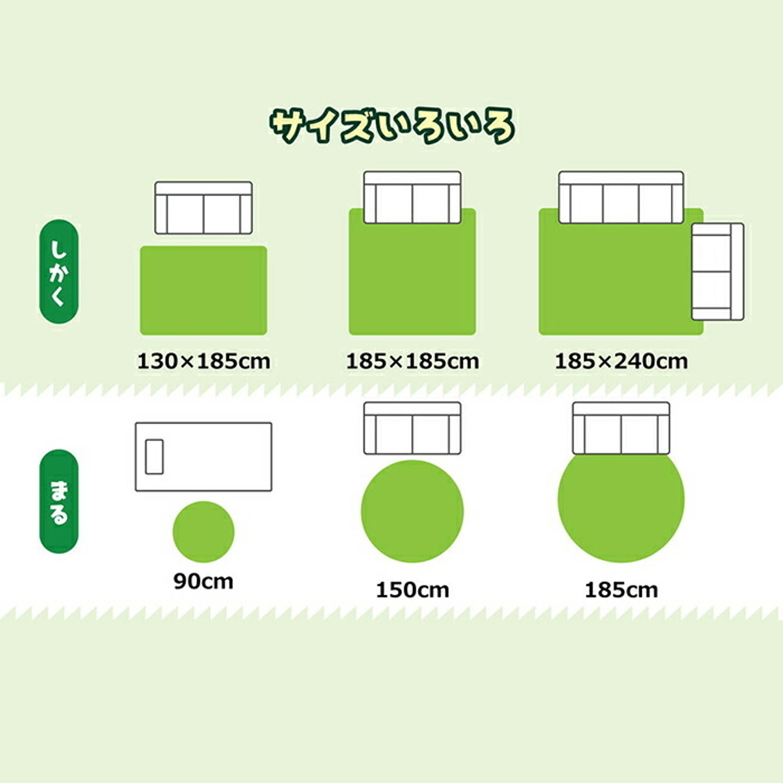室内のお部屋にいながら、アウトドア気分を味わえる芝生風ラグ。観葉植物をたくさん置いて、緑いっぱいの素敵な空間を作ったり、子供のスポーツコーナーやお父さんのゴルフスイングスペースなど、楽しい使い方がいっぱい。中には約10mmのウレタン入りでふっくら。おもわず寝転びたくなるような気持ちよさは、くつろぎスペースにぴったり。裏面は滑り止め加工付き。お子さまやペットが走り回ってもズレにくく安心です。
