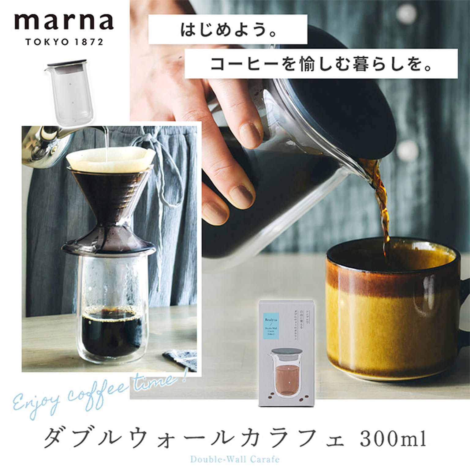 marna マーナ ダブルウォールカラフェ 300ml ピッチャー コーヒーサーバー 耐熱ガラス 冷水筒 二重構造 コーヒー器具 食洗器対応 レンジ対応 K793