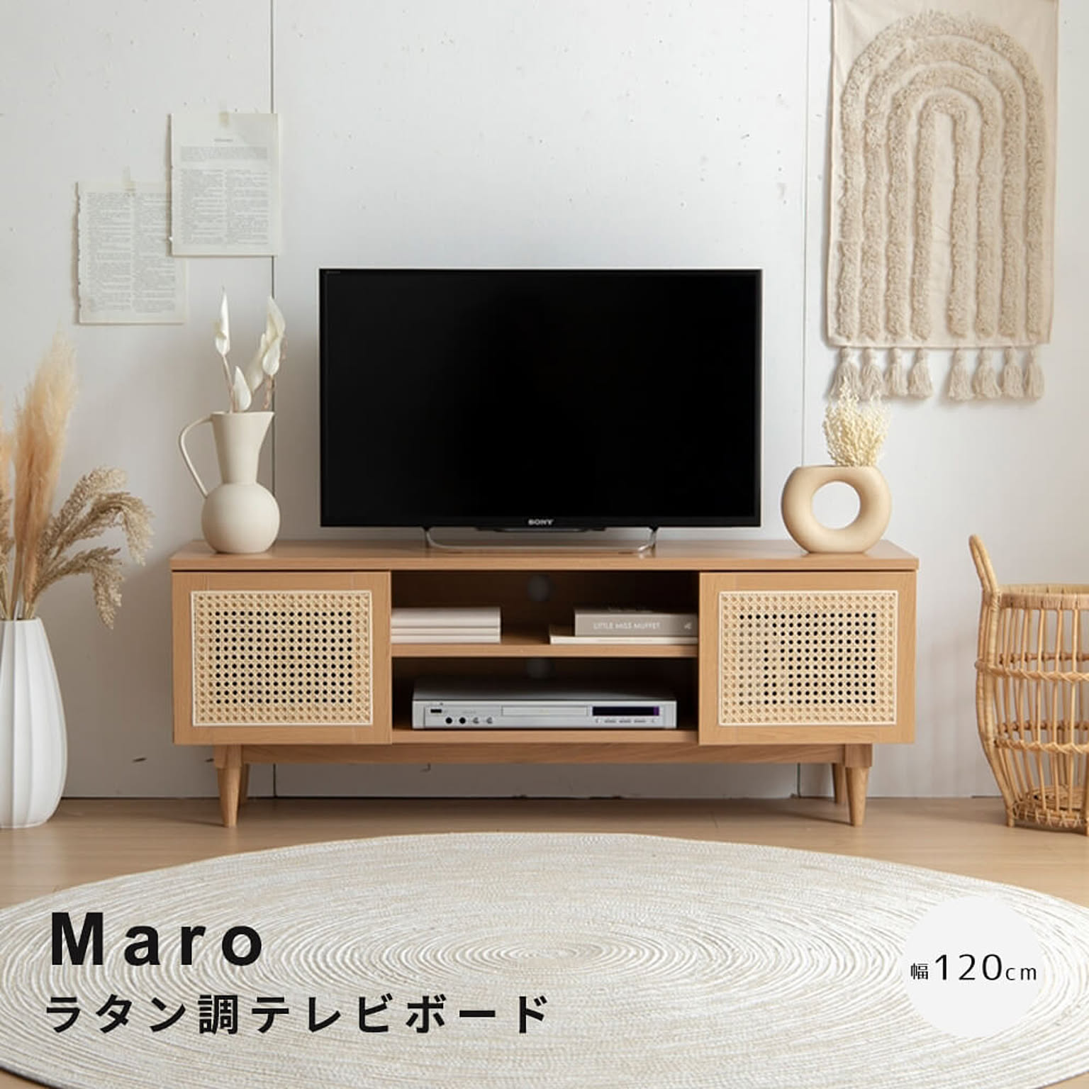 自然と調和する美しいデザイン。天然ラタンと美しい木目調のエオータイプのテレビボードMaro(マーロ)。