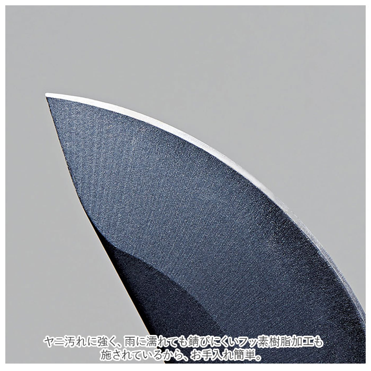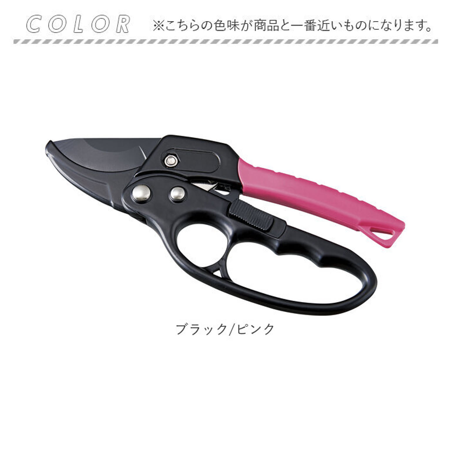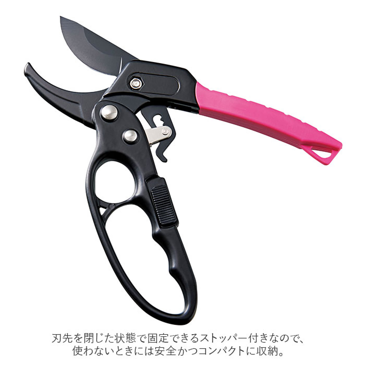 ・枝から指先を守る握りやすいハンドルガードと、滑りにくいグリップ形状で、女性の小さな力でも剪定作業が楽ちん。