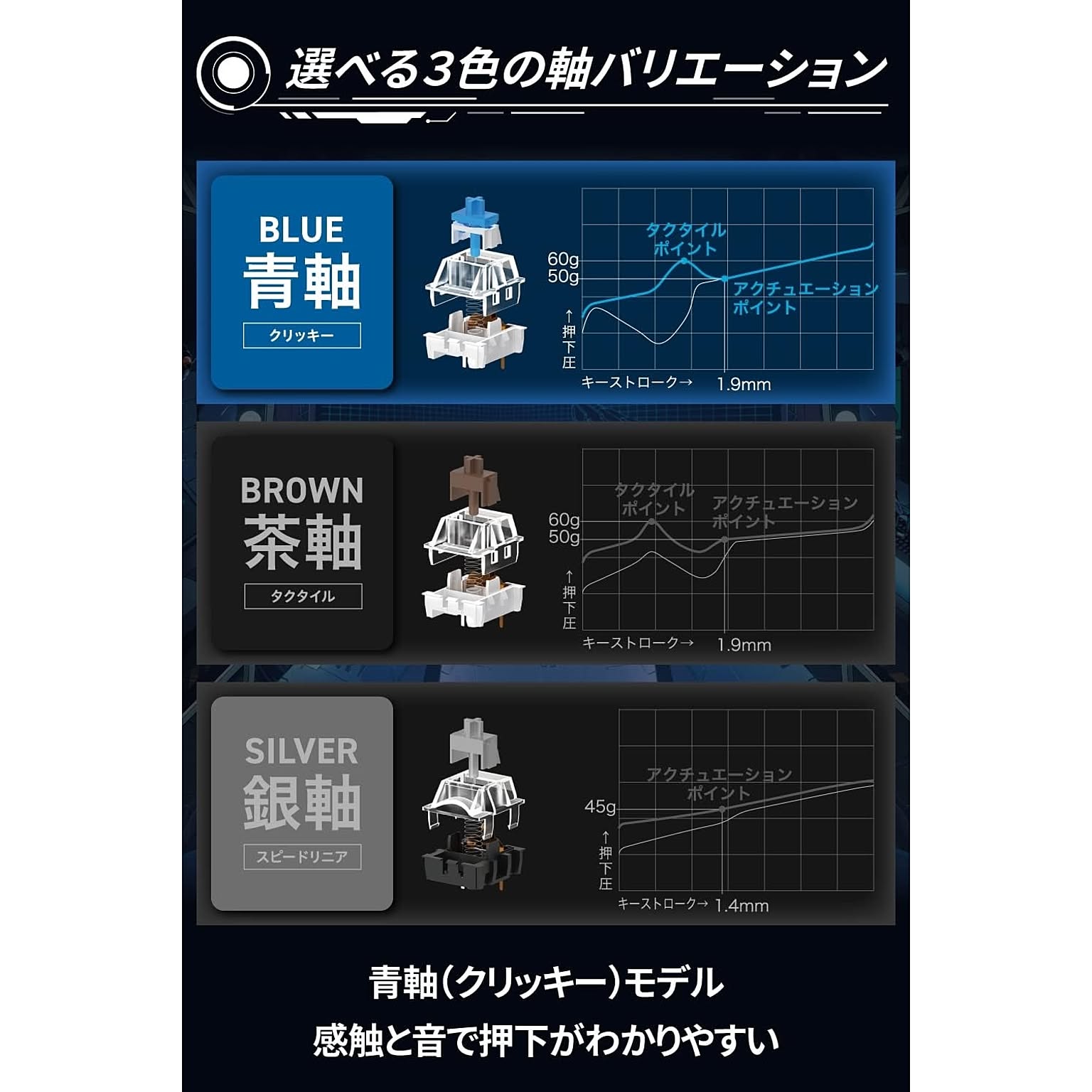 ■ キータイプ:メカニカル(青軸/クリッキー)