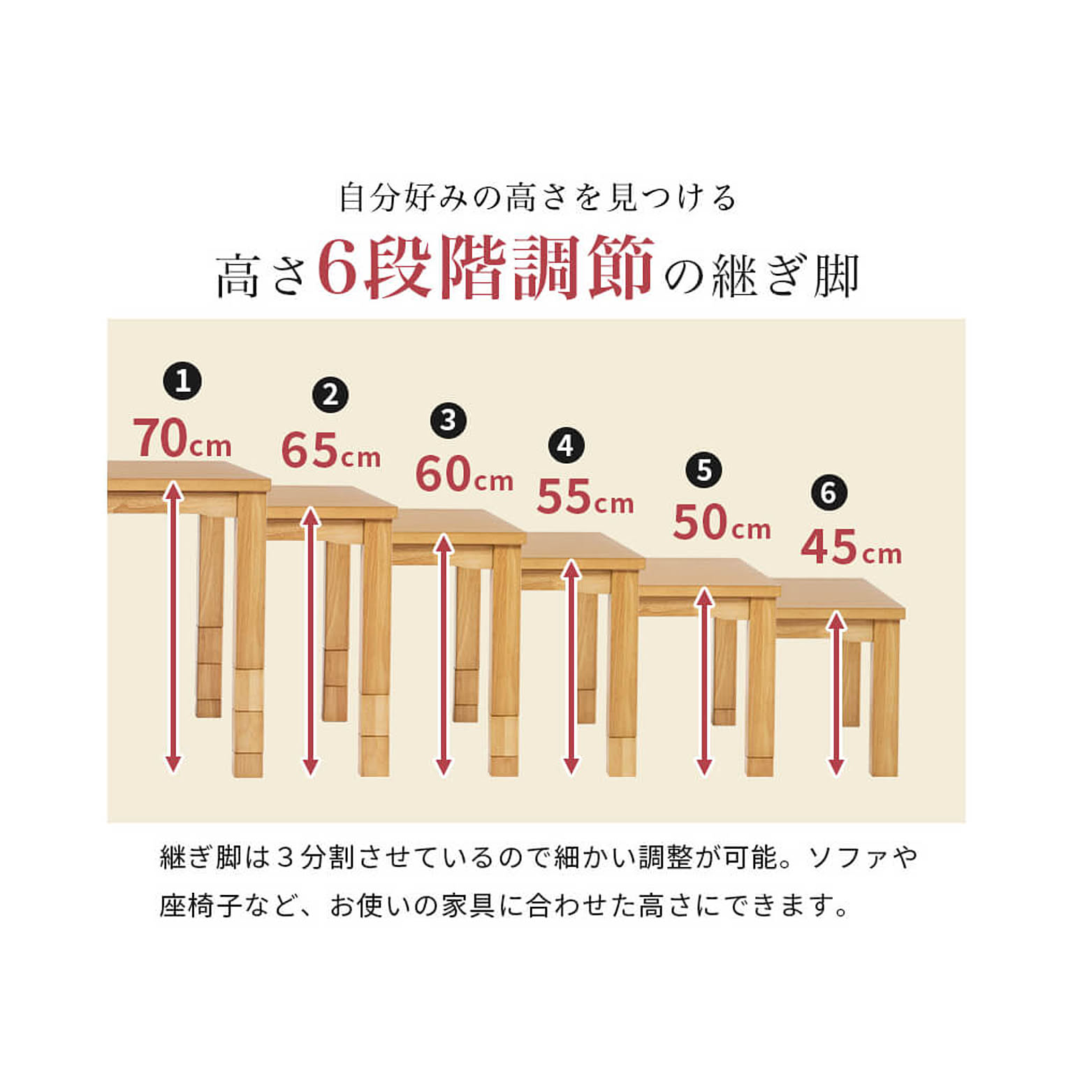 ダイニングコタツ・ふとん・チェア6点セット【150cm】は、ライフスタイルの変化に合わせて、テーブルの高さを6段階に調節できるのが特徴です。通年使えるダイニングこたつとして、冷暖房よりも省エネな速暖ハロゲンヒーターを搭載しています。手元で電源の入切ができ、温度管理も簡単に行えるので、便利です。