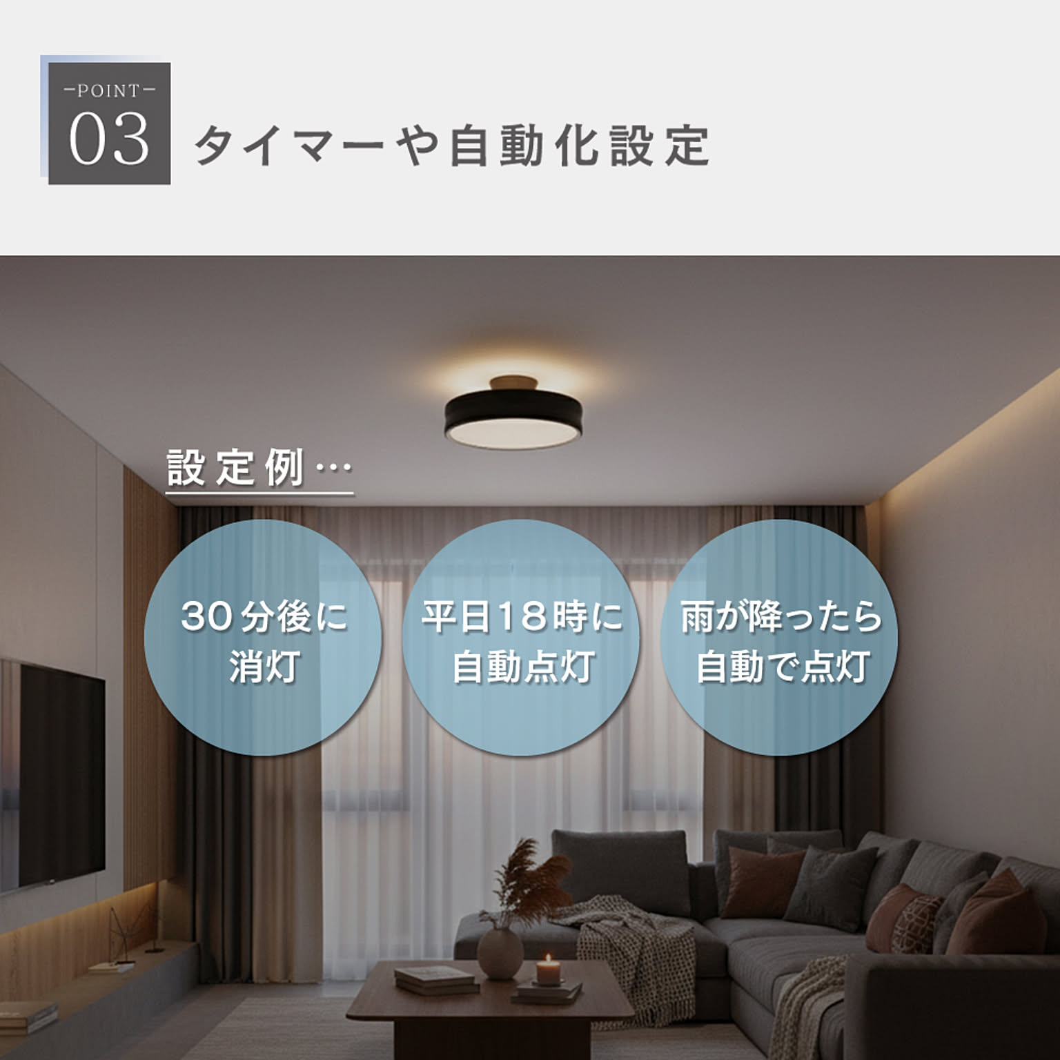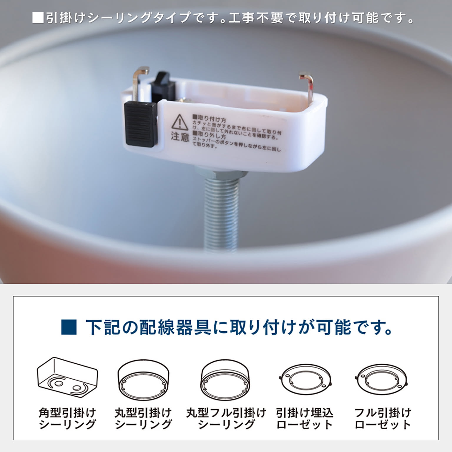 | 備考 | ※壁スイッチなどからのオンオフ操作も可能ではありますが、デバイスがリセット状態に戻る(点滅状態になる)ことがございますので、壁スイッチでの操作はなるべくお控えください。 ※この製品・アプリは日本国内専用です。海外ではご使用になれません。 ※交流100V、周波数50/60Hz以外での電源では使用しないでください。 ※引掛けシーリング専用ですが、別売りのダクトレール変換プラグを使用すれば、ダクトレールにも取り付け可能です。 ※調光器スイッチには使用しないでください。 ※LEDですが点灯中や消灯直後は器具が高温になります。触らないようにご注意ください。 ※付属のリモコンは、製造年が2024年以前の旧タイプにはご使用いただけません。 ※製品の設置に関わる工事費、点灯の不具合に伴い発生する費用、二次的損害(設置納期遅延、施工費、人件費、業務に支障が生じた際の損失等)など一切の責任を負いかねますので予めご了承ください。 その他取扱説明書をよくお読みの上ご使用ください。 |