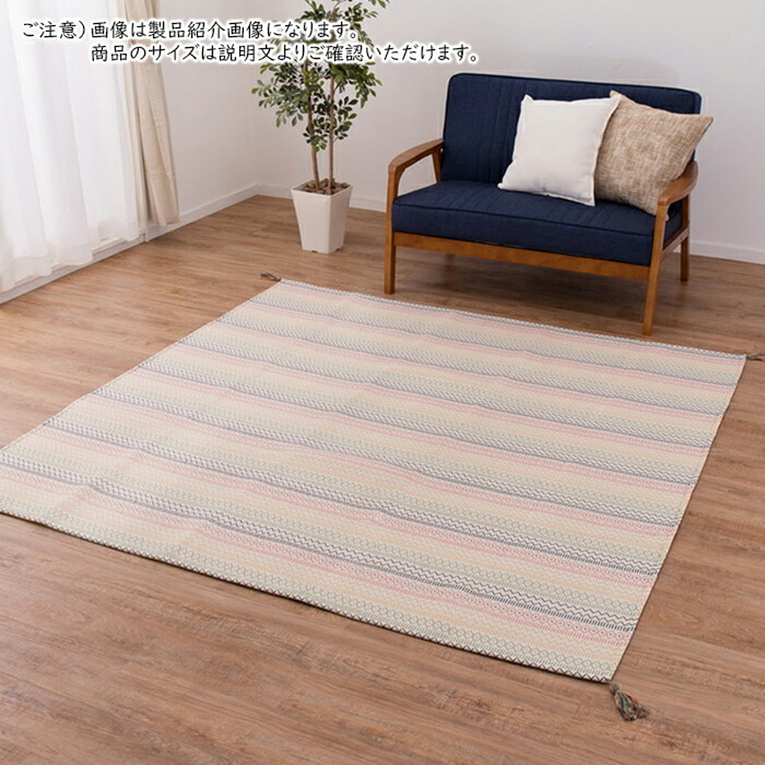 さらっとした触り心地とインド綿ならではの素朴な風合いが魅力のラグ。かわいいマルチカラーでお部屋がパッと明るい印象に。天然素材で肌にやさしく、通気性がよく保温性にも優れたインド綿は、オールシーズン快適にお使いいただけます。裏面には滑り止めが付いているのでズレにくく、洗濯機で丸洗いOKだから汚れても安心。お子さまやペットと暮らすご家庭にもおすすめです。