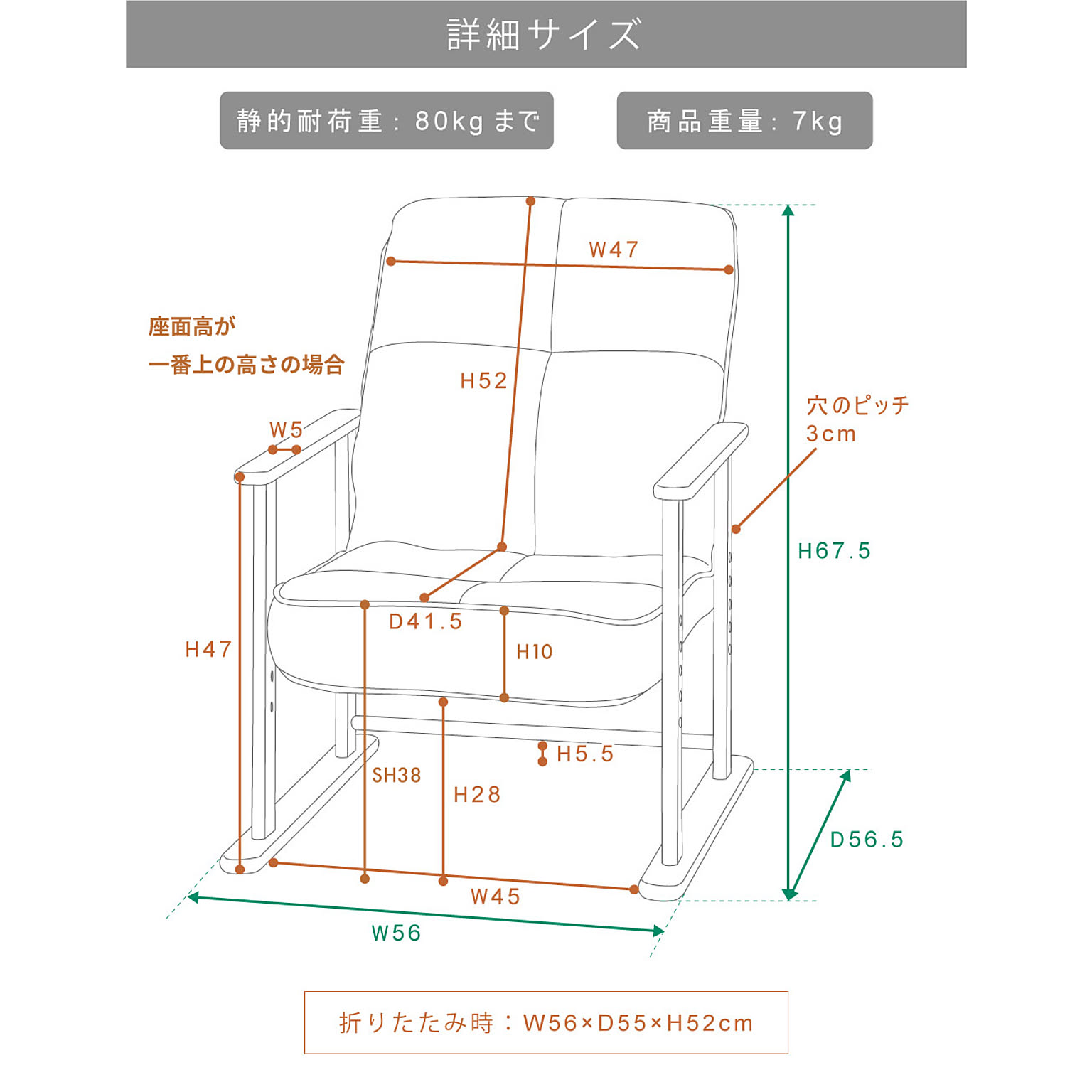 高座椅子 高齢者 リクライニング リラックスチェア おしゃれ 安い 高さ調節 肘掛付き 脚付き チェア イス 椅子 和風 和室 一人用