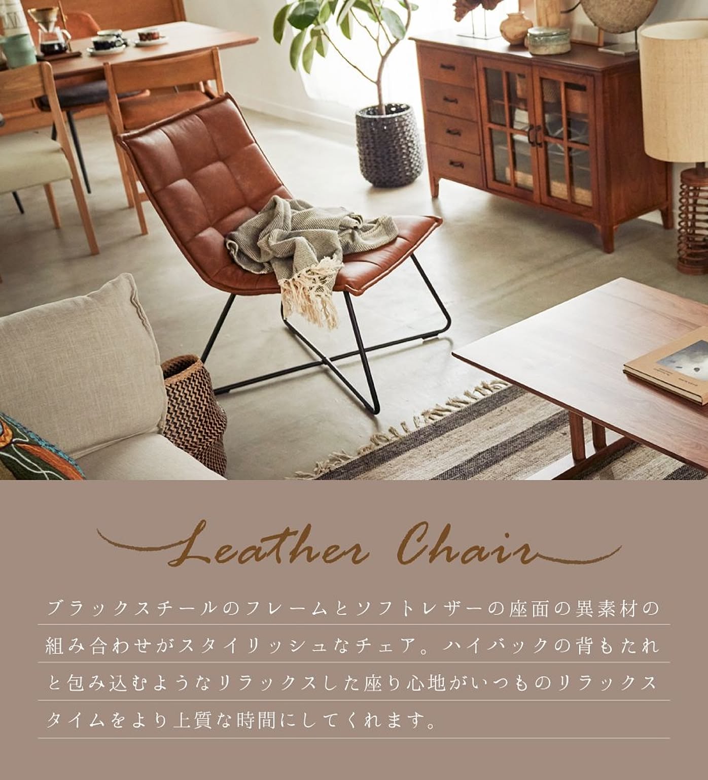 ●Leather Chair ブラックスチールのフレームとソフトレザーの座面の異素材の組み合わせがスタイリッシュなチェア。 ハイバックの背もたれと包み込むようなリラックスした座り心地がいつものリラックスタイムをより上質な時間にしてくれます。 【検索キーワード】 レザーチェア パーソナルチェア チェア 椅子 いす ソフトレザー ヴィンテージ ブラックスチール スタイリッシュ ブラウン ブラック ハイバック リラックス