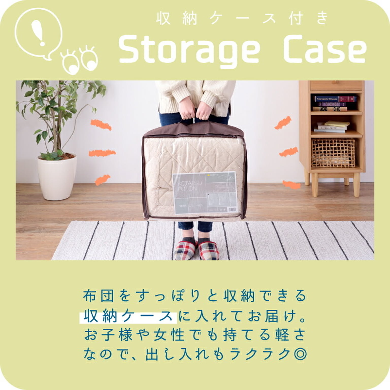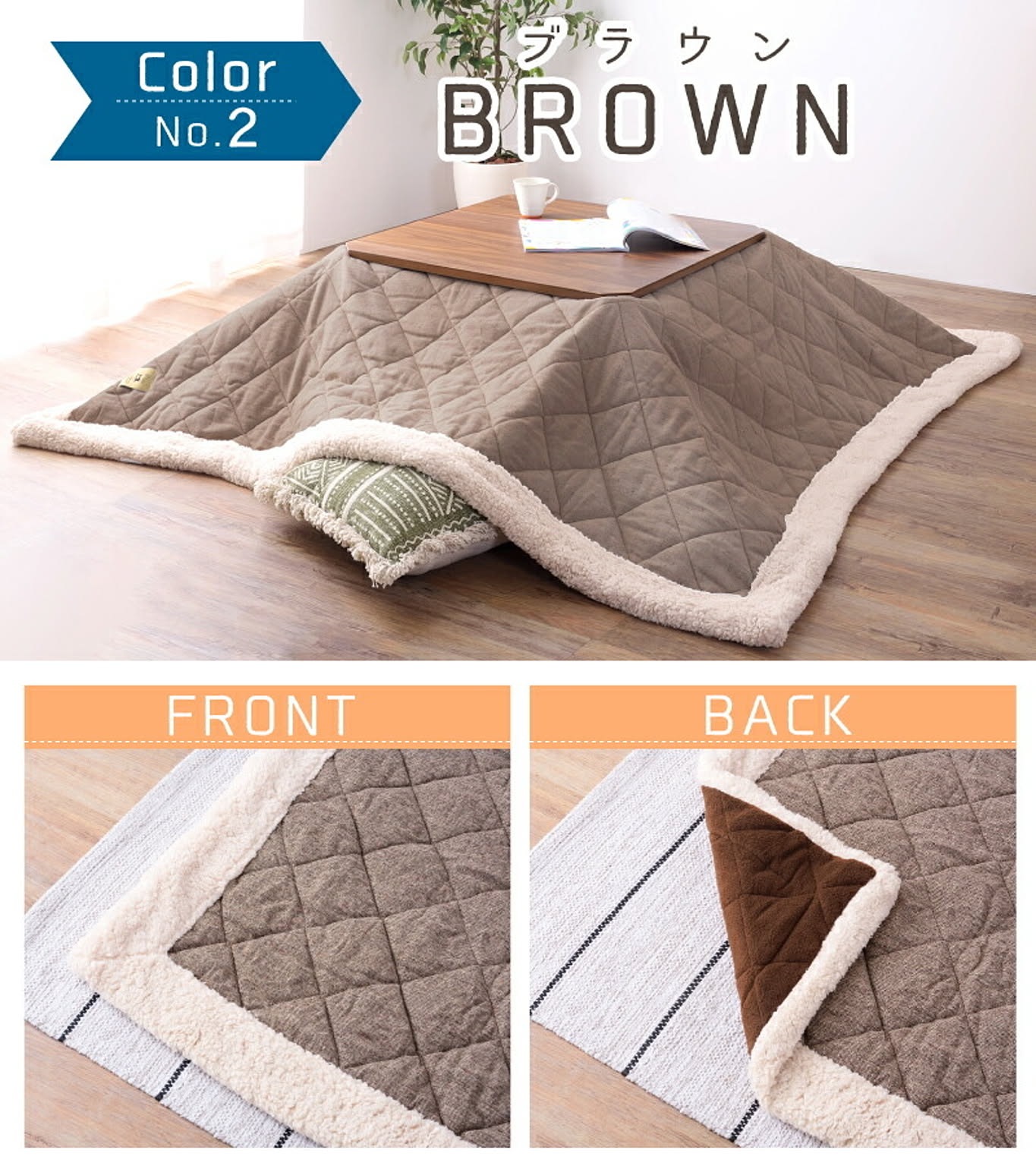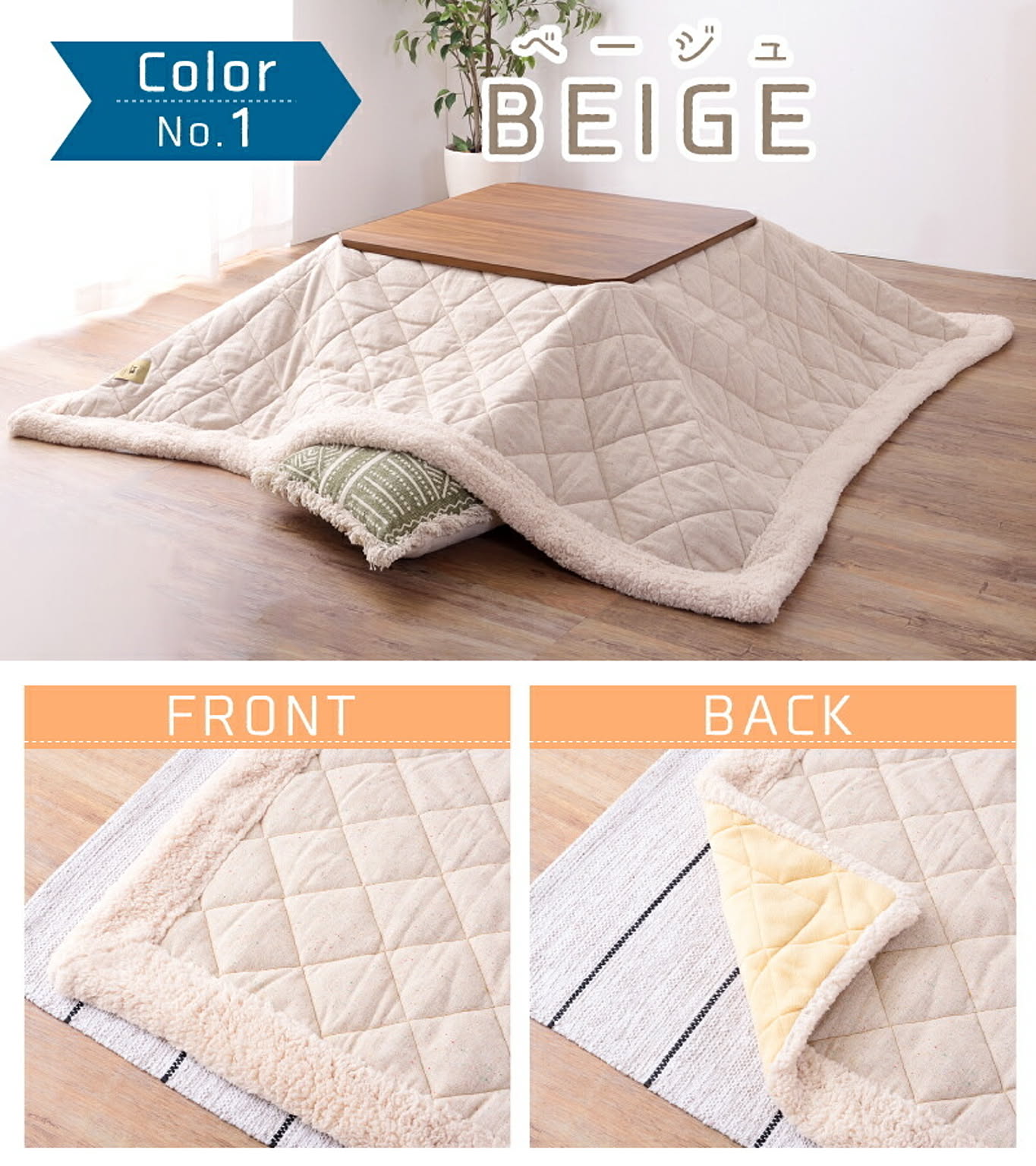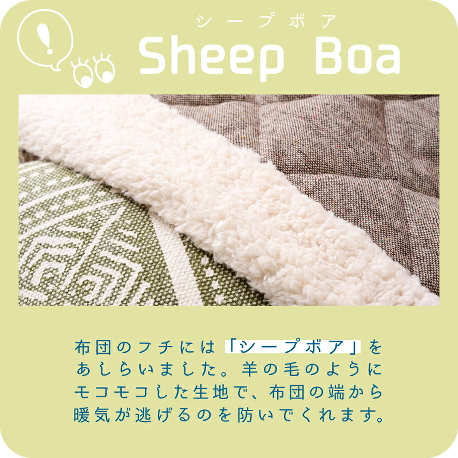 ●ナチュラルかわいい こたつ掛け布団 正方形タイプの80×80cm薄掛けタイプこたつ布団です。 カラーは、ナチュラルテイストにぴったりな「ベージュ」「ブラウン」の2色をご用意しました。 ●シープボアであったかキープ 布団のフチにはシープボアをあしらいました。 羊の毛のようにモコモコした生地で、布団の端から暖気が逃げるのを防いでくれます。 ●収納ケース付き 布団をすっぽり収納できる収納ケースに入れてお届けします。 お子様や女性でも持てる軽さなので、出し入れラクラク◎