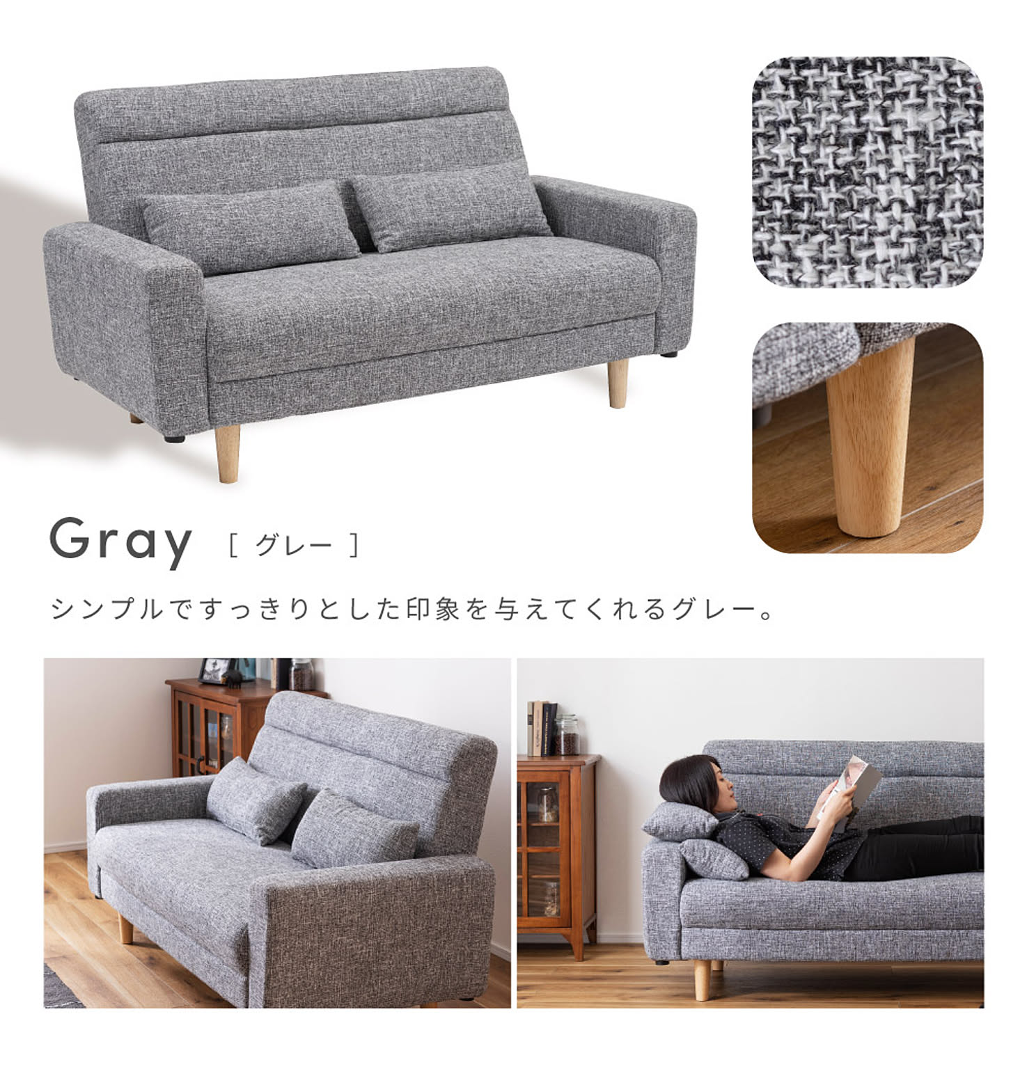 座面や背もたれのサイズは、くつろぐのに丁度いいサイズ設計となっています。場所を取らずともゆったり座れるサイズ感を目指しました。