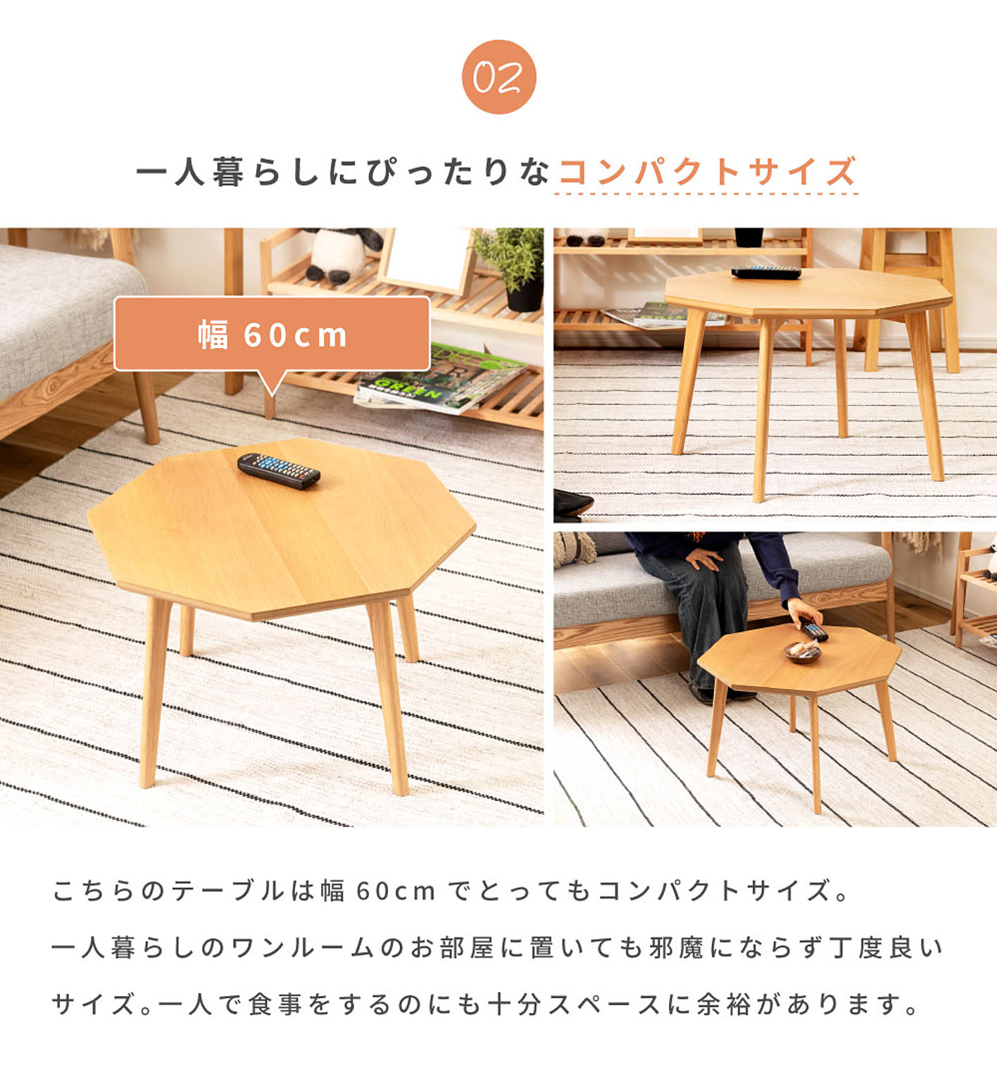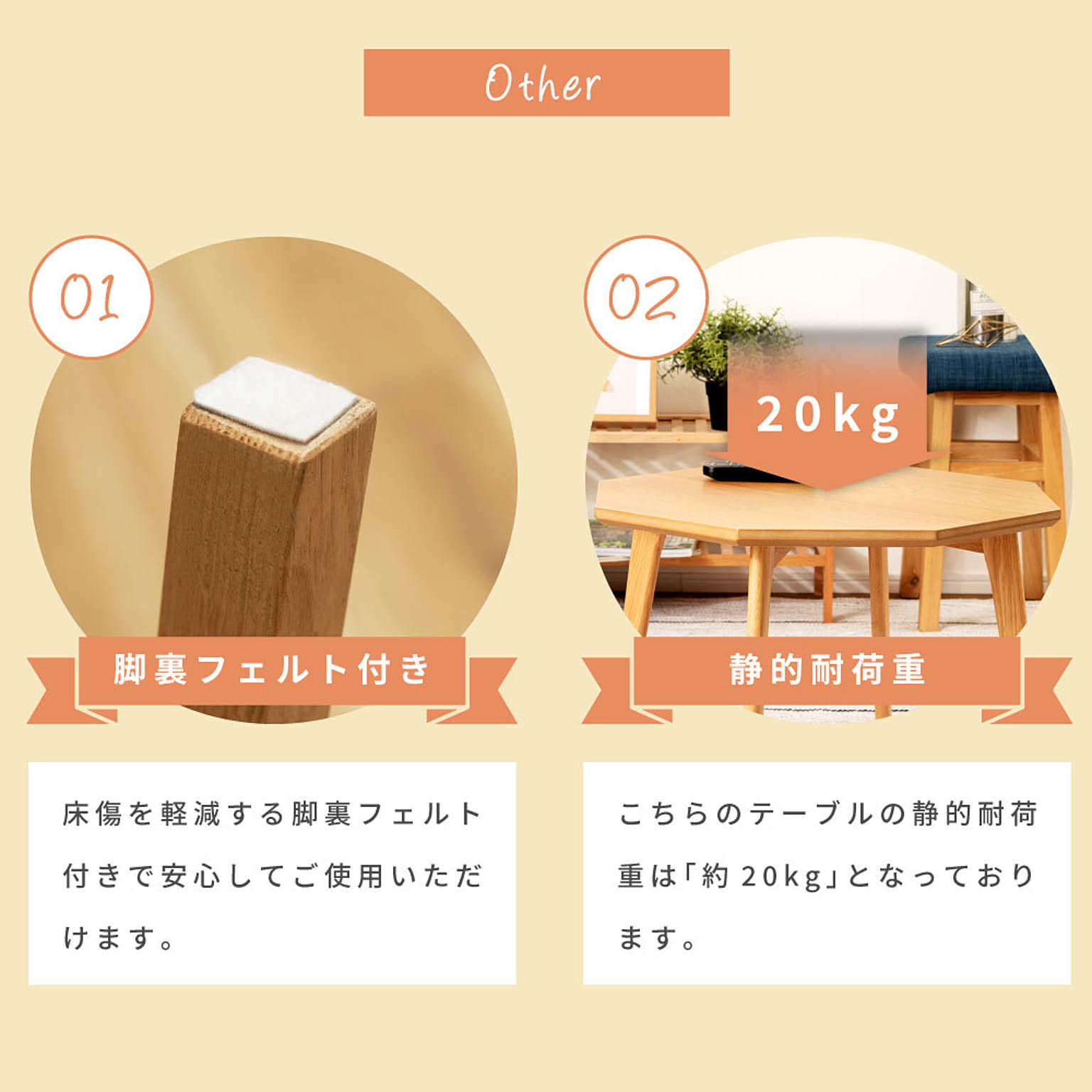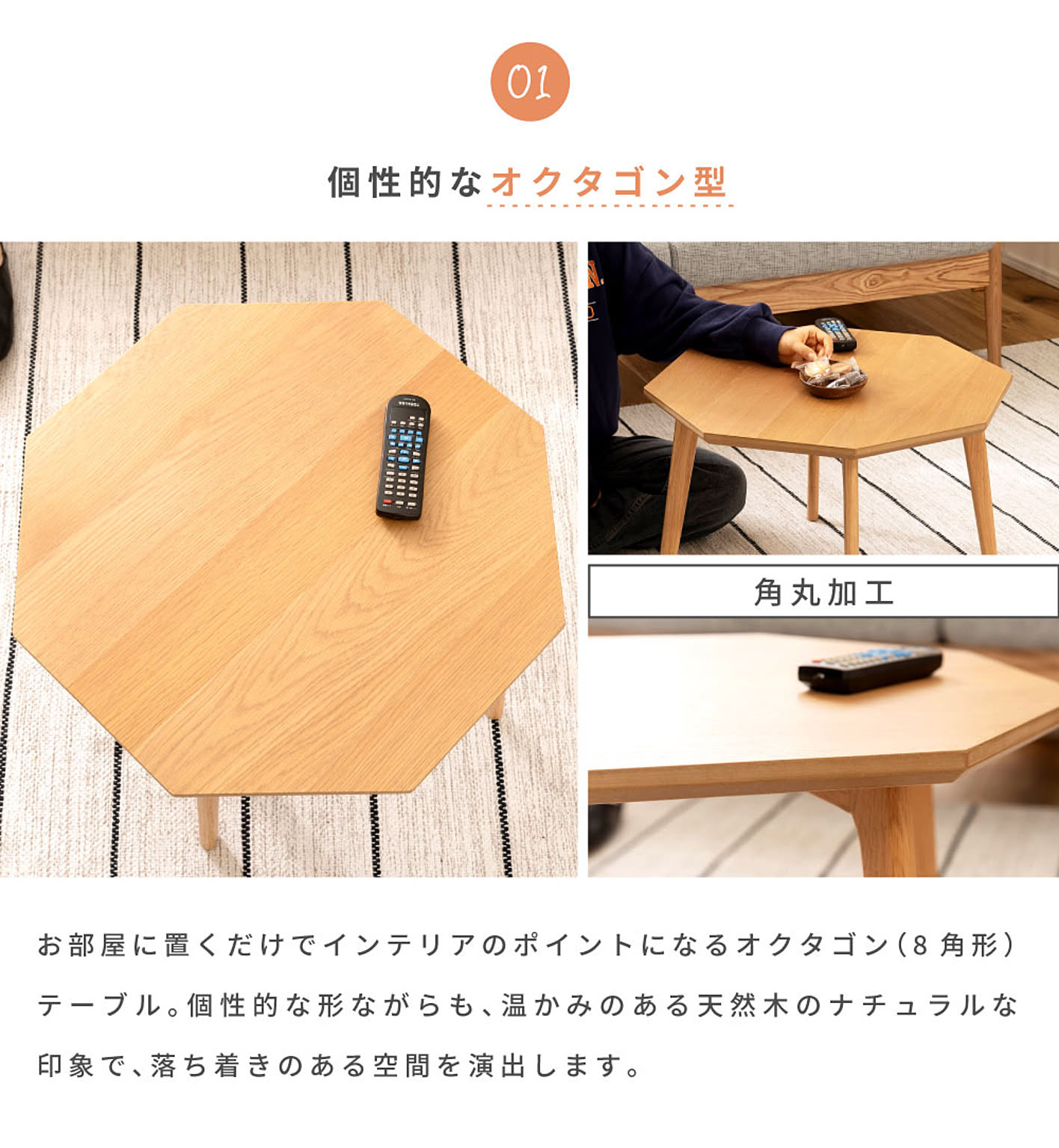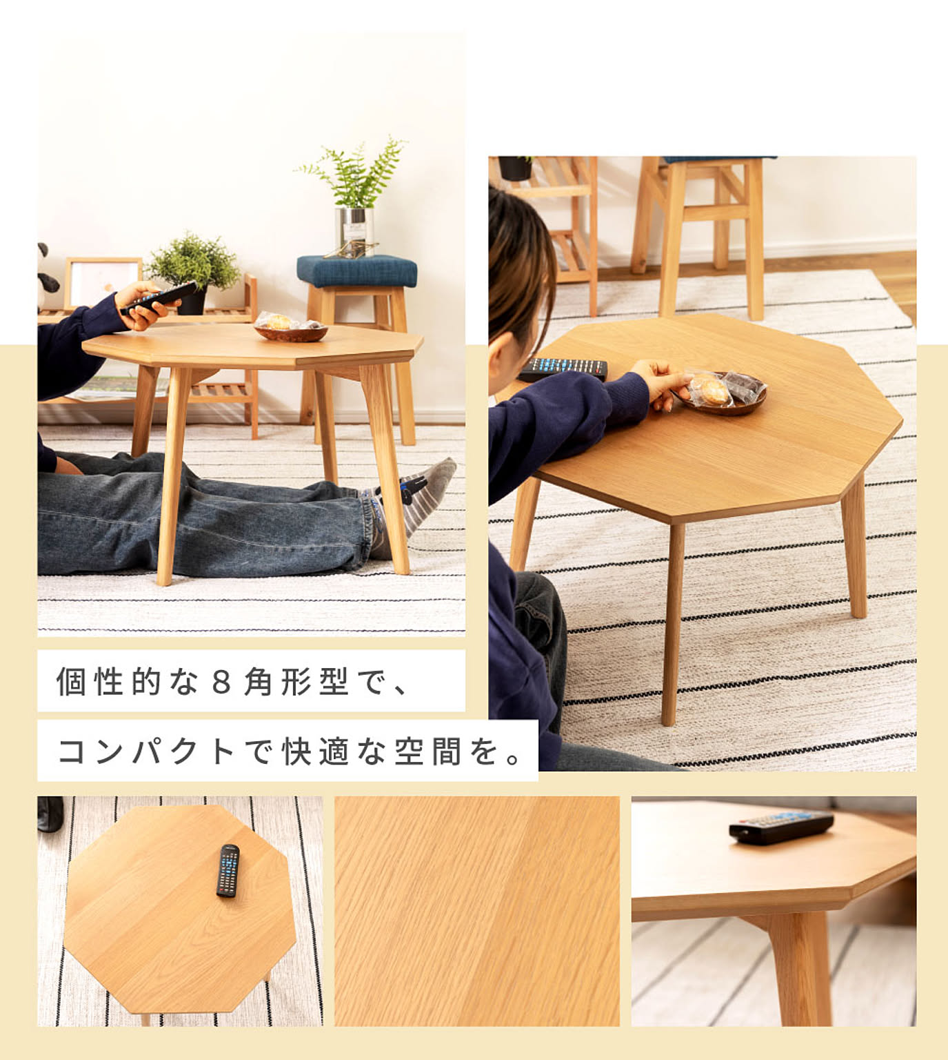 お部屋に置くだけでインテリアのポイントになるオクタゴン(8角形)テーブル。