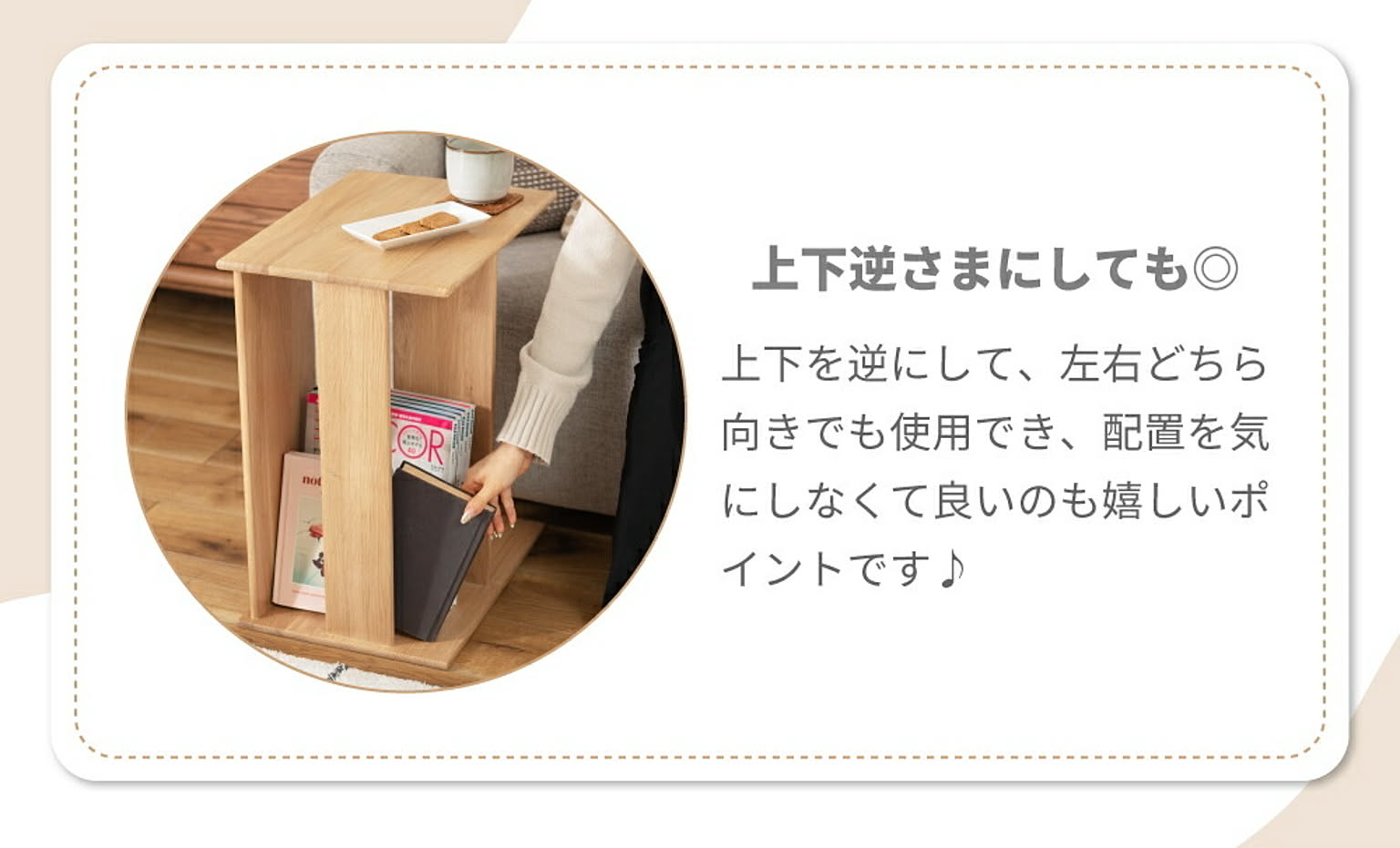 ソファの横に設置すれば丁度良い高さのサイドテーブルになります。