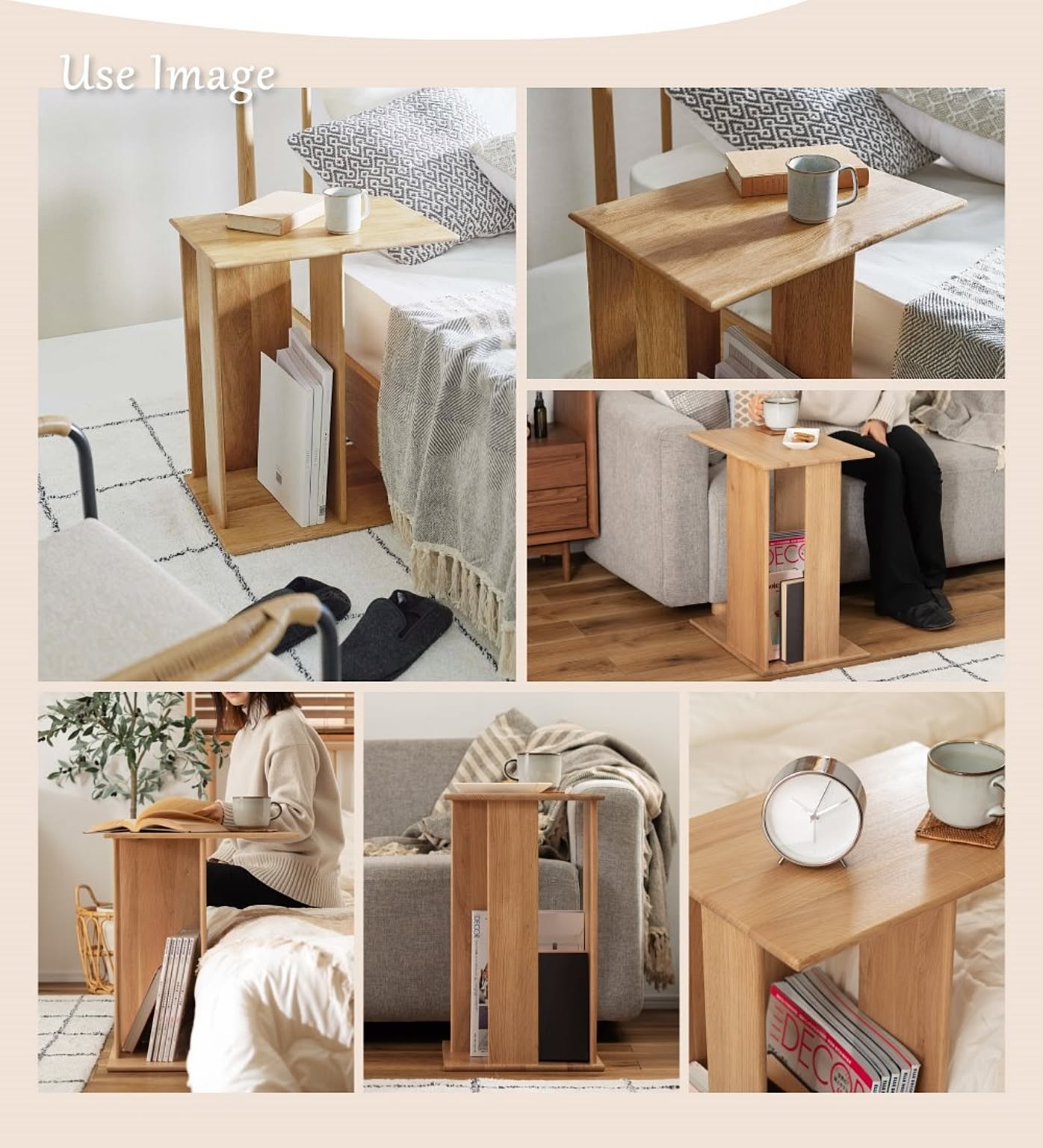 ベッドと合わせてナイトテーブルとして活用すれば、本や目覚まし時計、マグカップなどを手近にそろえて置くことができます。