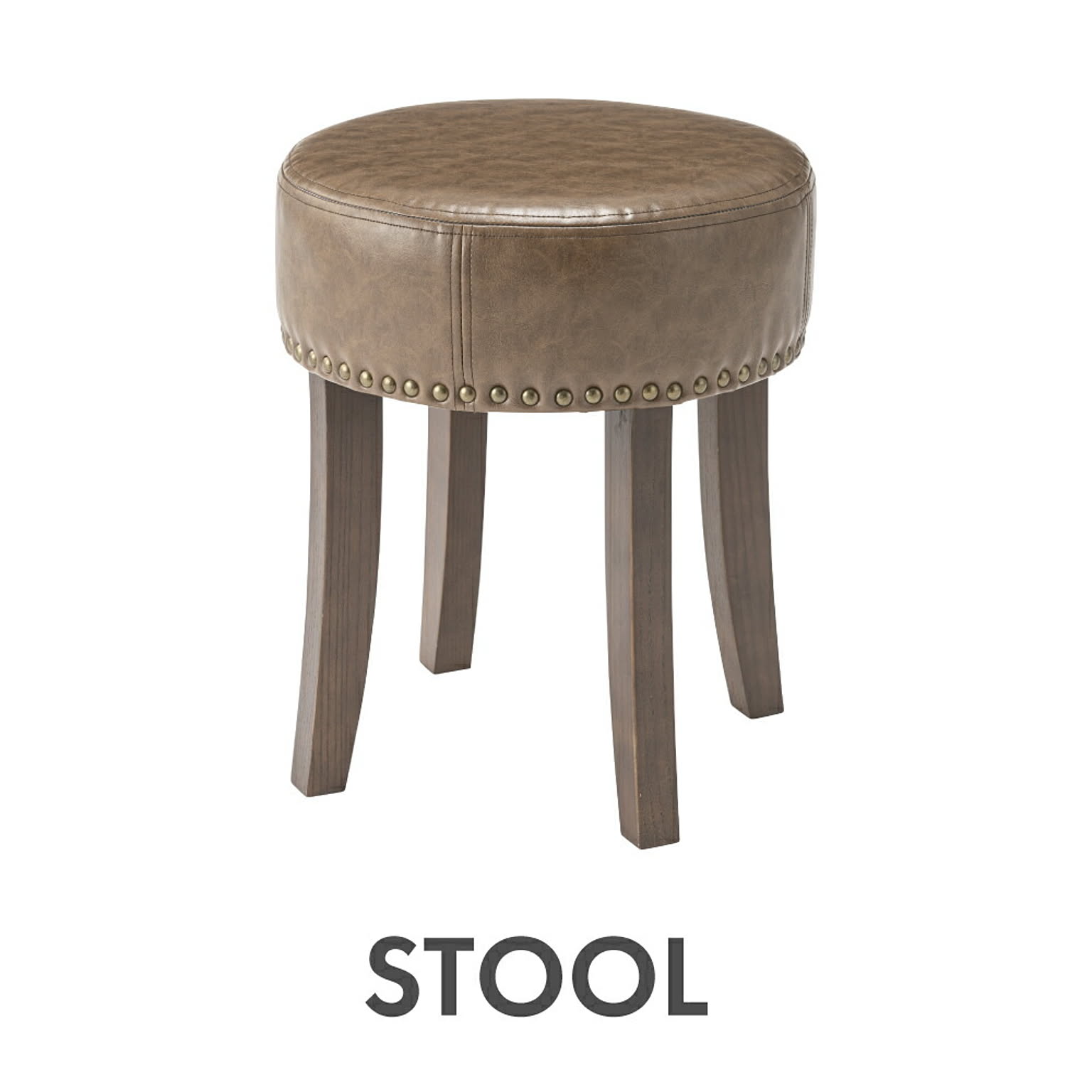 ●ヴィンテージ風のおしゃれなスツールです。 【検索キーワード】 スツール 椅子 木製 おしゃれ イス 背もたれなし カフェ 丸 レザー