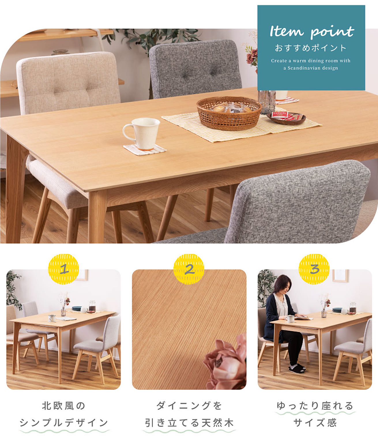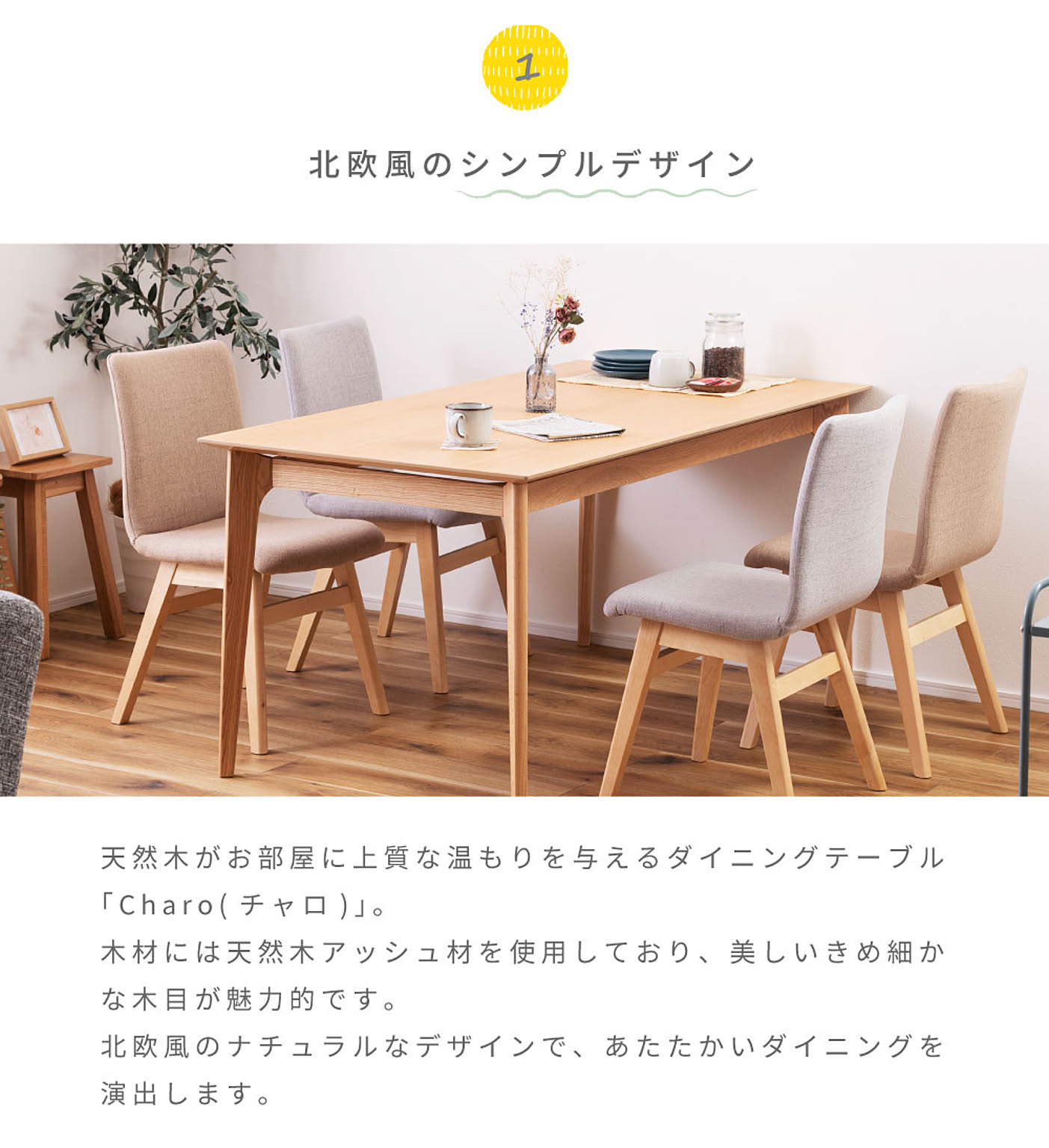 北欧風のナチュラルなデザインで、あたたかいダイニングを演出します。