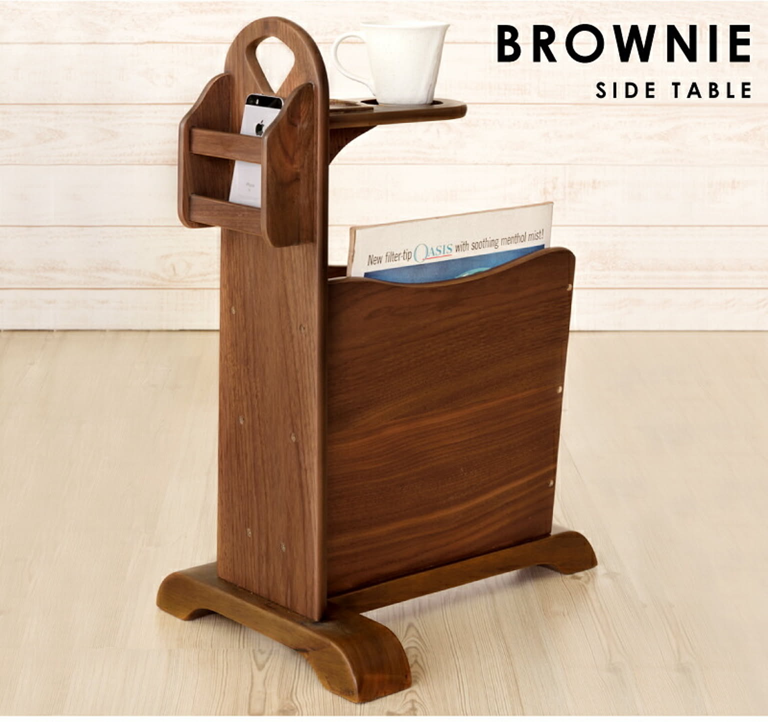 サイドテーブル ナイトテーブル テーブル ブックスタンド付き 木製