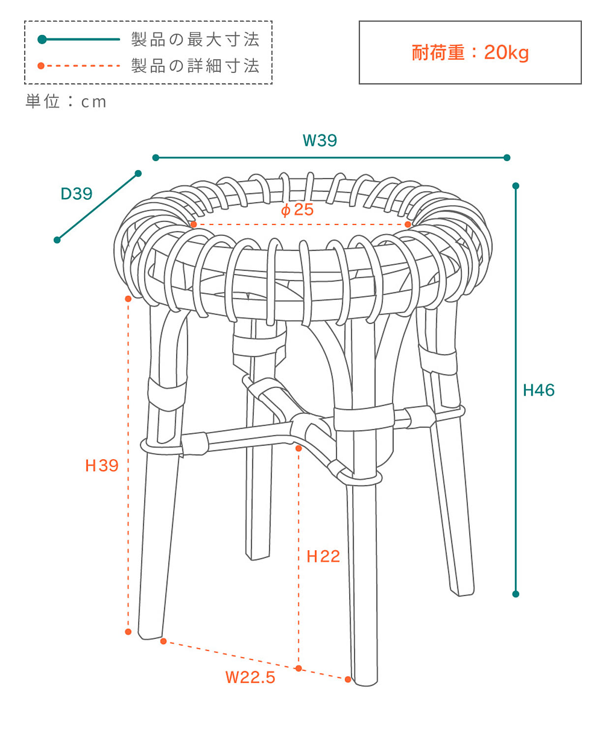 ●安心して使える耐荷重20kg