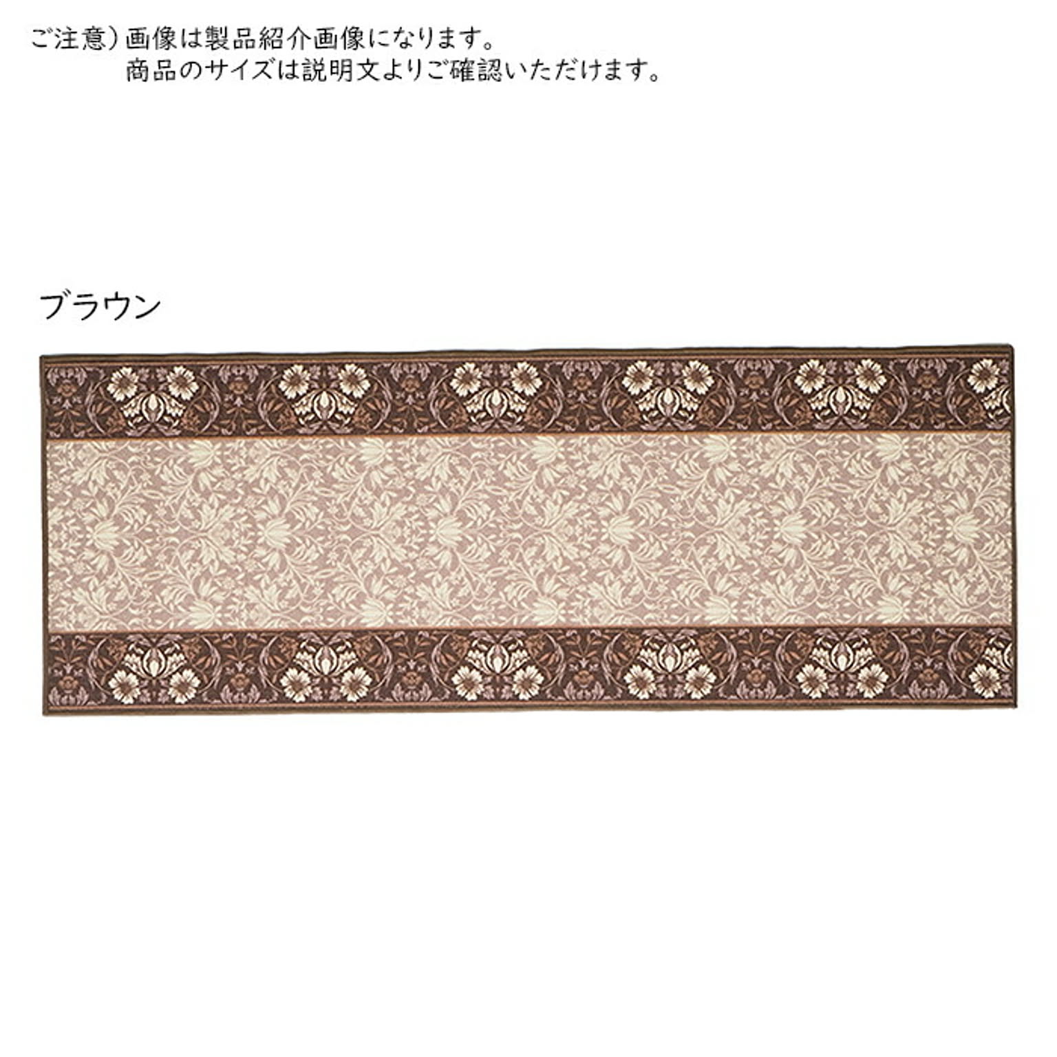落ち着きのある上品な色合いと、優雅なデザインで廊下を華やかに演出。階下への防音効果も兼ね備えたロングカーペットです。手洗いできるから、いつでもきれいをキープ。キッチンマットなどとして水回りにもおすすめです。短めのパイルなので、掃除機がかけやすい。硬めの生地で、毛がへたりにくく長持ちしやすい。裏面は、床を傷つけにくい不織布貼り。裏面は不織布で、滑りにくい加工付き。スペースに合わせて選べるよう多サイズ展開。落ち着きのある上品なカラーで、ブラウンとグリーンの2色をご用意しました。