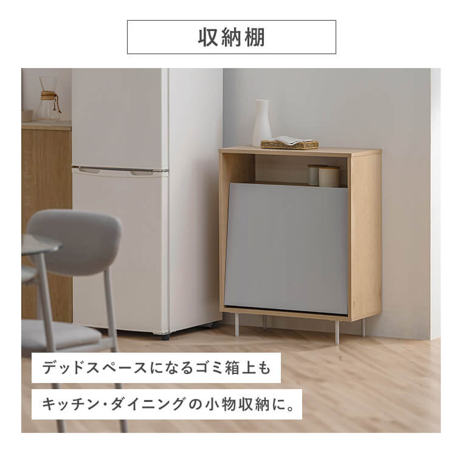 収納棚もついているので、デッドスペースになるゴミ箱上もキッチン・ダイニングの小物収納に。