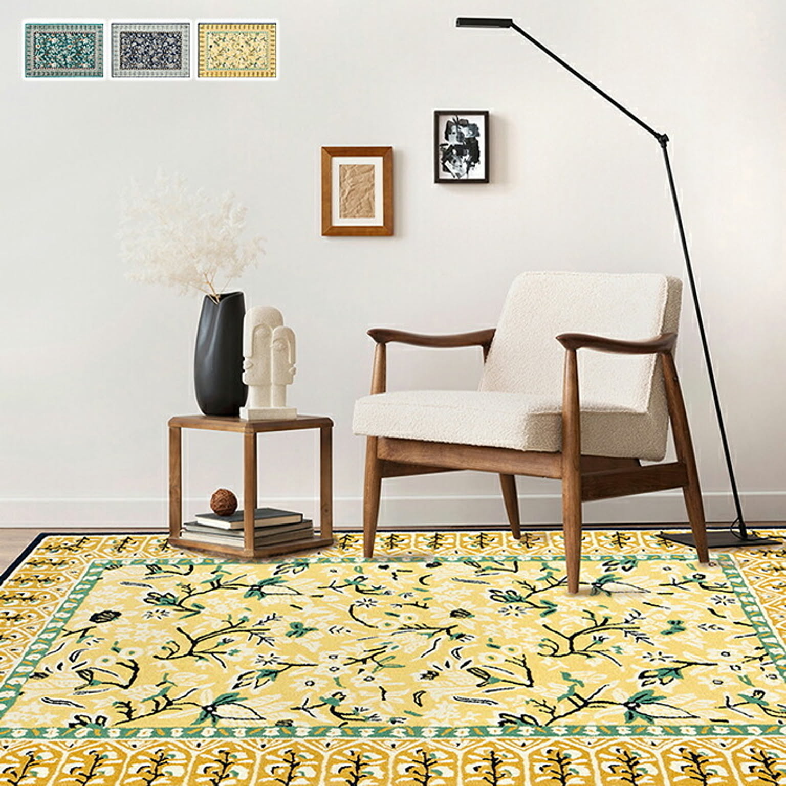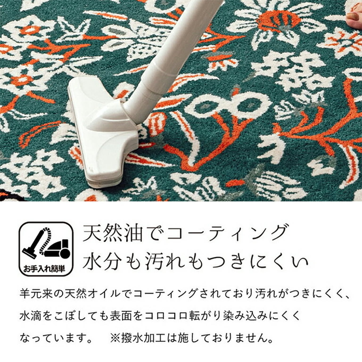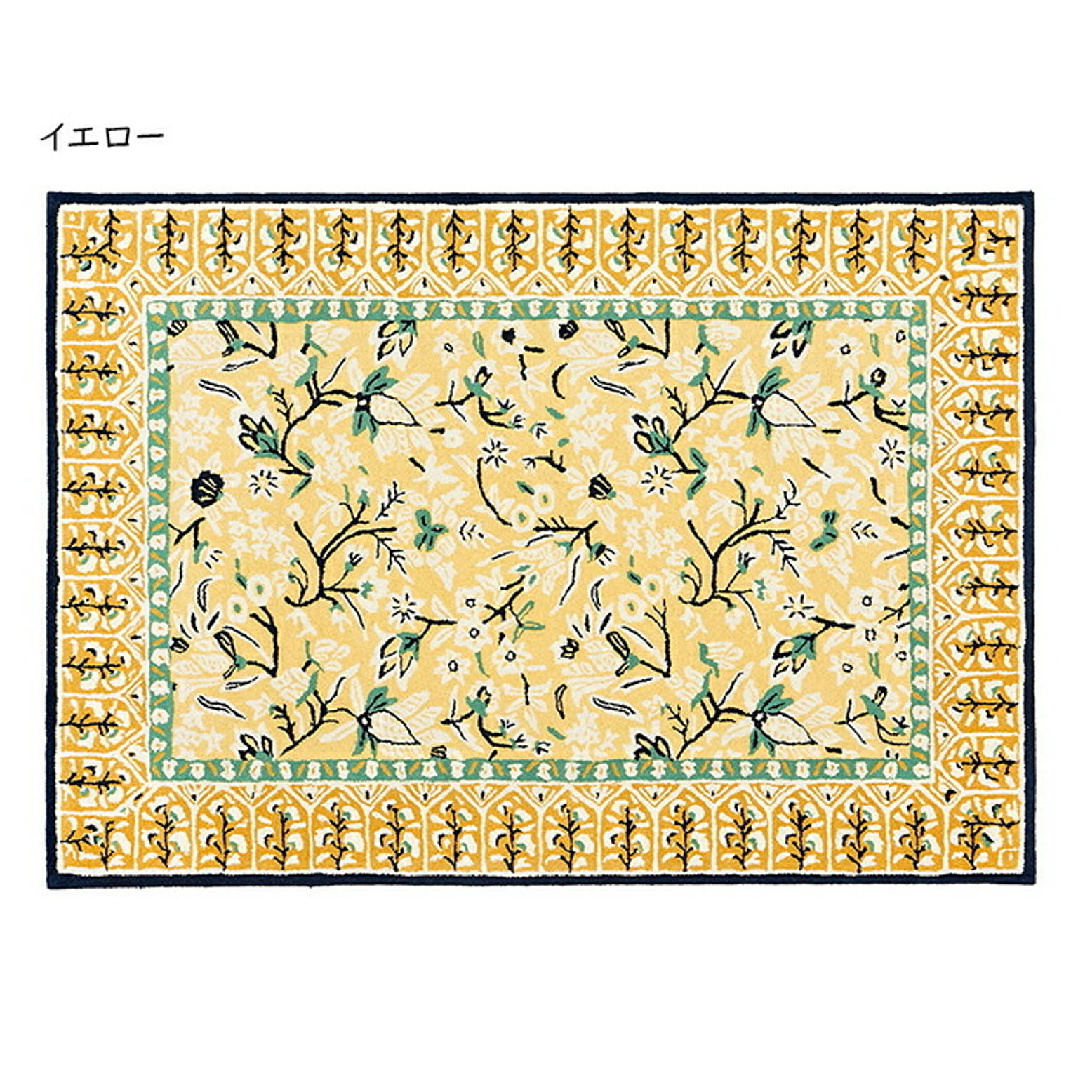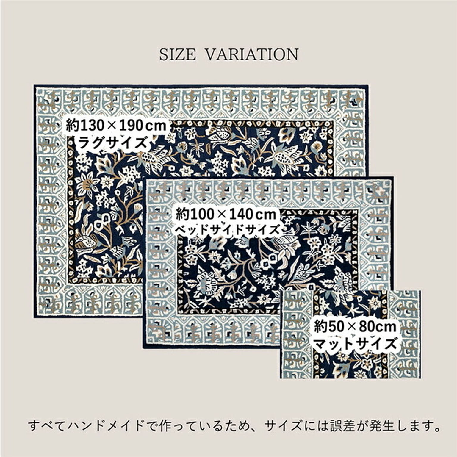 インドの職人による手作りのウールラグマット。陶器(pottery)のような繊細さと、独特な色味や発色の良さが絶妙なアクセントになり、部屋全体をおしゃれに引き立てます。ウールは保温性、吸湿性に優れ、季節問わず使いやすい天然素材。汚れにくく耐久性にも優れ、丈夫で長くお使いいただけます。