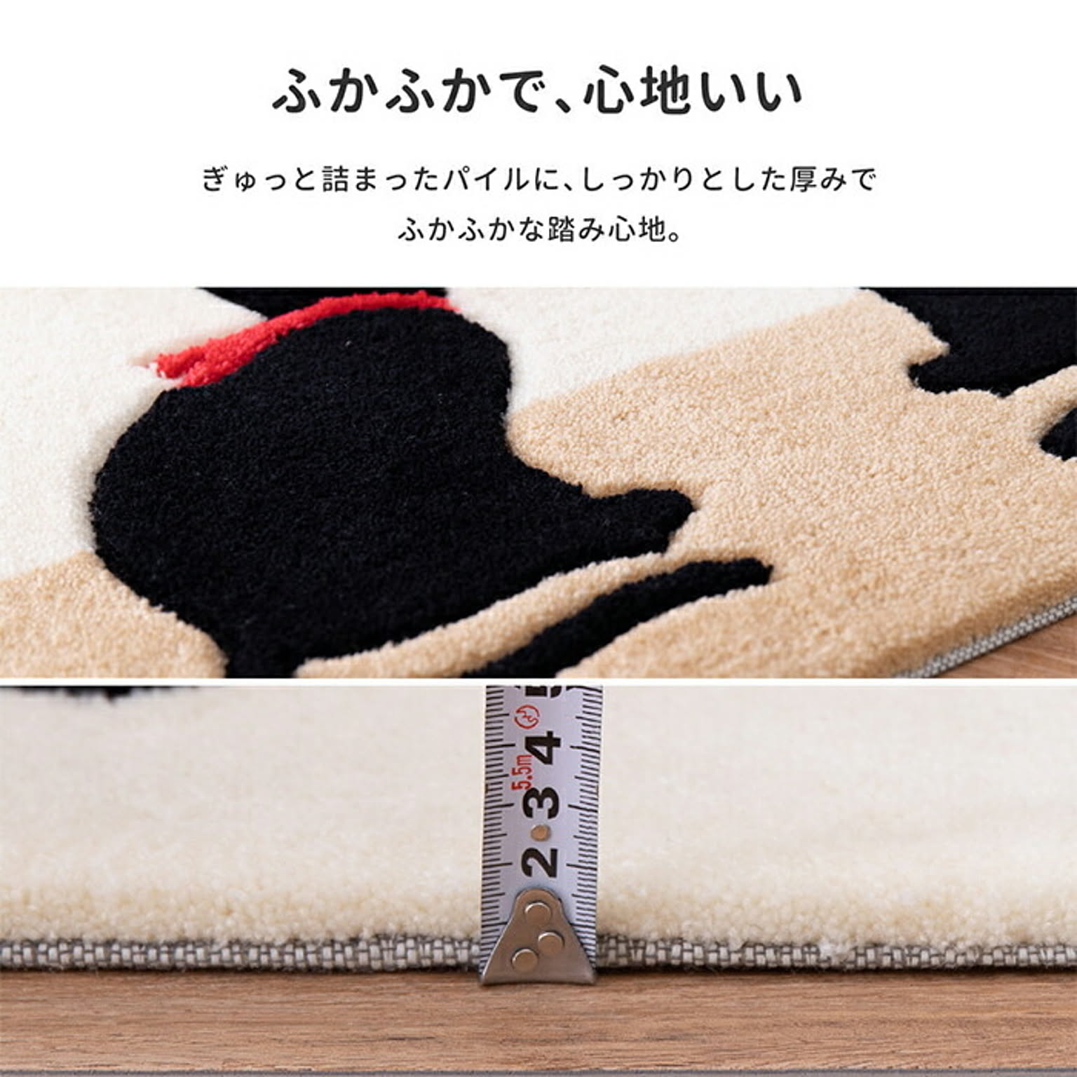 立体感のある、ネコ柄玄関マット。可愛い二匹の黒猫が、玄関でお出迎えをしてくれます。落ち着いた色合いでどんな玄関にも合わせやすいデザイン。厚手なので、ふかふかで気持ちいいです。汚れてもご家庭で手洗い可能、いつも清潔にお使いいただけます。裏面は滑り止め付きでズレにくく安心です。